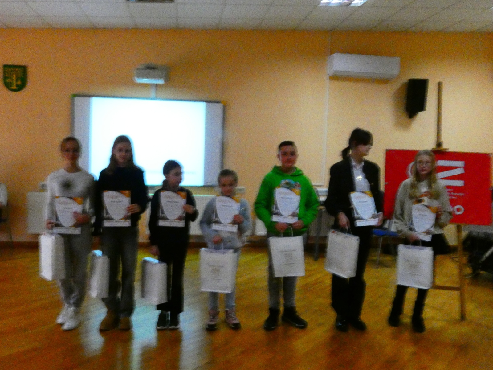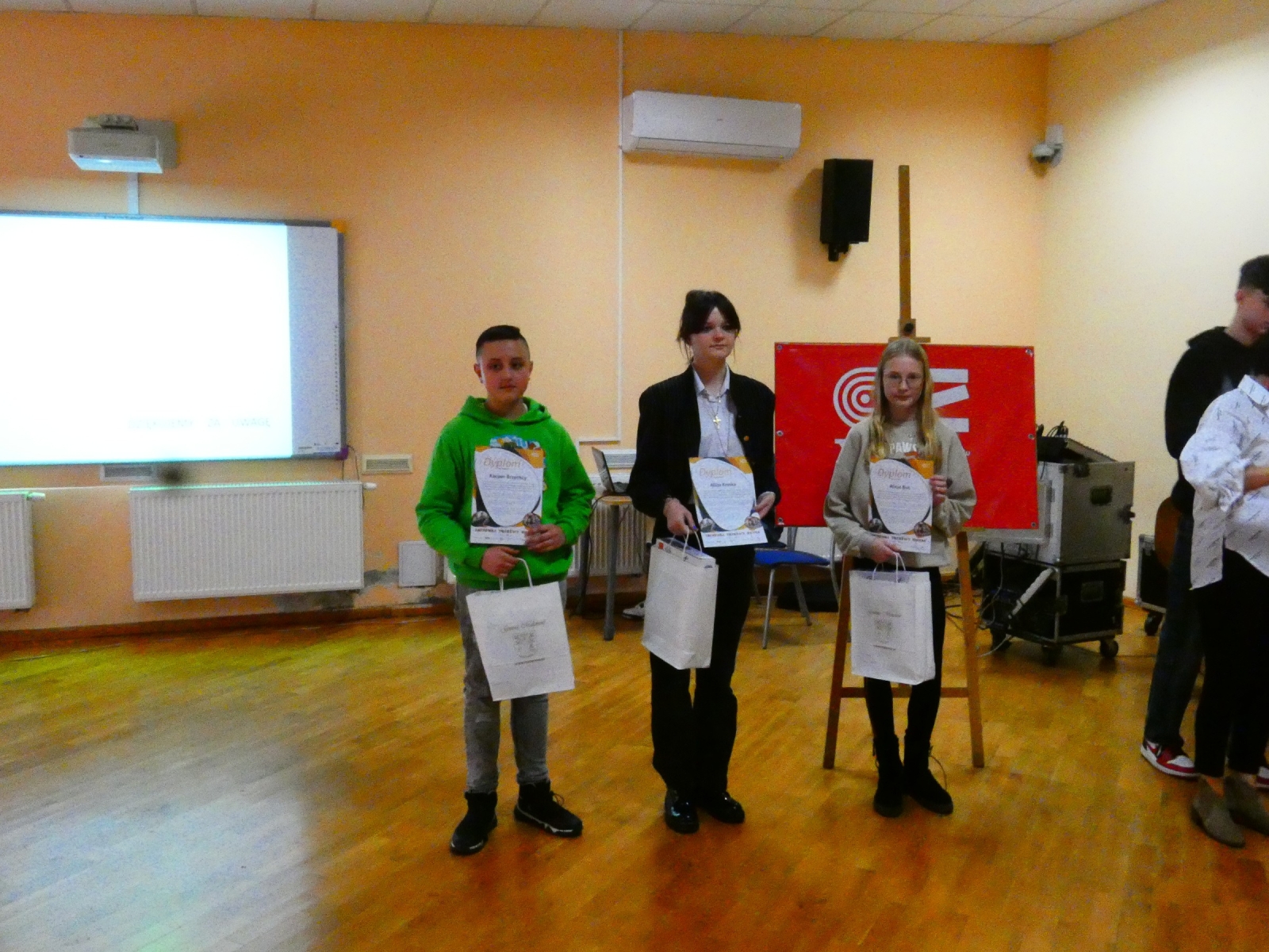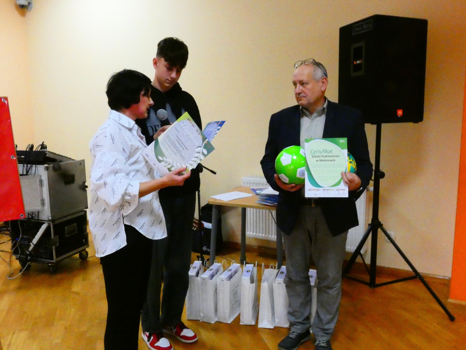 Nagrody ufundowane przez organizatorów kampanii Zachowaj Trzeźwy Umysł otrzymali: Alicja But, Aleksandra Minkina, Eliza Bryl, Kacper Brzychcy, Martyna Wawrzyniak. Nagrody wręczyła Pani Alicja Maciejewska- pełnomocnik Wójta ds. Profilaktyki i Rozwiązywania Problemów Alkoholowych. Pani Alicja podziękowała także dyrektorowi szkoły, psychologowi i pedagogowi szkolnemu za zaangażowanie w kampanię. W ramach podziękowania szkoła otrzymała w prezencie dwie piłki, które posłużą uczniom podczas zajęć wychowania fizycznego.