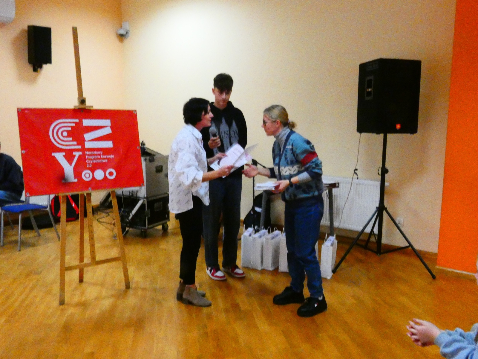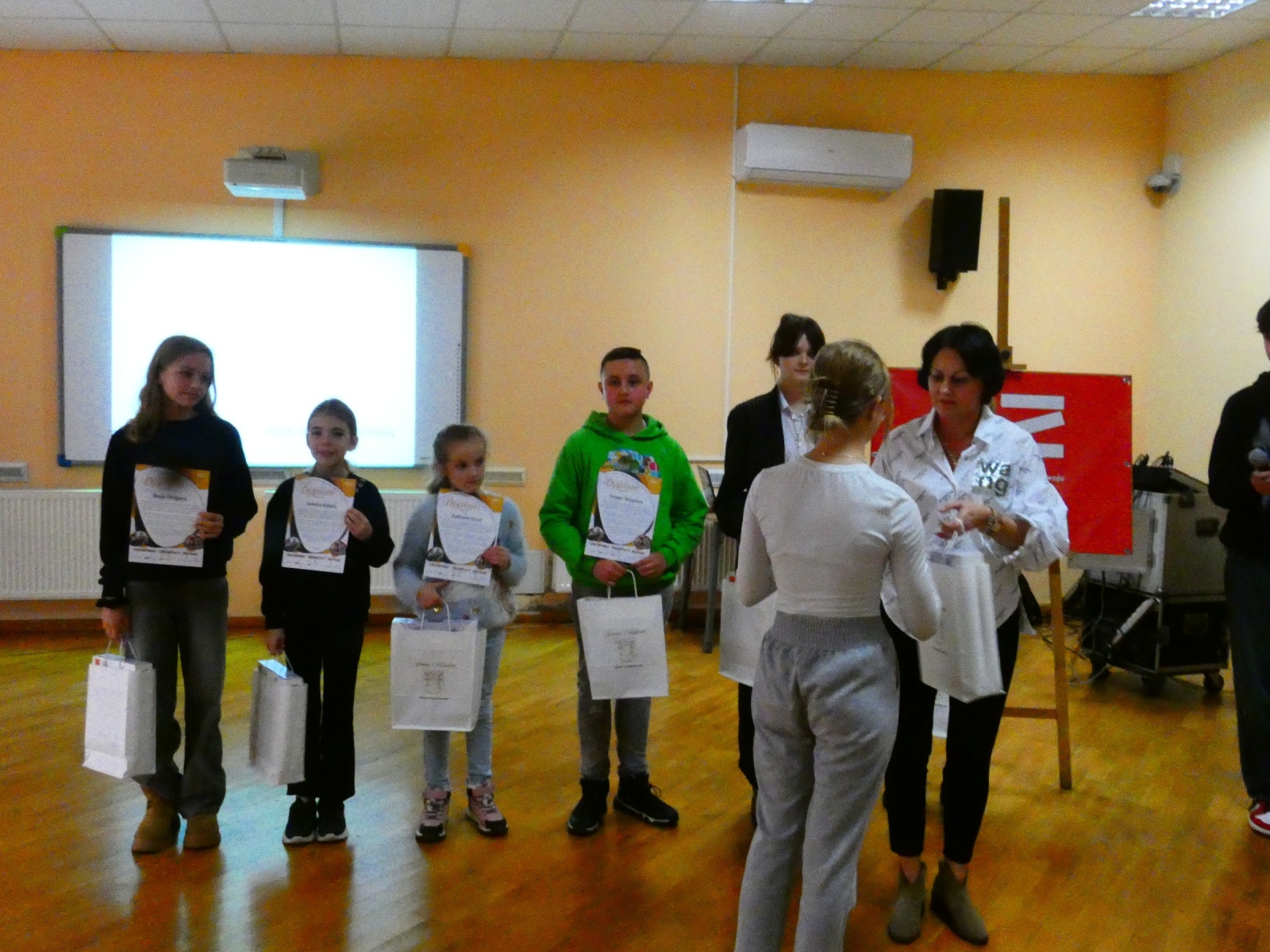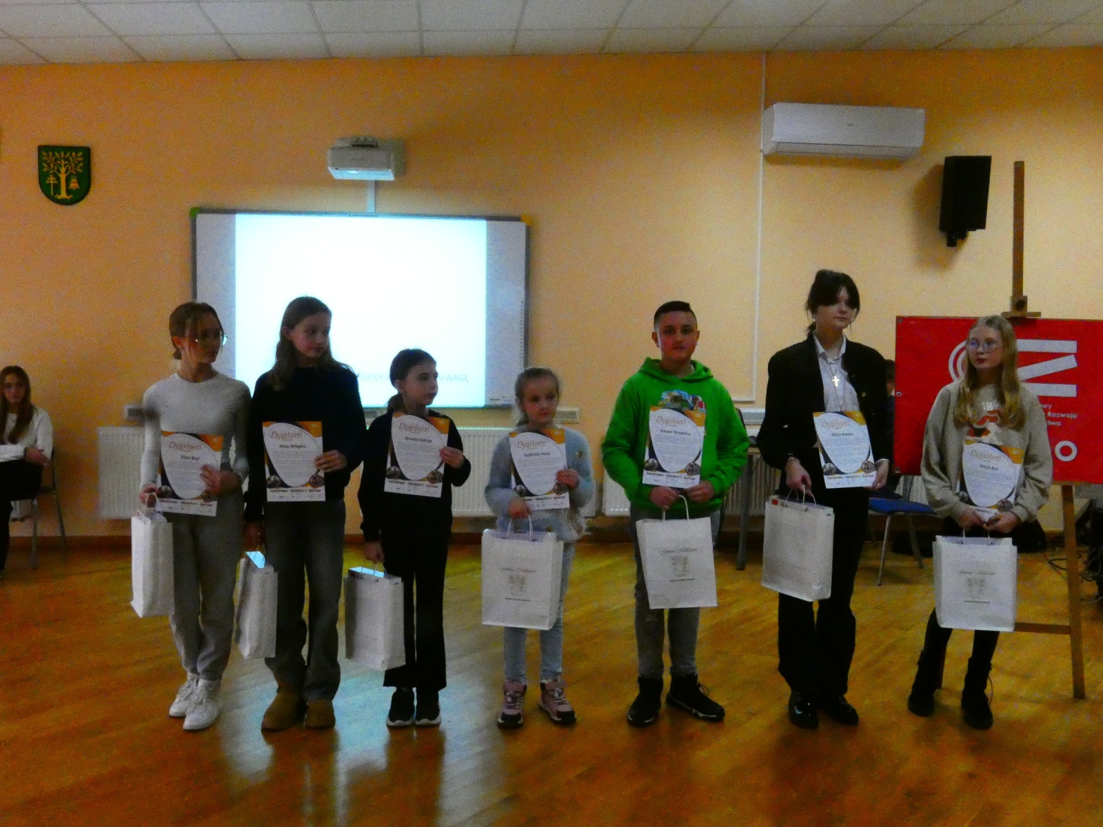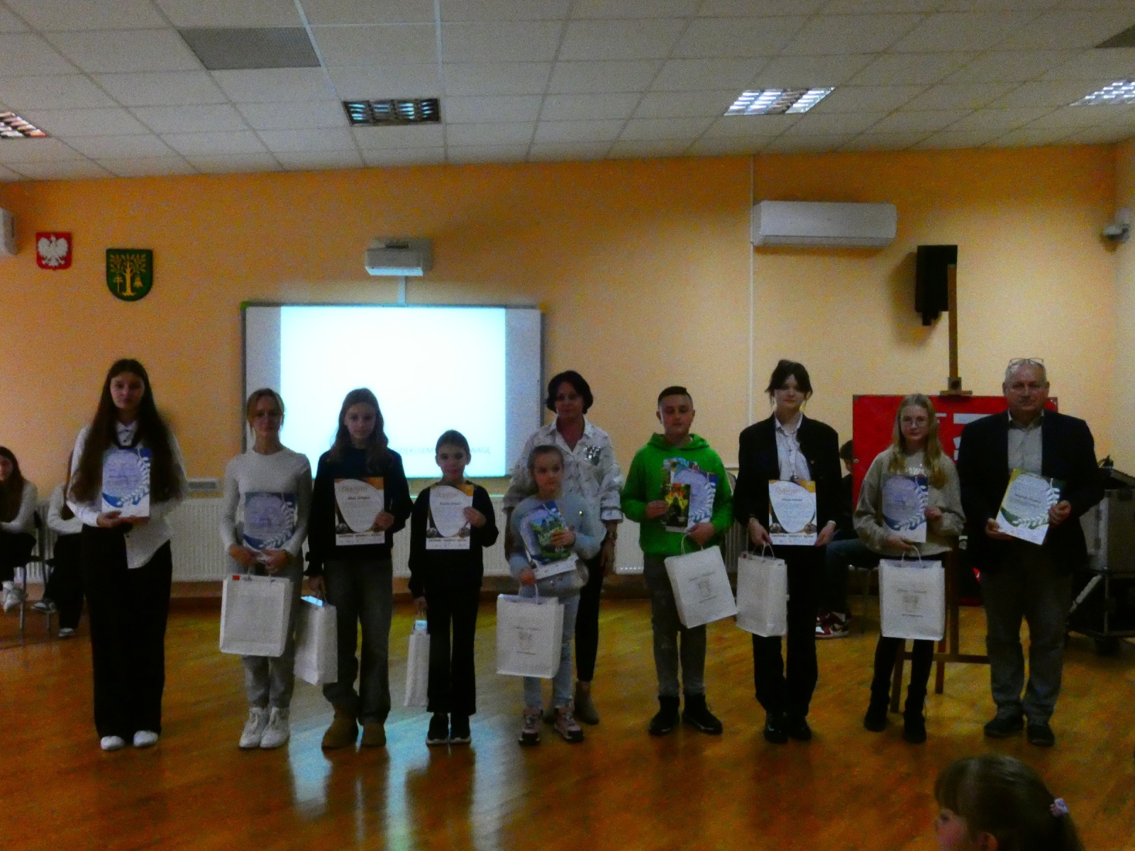 Nagrody ufundowane przez organizatorów kampanii Zachowaj Trzeźwy Umysł otrzymali: Alicja But, Aleksandra Minkina, Eliza Bryl, Kacper Brzychcy, Martyna Wawrzyniak. Nagrody wręczyła Pani Alicja Maciejewska- pełnomocnik Wójta ds. Profilaktyki i Rozwiązywania Problemów Alkoholowych. Pani Alicja podziękowała także dyrektorowi szkoły, psychologowi i pedagogowi szkolnemu za zaangażowanie w kampanię. W ramach podziękowania szkoła otrzymała w prezencie dwie piłki, które posłużą uczniom podczas zajęć wychowania fizycznego.