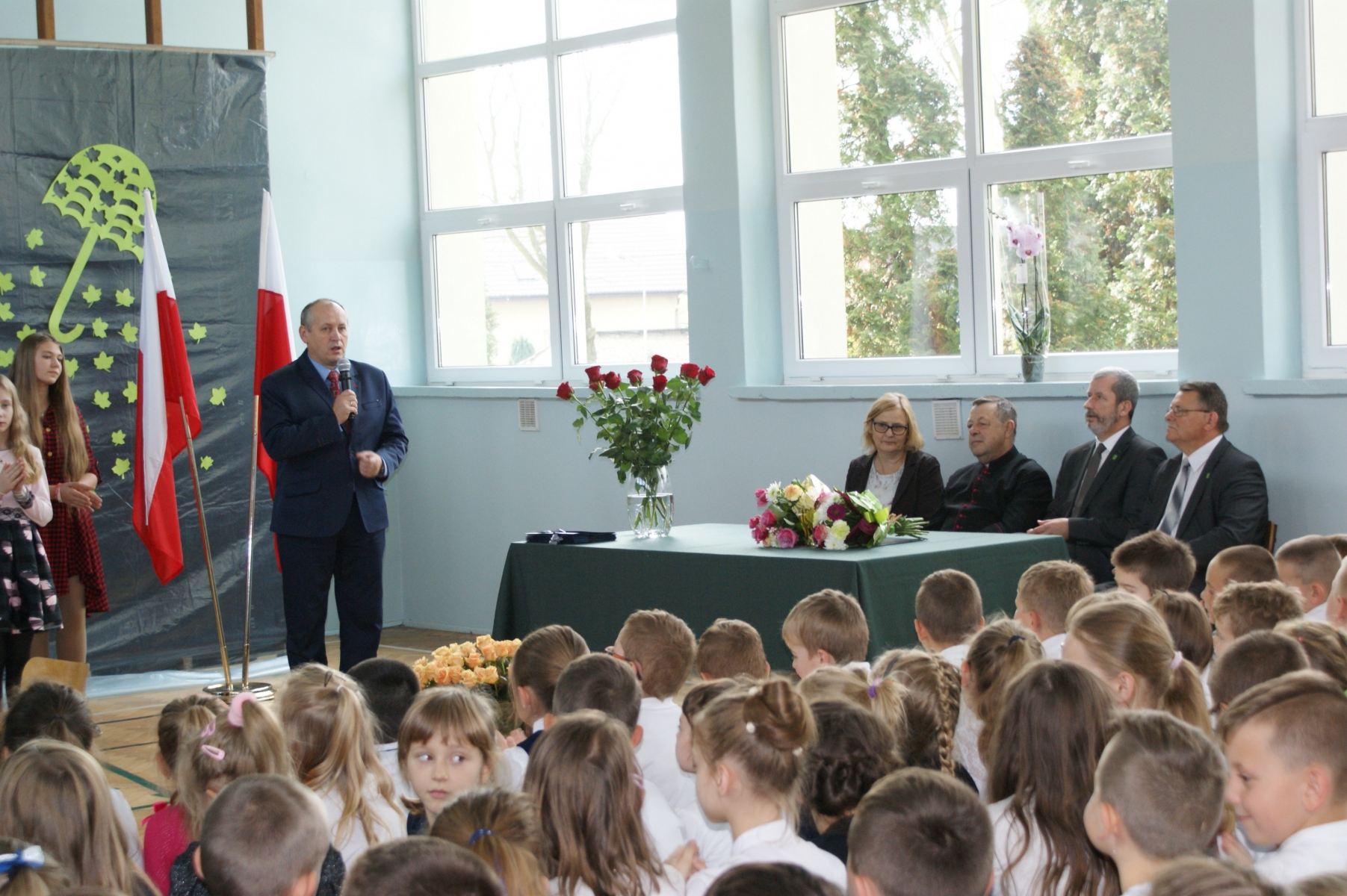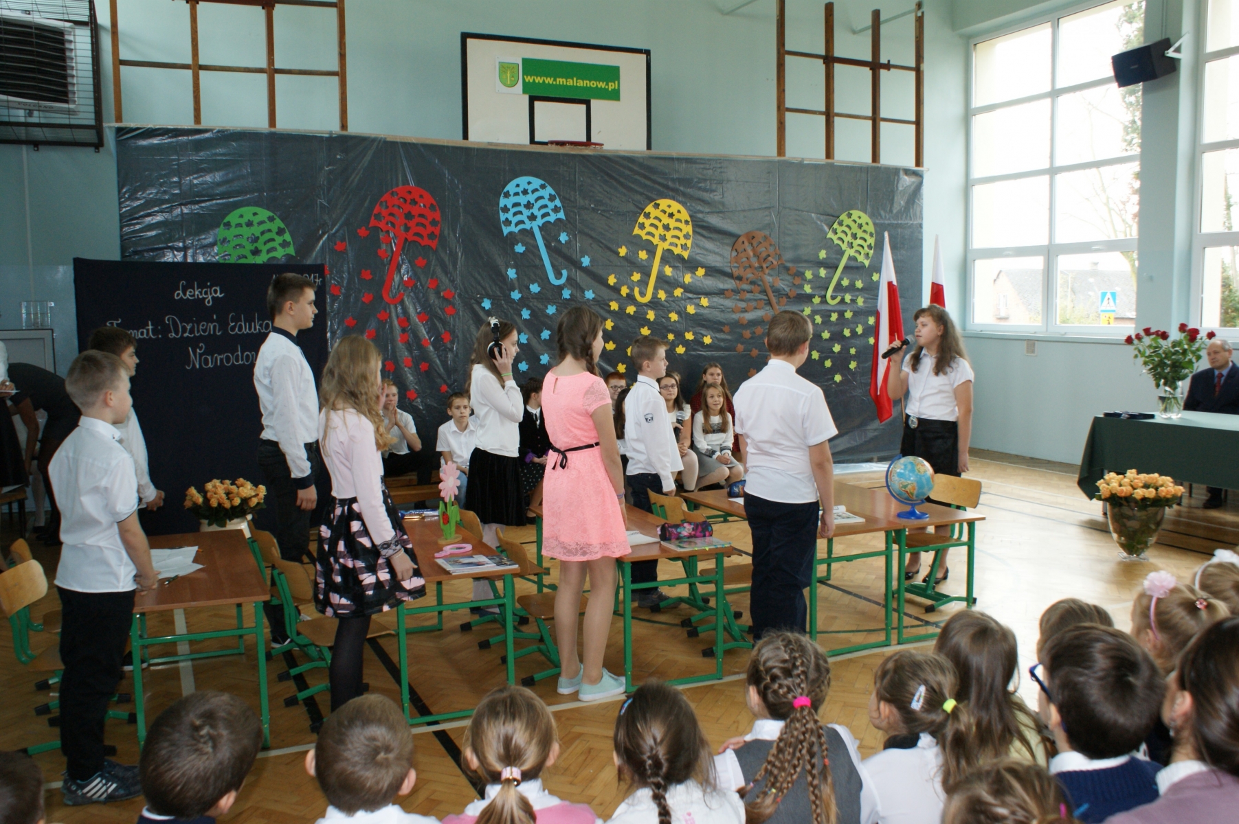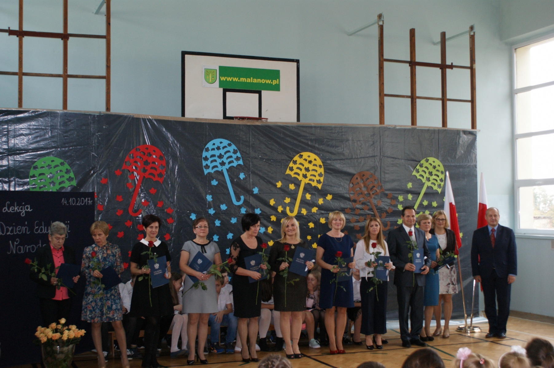 W Szkole Podstawowej w Malanowie tę piękną uroczystość rozpoczął p. dyrektor Marek Nowicki, który powitał przybyłych gości: Wójta Gminy Malanów p. Sławomira Prentczyńskiego, p. Andrzeja Tomsa – Przewodniczącego Rady Gminy, ks. Prałata Stanisława Płaszczyka, emerytowanych nauczycieli oraz wszystkich pracowników naszej szkoły.
