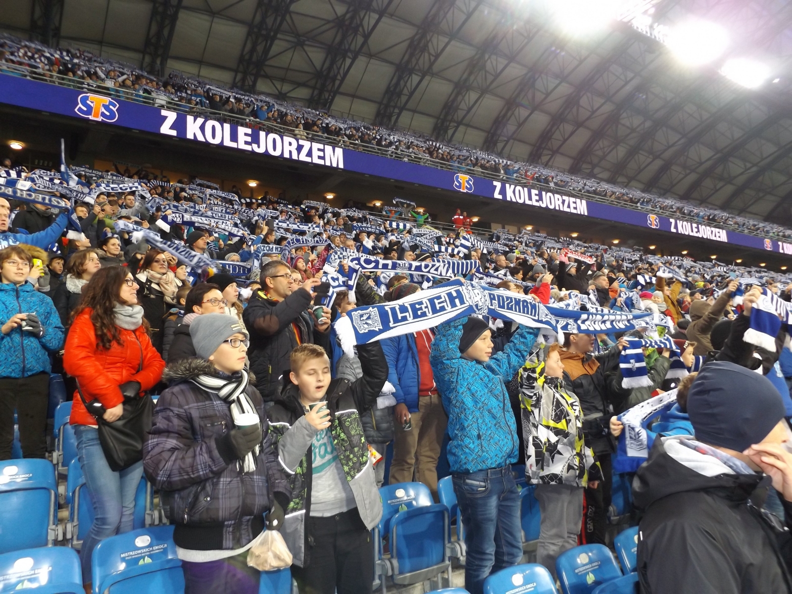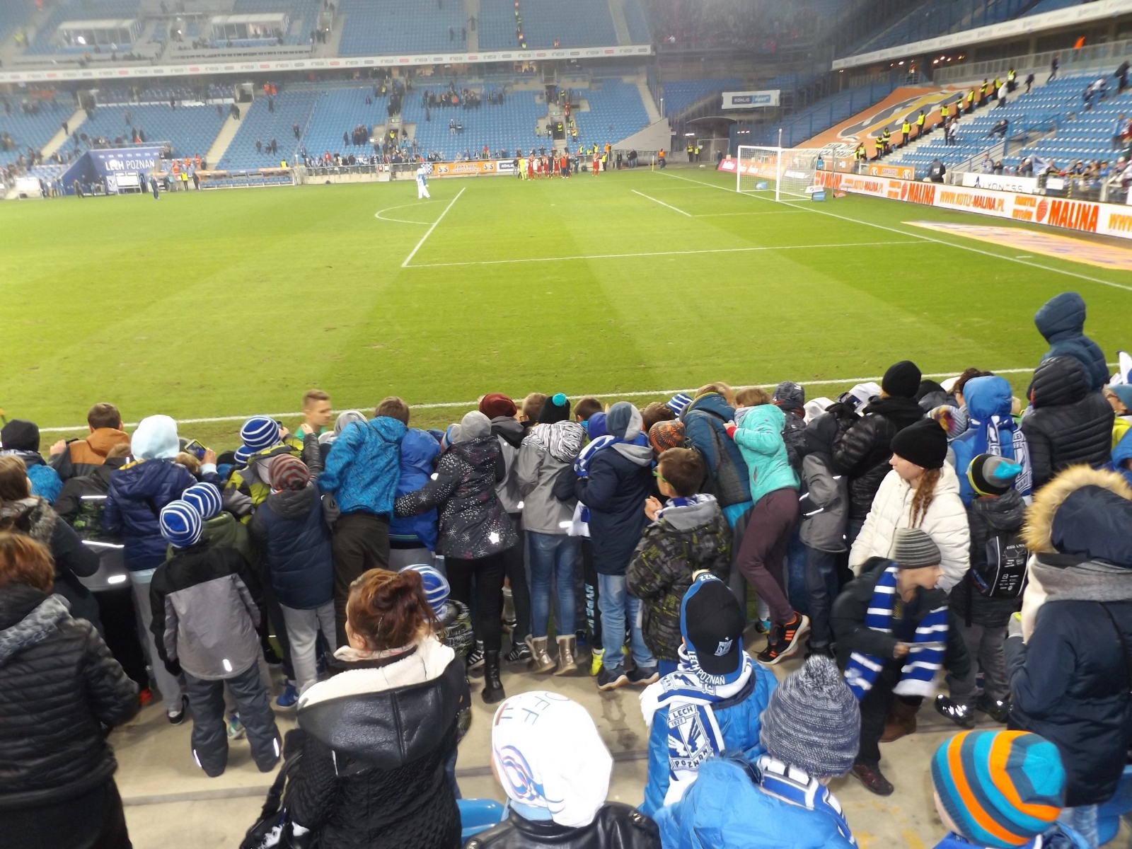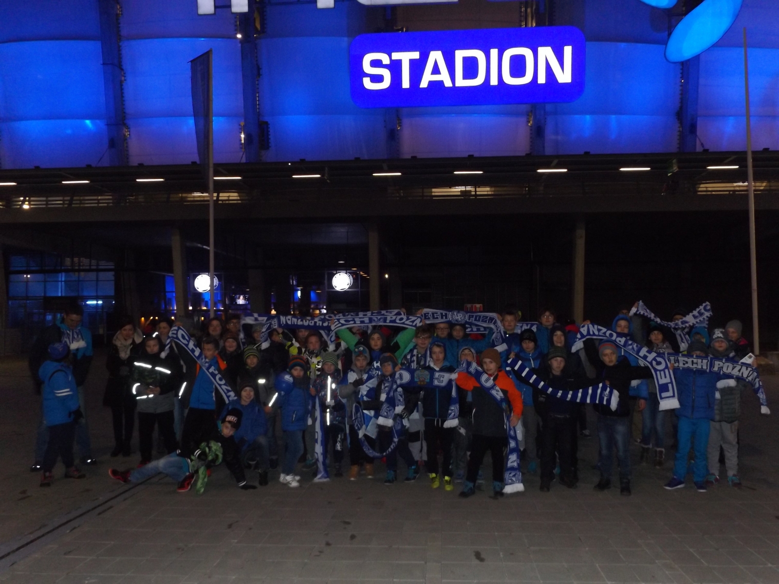 W niedzielne popołudnie 16 października uczestniczyliśmy w meczu piłkarskim Lech Poznań - Wisła Kraków. Grupa 44 uczniów, 5 opiekunów oraz 4 rodziców udała się na stadion Inea w Poznaniu w celu kibicowania poznańskiemu klubowi. Przed rozpoczęciem meczu uczestniczyliśmy w prezentacji legendy poznańskiego klubu. Parowóz przybył na peron specjalnie wybudowany przed INEA Stadionem i czekał na oficjalną prezentację. Po odsłonięciu wspieraliśmy Kolejorza w walce o ligowe punkty. Przeciwnikiem Lecha Poznań była Wisła Kraków. Większość z uczniów uczestniczyła pierwszy raz w meczu na stadionie piłkarskim. Doping drużynie z Poznania z pewnością pomógł kolejorzowi. Mecz stał na wysokim poziomie i obfitował w wiele sytuacji bramkowych. Uczniowie przez pełne 90 minut wspierali "Poznańskiego Lecha", który zremisował 1:1. Wizyta na stadionie pozwoliła przeżyć piłkarskie święto na żywo.