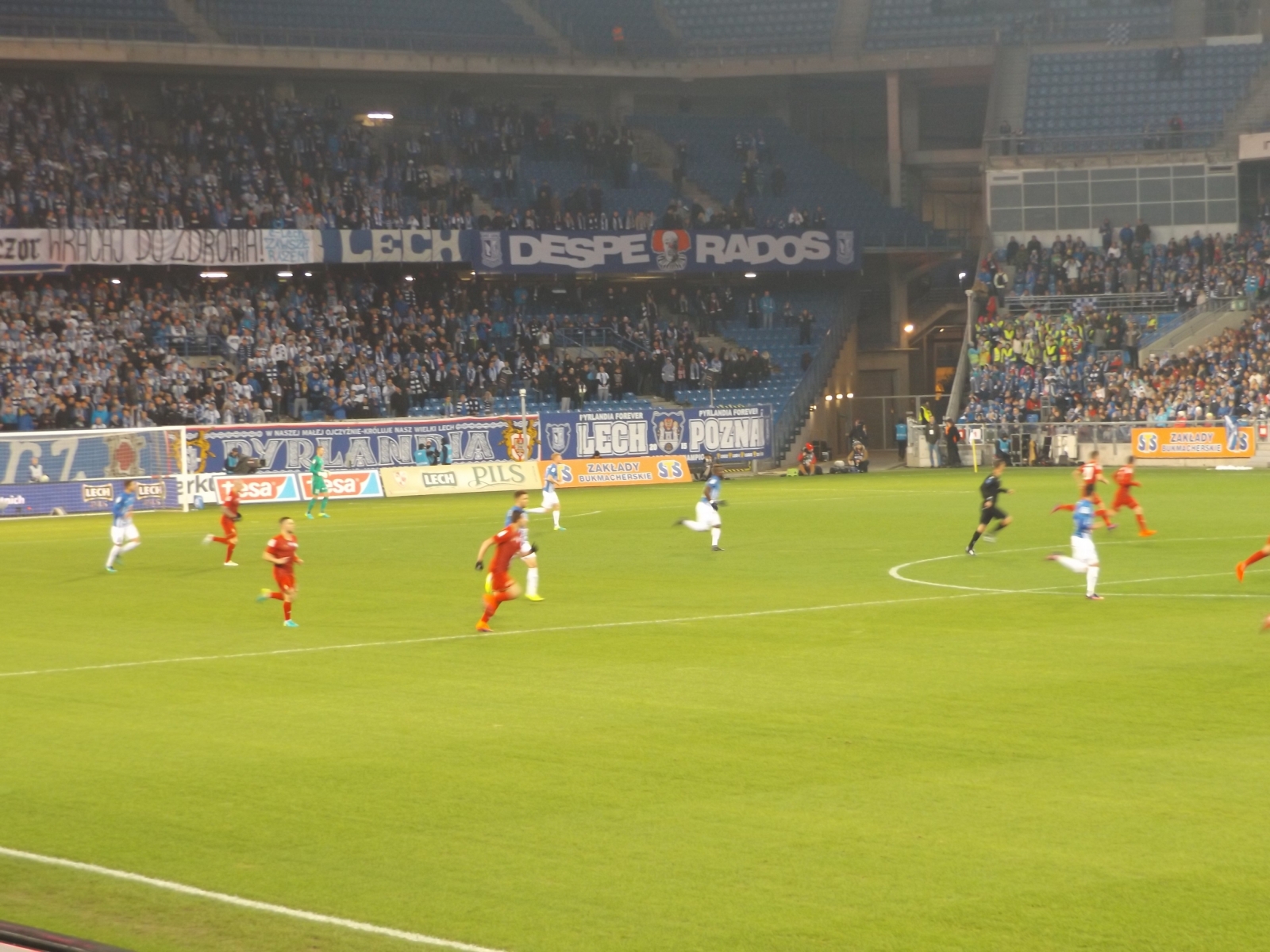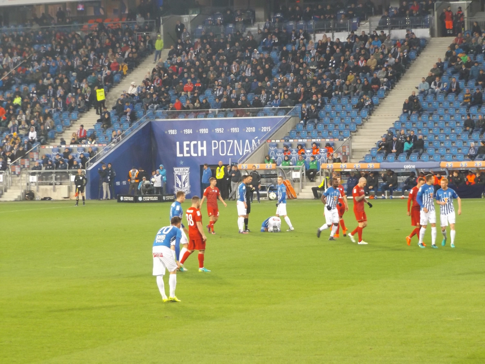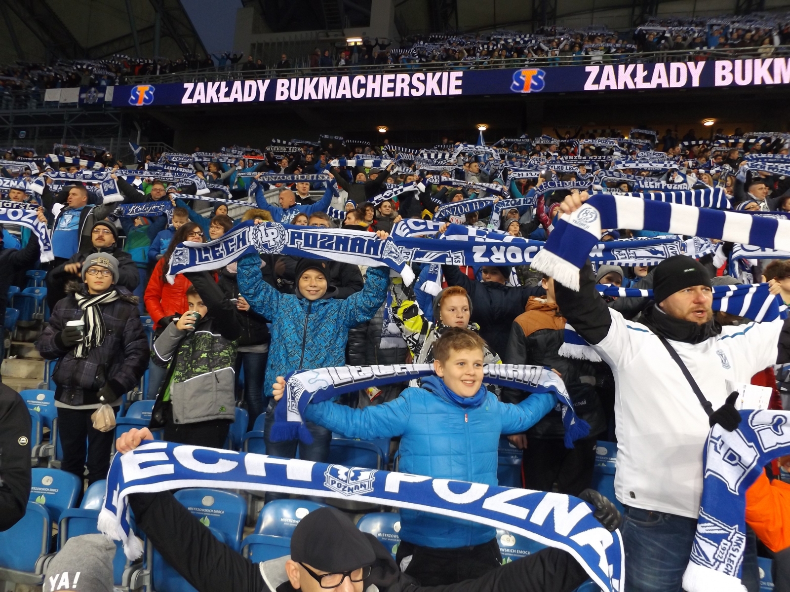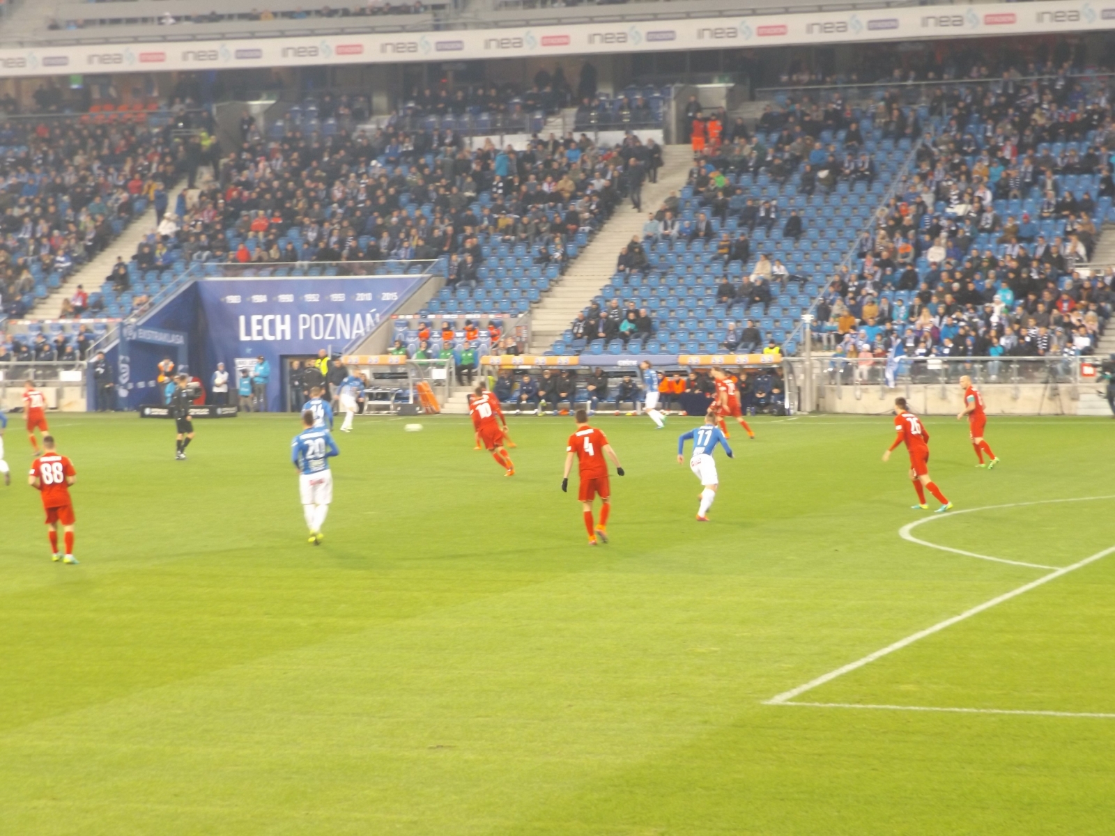 W niedzielne popołudnie 16 października uczestniczyliśmy w meczu piłkarskim Lech Poznań - Wisła Kraków. Grupa 44 uczniów, 5 opiekunów oraz 4 rodziców udała się na stadion Inea w Poznaniu w celu kibicowania poznańskiemu klubowi. Przed rozpoczęciem meczu uczestniczyliśmy w prezentacji legendy poznańskiego klubu. Parowóz przybył na peron specjalnie wybudowany przed INEA Stadionem i czekał na oficjalną prezentację. Po odsłonięciu wspieraliśmy Kolejorza w walce o ligowe punkty. Przeciwnikiem Lecha Poznań była Wisła Kraków. Większość z uczniów uczestniczyła pierwszy raz w meczu na stadionie piłkarskim. Doping drużynie z Poznania z pewnością pomógł kolejorzowi. Mecz stał na wysokim poziomie i obfitował w wiele sytuacji bramkowych. Uczniowie przez pełne 90 minut wspierali "Poznańskiego Lecha", który zremisował 1:1. Wizyta na stadionie pozwoliła przeżyć piłkarskie święto na żywo.