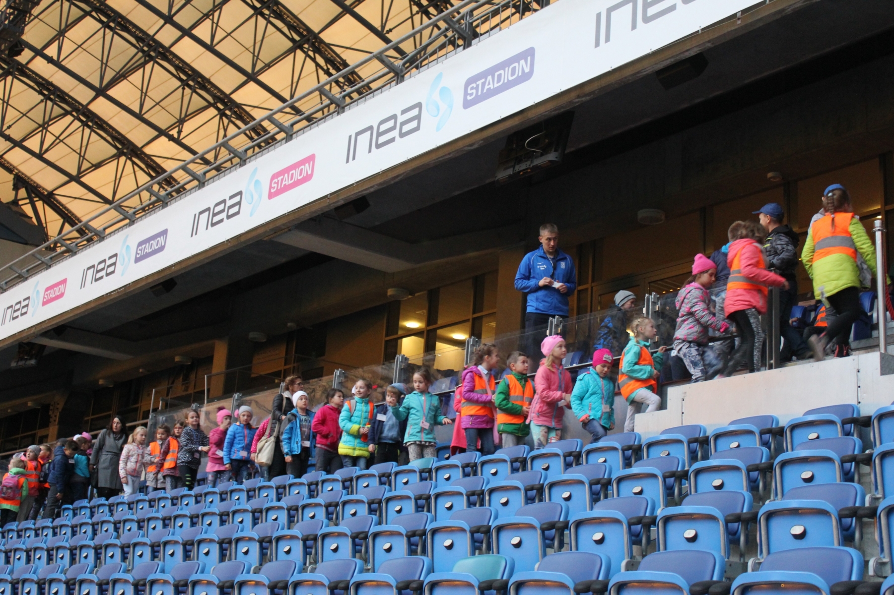Celem wyjazdu było poznanie historii i zabytków tego największego w Wielkopolsce miasta, a przede wszystkim historii Powstania Wielkopolskiego. Jednocześnie rozwijanie u dzieci chęci podróżowania i pogłębiania wiedzy na temat polskich miast i ich zabytków. Plan wycieczki był bardzo bogaty. Pierwszym punktem było zwiedzanie wyspy zwanej Ostrów Tumski, najstarszej części miasta, gdzie uczniowie poznali historię powstania grodu. Następnie wszyscy przeszli na Stary Rynek i przyglądali się pomnikom, fontannom tam znajdującym się. Potem wszyscy poszli do Muzeum Powstania Wielkopolskiego. Uczniowie z zainteresowaniem zapoznali się z historią Patrona naszej szkoły – Powstańców Wielkopolskich. Mogli zobaczyć broń, mundury i sprzęt, jakimi walczyli powstańcy. Ogromne zaciekawienie wzbudziły zrekonstruowane okopy, w których Polacy bronili się podczas walk. Bezpośrednio po wyjściu z Muzeum, o godz. 12.00 na Ratuszu dzieci zobaczyły trykające się koziołki, wysłuchały hejnału i poznały legendę o koziołkach i hejnale. Około 12:30 uczestnicy wycieczki przeszli do Rogalowego Muzeum Poznania, gdzie brali udział w warsztatach wypieku rogali Marcinkowskich- regionalnego produktu mającego już 150 lat, nauczyły się także kilku słów gwary poznańskiej oraz otrzymali certyfikaty. Następnie uczniowie przeszli się na Wzgórze Przemysła. Na wzniesieniu tym znajduje się nowo odbudowany zamek – dawna rezydencja króla Przemysła II. Po obiedzie wszyscy udali się do Palmiarni Poznańskiej, gdzie odbyli podróż po odległych kontynentach, wśród bogatej roślinności różnych stref klimatycznych. Przedostatnim punktem było zwiedzanie Stadionu Miejskiego „Lech Poznań” Podczas zwiedzania dzieci zobaczyły między innymi: Salę Konferencyjną, Szatnię Gości, poziom boiska wraz z ławkami rezerwowych, Lożę Prezydencką, Salę Legend i Trybunę Prasową. Na pamiątkę klasy otrzymały plakat drużyny Lech Poznań.