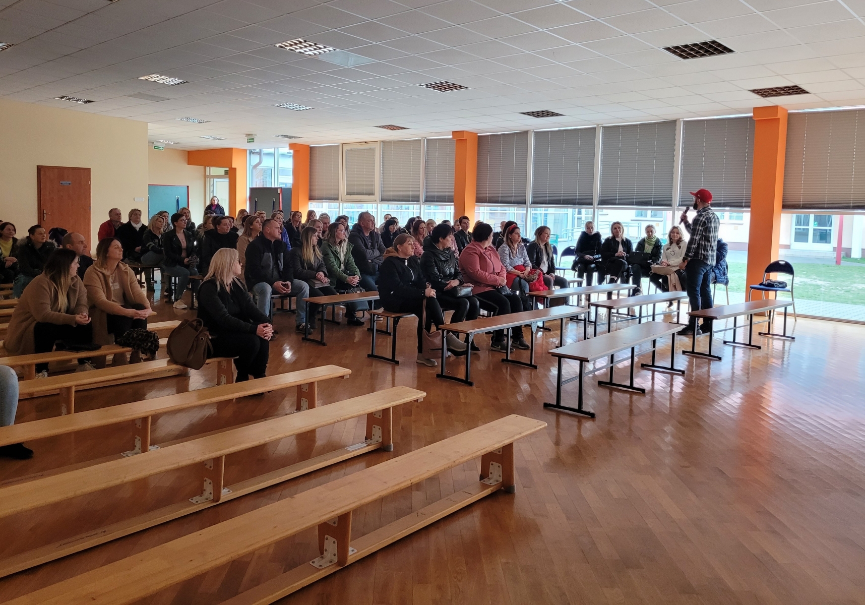 Dnia 4 kwietnia 2022 r. uczniowie klas IV-VI oraz rodzice uczestniczyli w spotkaniu profilaktycznym z Dobromirem Makowskim (nauczyciel, magister pedagogiki resocjalizacyjnej, pasjonat muzyki, raper,pomysłodawca projektu RapPedagogia,założyciel fundacji„Rampa”,która w Pabianicach, w województwie łódzkim prowadzi szereg zadań o charakterze profilaktycznym).