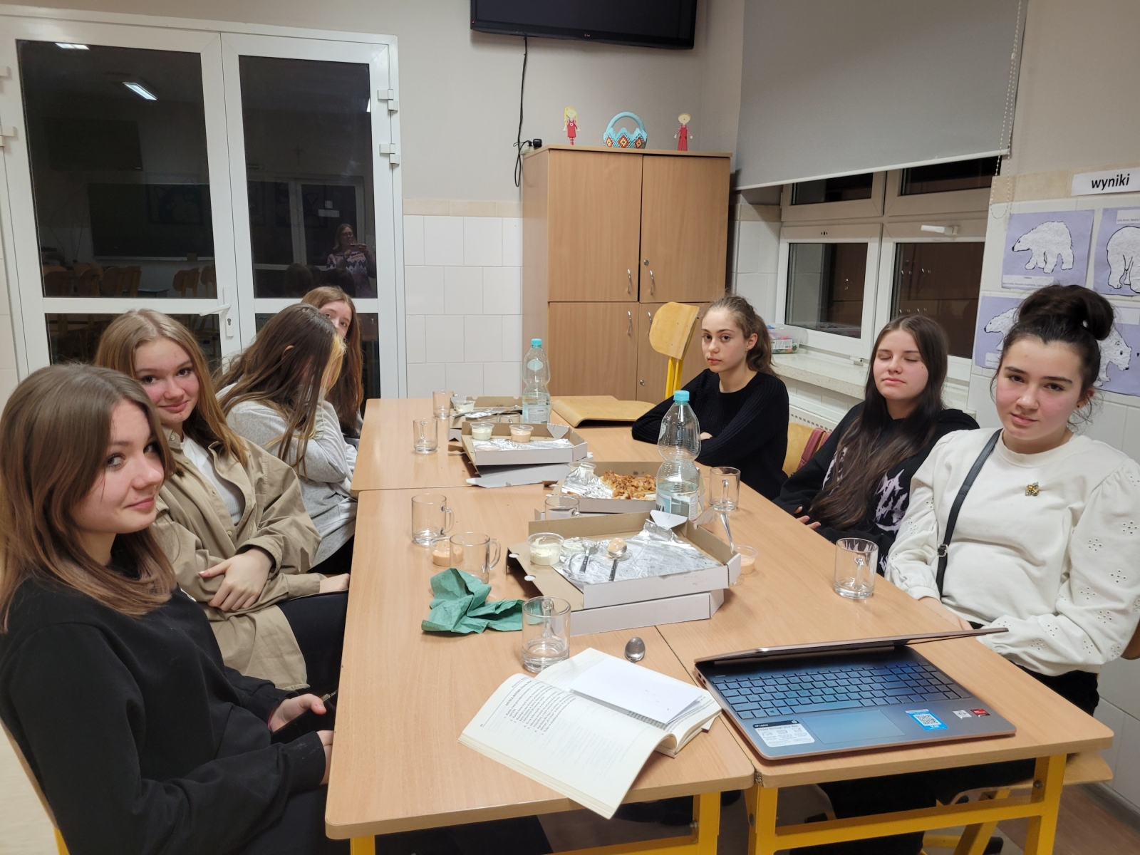 Wieczorek zaczęłyśmy od zjedzenia pysznej pizzy. Później nasza szkolna pani psycholog Karolina Niespodziańska przeczytała list pewnej dziewczyny do „anoreksji” (oczywiście za jej pełną zgodą), co wywołało w każdej z nas wiele refleksji. Następnie dowiedziałyśmy się, że anoreksja dotyka coraz więcej osób w coraz niższym wieku. Osoby z tego typu zaburzeniem nadmiernie koncentrują uwagę na swoim wyglądzie i wadze, ograniczają przyjmowanie pokarmów. Po gwałtownym schudnięciu przeglądając się w lustrze wciąż uważają, że są mocno otyłe, mimo, że są na skraju śmierci; ich ciało zaczyna przypominać szkielet (sama skóra i kości), takie osoby często nie mogą spać, bo bolą je stawy, nie mogą chodzić, przełykanie sprawia im ogromny ból, ponieważ od niejedzenia robią się liczne zapalenia układu pokarmowego (na przykład przełyku, żołądka itp.).