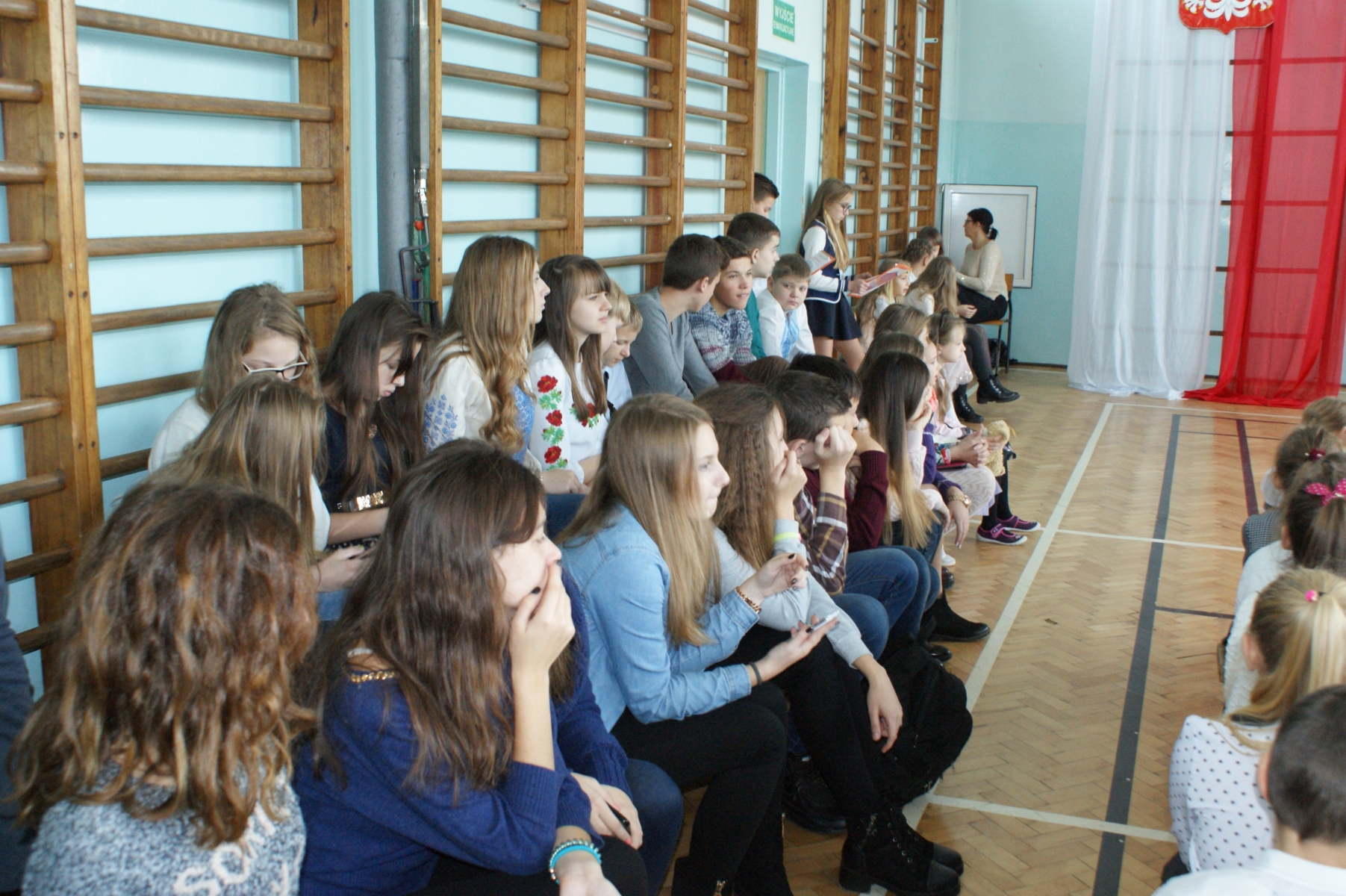 W czwartek, 10 listopada, odwiedzili naszą szkołę goście z Ukrainy, którzy przyjeżdżają do malanowskiego gimnazjum w ramach Polsko – Ukraińskiej Wymiany Młodzieży. Uczniowie wraz z opiekunami uczestniczyli w koncercie, podczas którego zaprezentowali się najbardziej utalentowani wokalnie uczniowie naszej szkoły, którzy wcześniej brali udział w Gminnym Festiwalu Piosenki Dziecięcej i Młodzieżowej „Na wesołą nutę”. W międzyczasie goście obejrzeli taniec w wykonaniu uczniów klas I – III. Na koniec dwie piosenki zaśpiewała nasza koleżanka z Ukrainy - Valerina Ostropolska. Jedną piosenkę wykonała w języku polskim, a drugą w swoim języku ojczystym. Valerina była najmłodszą uczestniczką wymiany, dlatego przez kilka dni uczęszczała na lekcje do naszej szkoły. Uczyła się wraz z uczniami z klasy V „b”. Została przyjęta bardzo serdecznie i szybko się zaaklimatyzowała. Na pożegnanie, w ramach wdzięczności, obdarowała swoich przyjaciół ukraińskimi słodkościami.