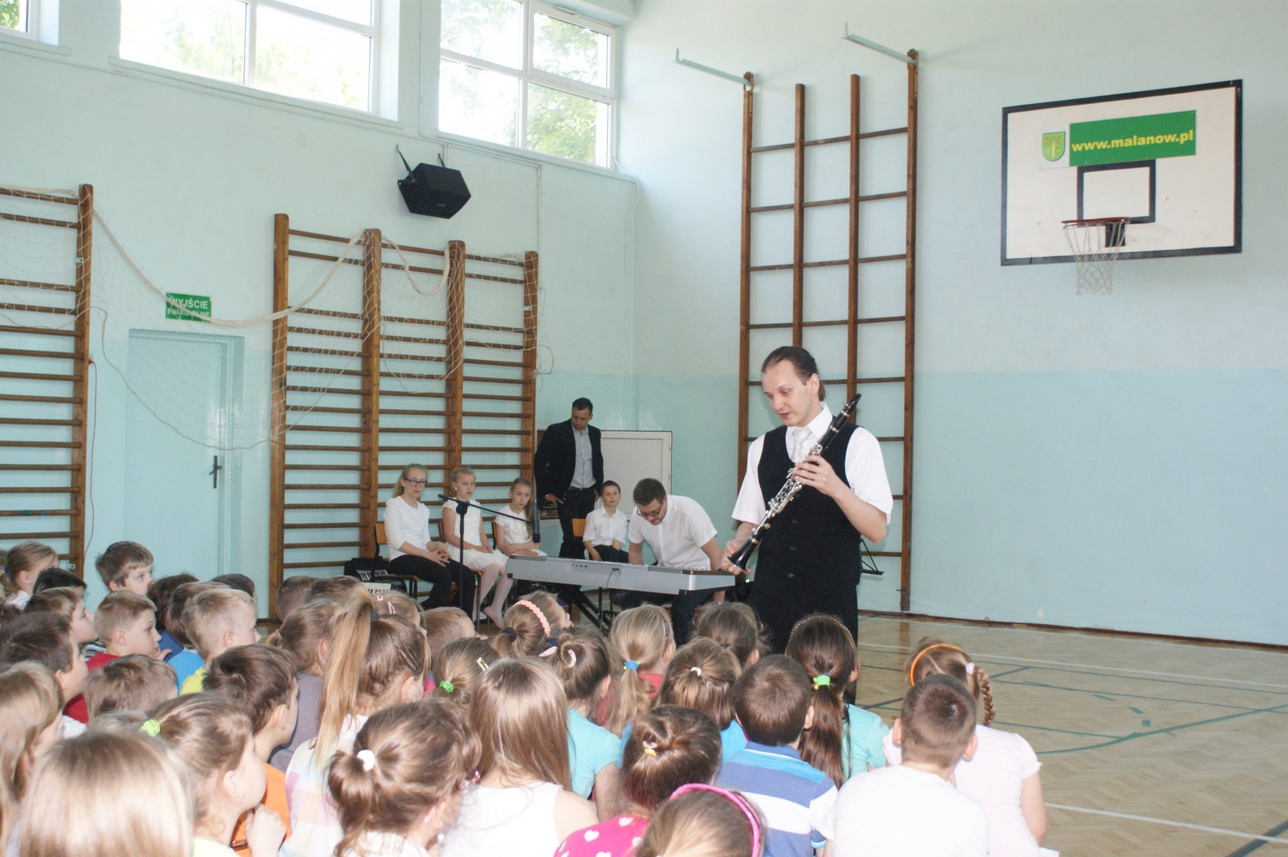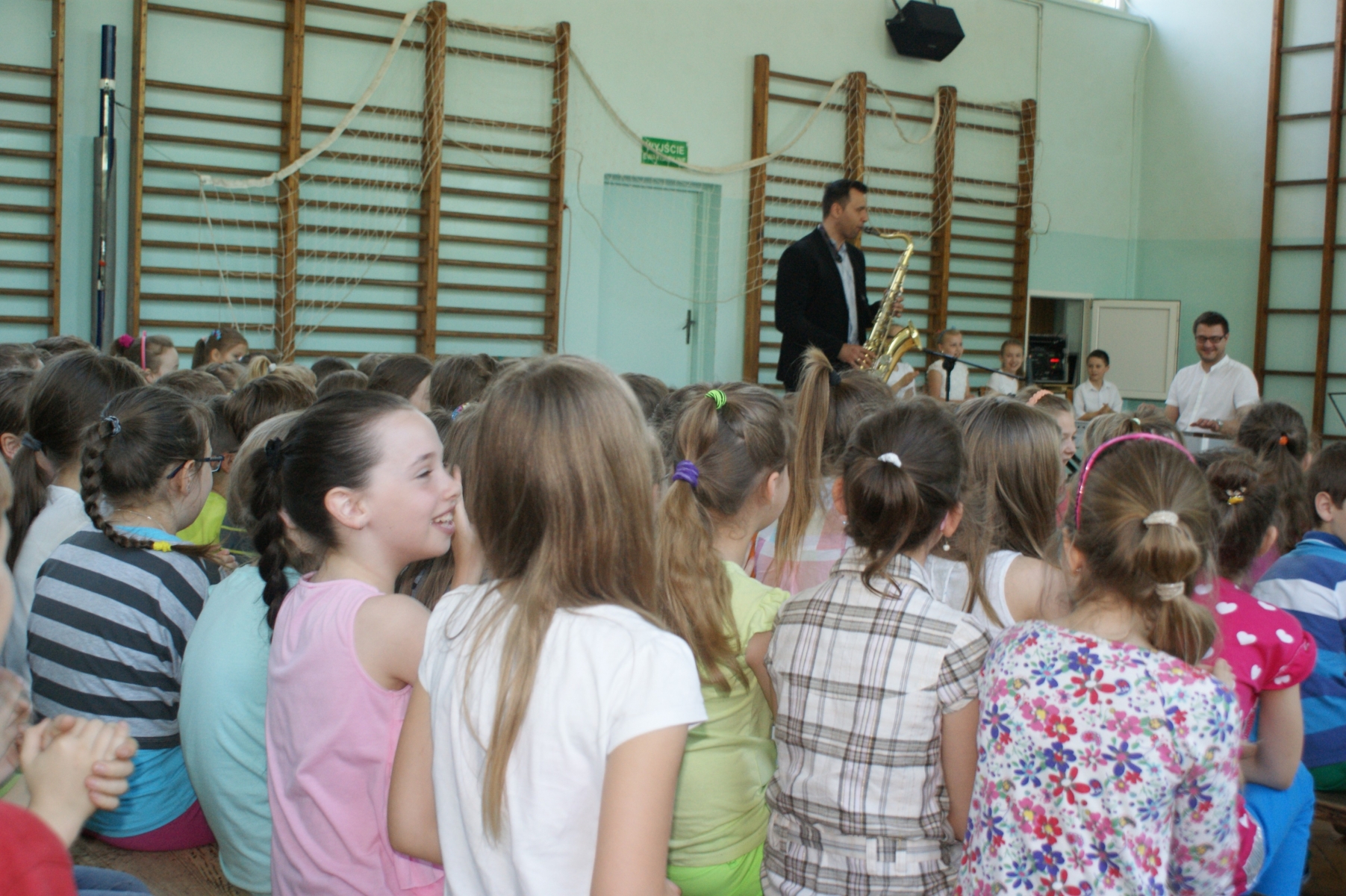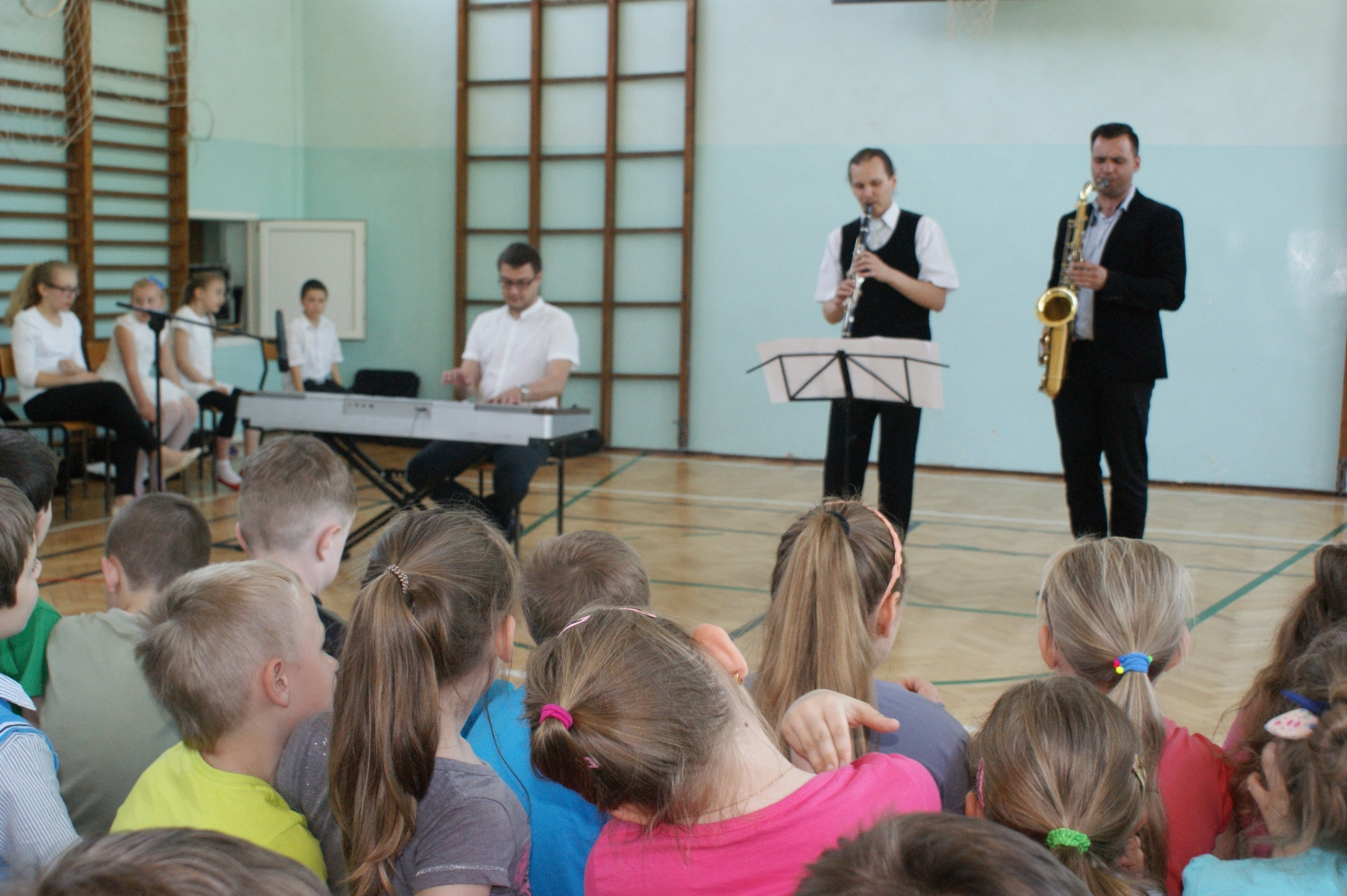 W środę, 21 maja br. uczniowie naszej szkoły uczestniczyli w koncercie w wykonaniu uczniów i nauczycieli Państwowej Szkoły Muzycznej im. Witolda Lutosławskiego w Turku. Podczas koncertu usłyszeli wiele znanych melodii, między innymi "Mam chusteczkę haftowaną", "W murowanej piwnicy", "Nienawiść" czy wszystkim doskonale znaną melodię zapowiadającą program radiowy Lato z radiem. Utwory te wykonywane były przez uczniów i nauczycieli na takich instrumentach jak : akordeon, fortepian, klarnet i saksofon. Przy okazji zachęcano uczniów do nauki gry na instrumentach muzycznych i skorzystania z oferty szkoły muzycznej.