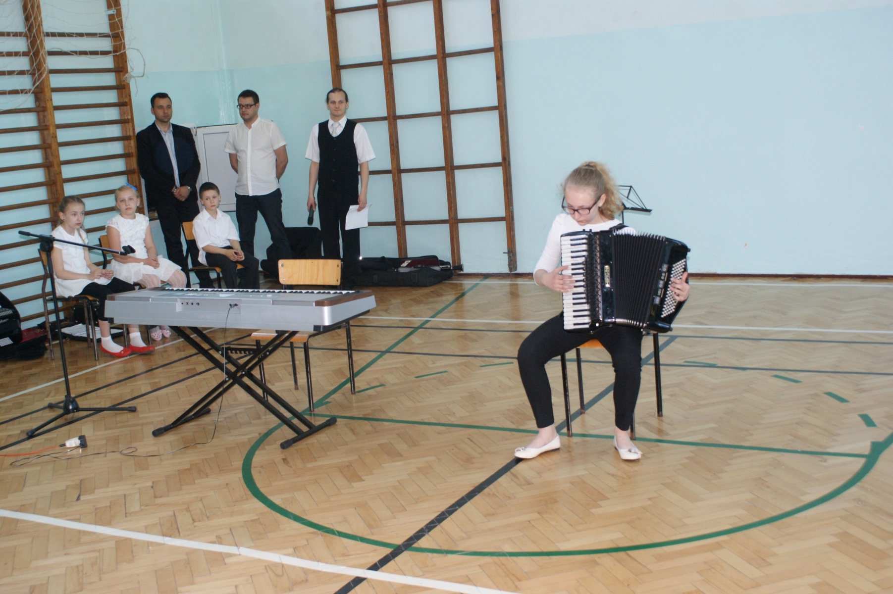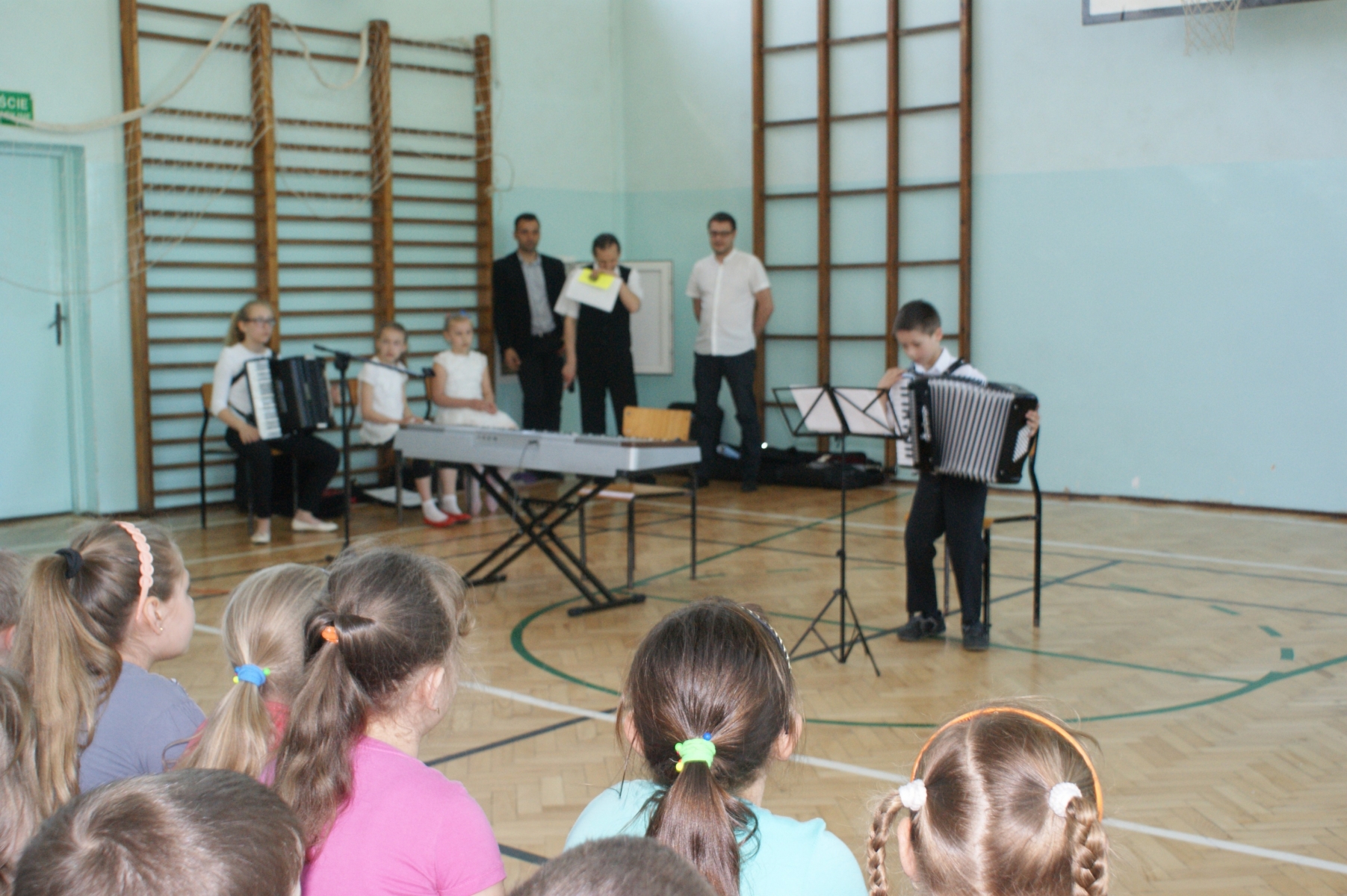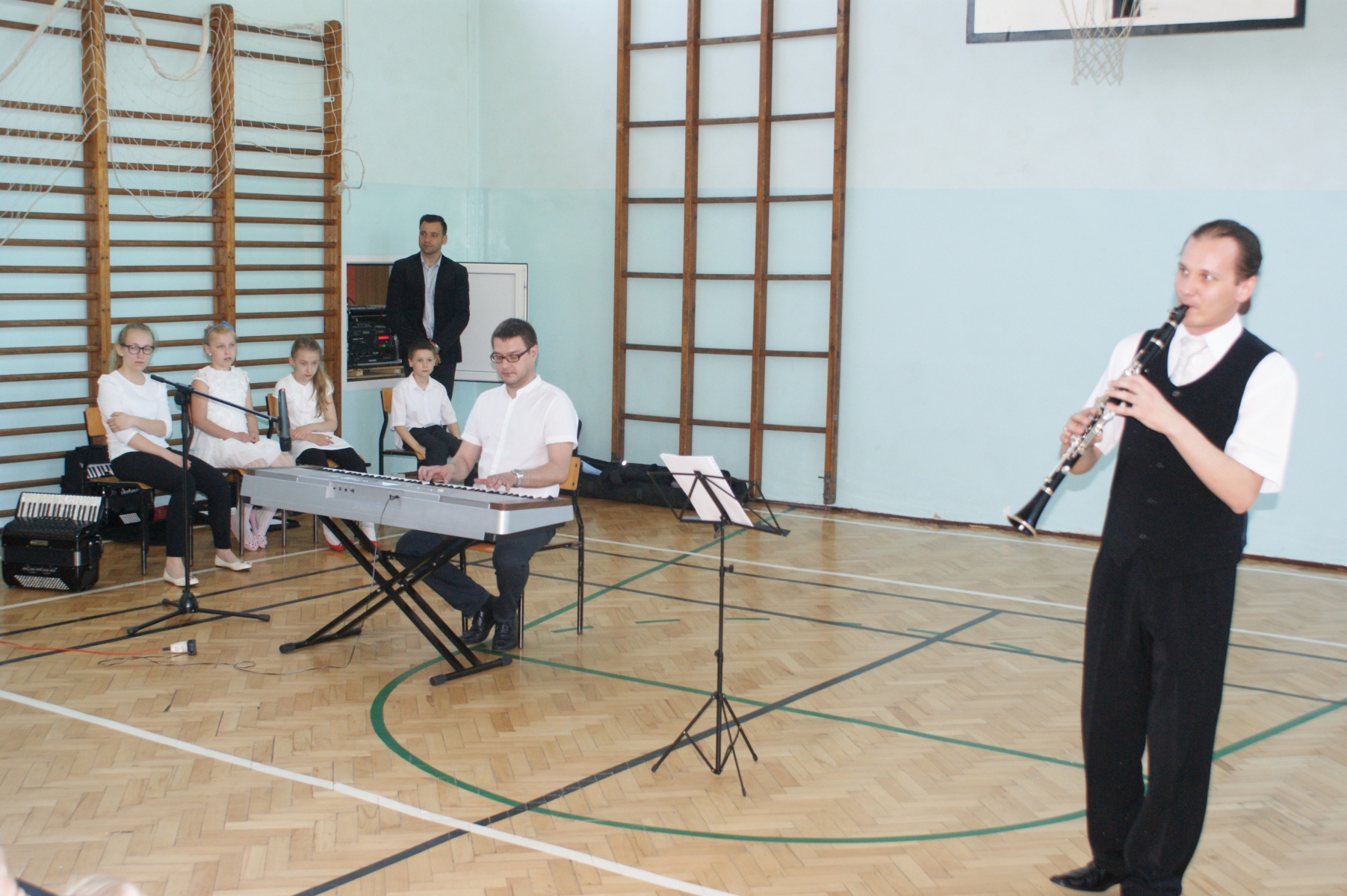 W środę, 21 maja br. uczniowie naszej szkoły uczestniczyli w koncercie w wykonaniu uczniów i nauczycieli Państwowej Szkoły Muzycznej im. Witolda Lutosławskiego w Turku. Podczas koncertu usłyszeli wiele znanych melodii, między innymi "Mam chusteczkę haftowaną", "W murowanej piwnicy", "Nienawiść" czy wszystkim doskonale znaną melodię zapowiadającą program radiowy Lato z radiem. Utwory te wykonywane były przez uczniów i nauczycieli na takich instrumentach jak : akordeon, fortepian, klarnet i saksofon. Przy okazji zachęcano uczniów do nauki gry na instrumentach muzycznych i skorzystania z oferty szkoły muzycznej.