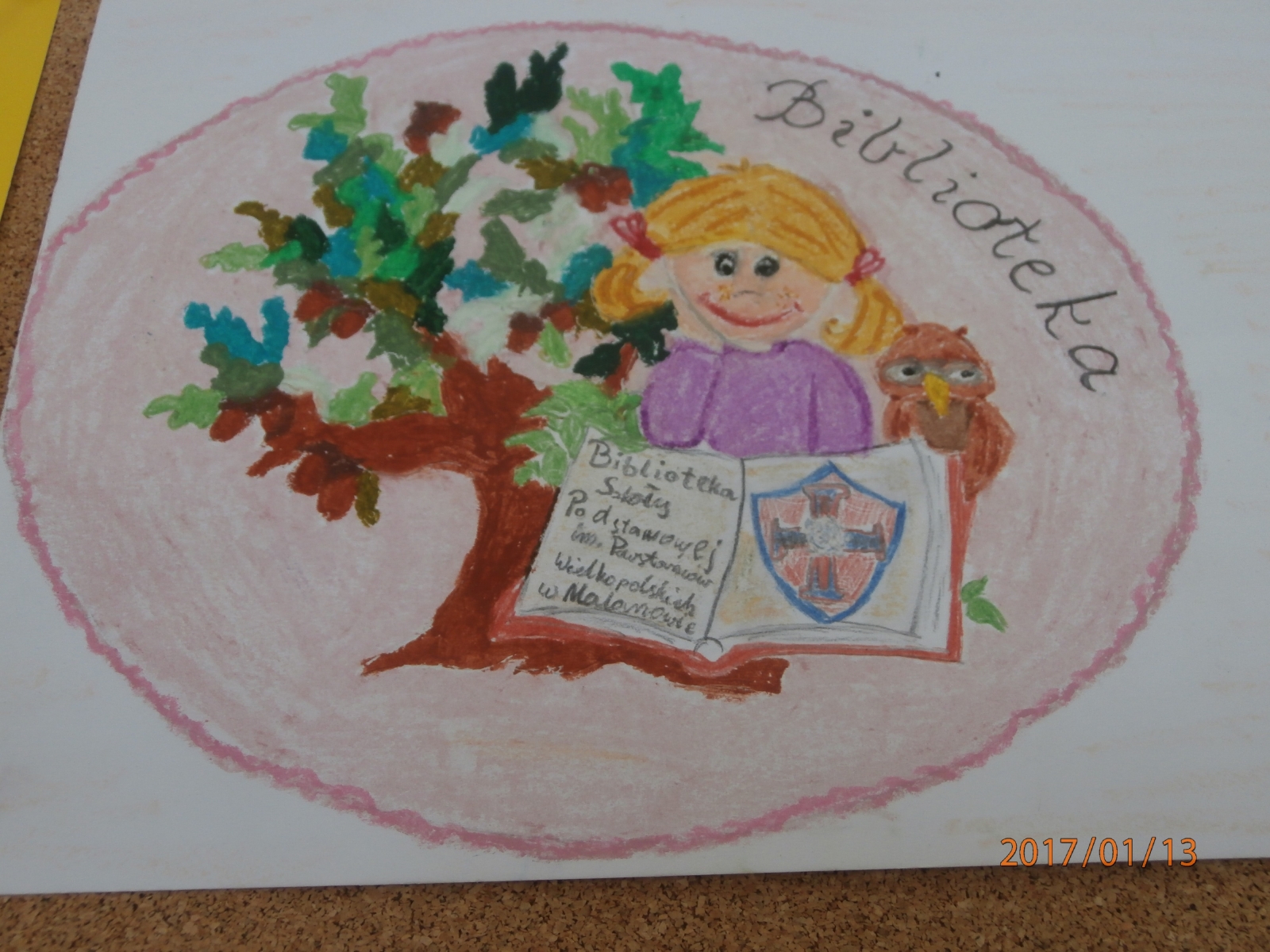 Pod koniec listopada 2016 roku biblioteka Szkoły Podstawowej w Malanowie ogłosiła konkurs na projekt znaku graficznego „logo” biblioteki. Konkurs przeznaczony był dla uczniów klas piątych. Rozstrzygnięcie konkursu nastąpiło w dniu 10 stycznia 2017 roku. Komisja konkursowa, w skład której weszli nauczyciele bibliotekarze i nauczyciel plastyki, przyznała pierwsze miejsce uczennicy klasy V b - Danieli Świtalskiej. Wyróżnienia otrzymali: Marika Stefaniak z klasy V a, Rozalia Jałkiewicz, Nikola Szwankowska i Eryk Banaszewski z klasy V b. Wszyscy otrzymali dyplomy i upominki. Prace uczniów zostały zaprezentowane na gazetce informacyjnej biblioteki.