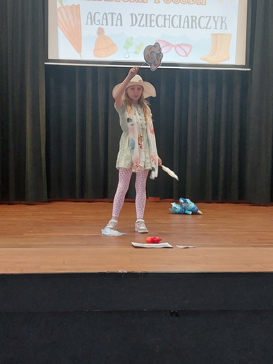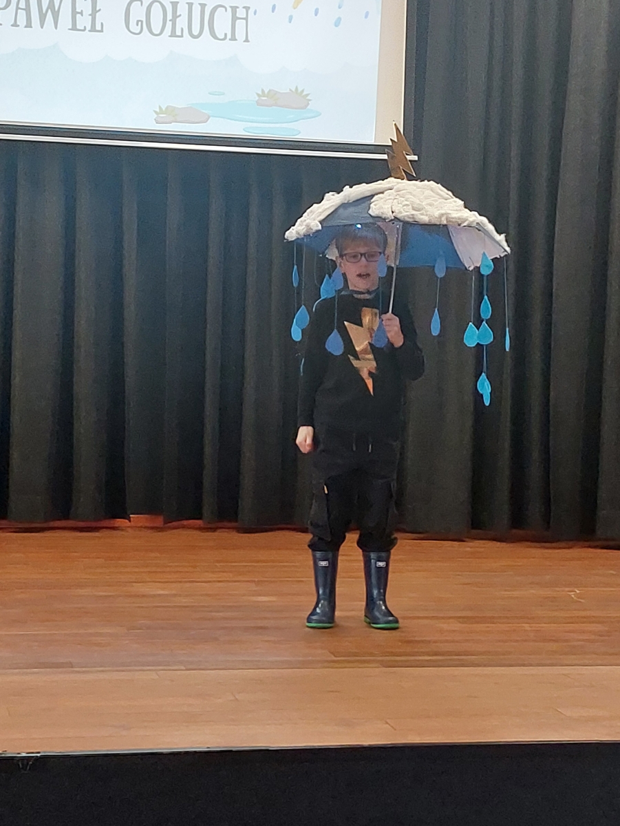 Dzieci pięknie zaprezentowały się swoimi zdolnościami recytatorskimi oraz aktorskimi podczas recytacji utworów wybranych autorów o tematyce związanej z pogodą i zjawiskami atmosferycznymi. Z zaangażowaniem, ekspresją słowa, modulacją głosu i ruchem scenicznym deklamowały wiersze, ukazując bardzo dobre przygotowanie. Prezentacje aktorskie wzbogaciły ciekawe rekwizyty i pomysłowe stroje.