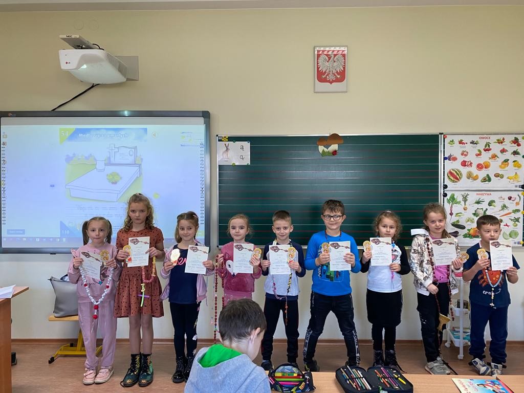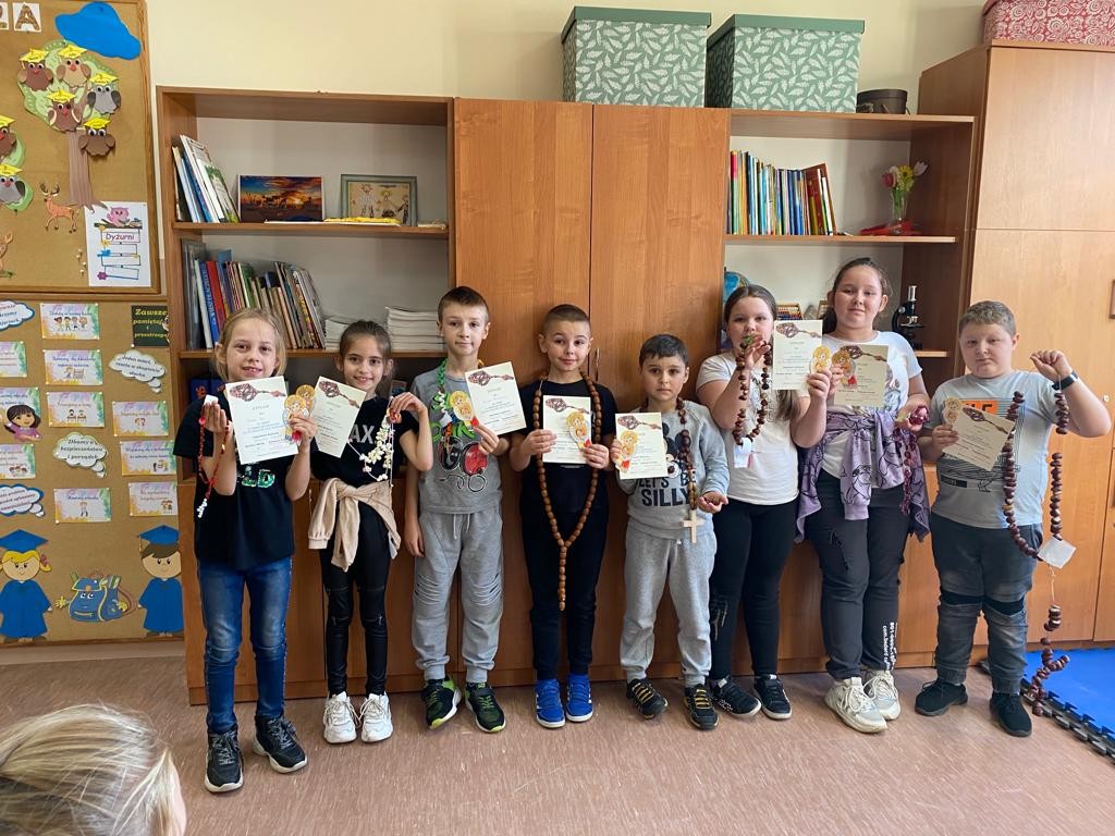 27 października w Szkole Podstawowej w Malanowie odbyło się wręczenie dyplomów i nagród za udział w rodzinnym konkursie różańcowym dla uczniów klas 1-2. Uczniowie przy pomocy rodziców mieli zadanie wykonać różaniec z różnorodnych materiałów. Celem konkursu było zapoznanie się z budową różańca i modlitwą różańcową. Przepiękne różańce stanowiły wystawę na korytarzu szkolnym przez cały październik. Gratulujemy wszystkim uczestnikom konkursu i cieszymy się ,że wielu z tych uczniów brało udział w modlitwie różańcowej we wspólnocie Kościoła.
