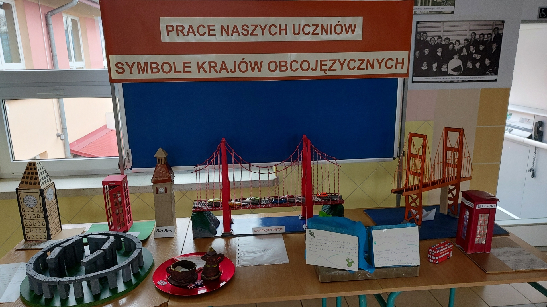 Uczniowie naszej szkoły wzięli udział w angielskim konkursie językowym pod tytułem „Symbole krajów anglojęzycznych”. W ramach konkursu należało wykonać pracę przestrzenną – makietę jednego z zabytków lub symboli jednego z krajów anglojęzycznych. Uczniowie wybierali spośród symboli Anglii, Szkocji, Walii, Irlandii, Stanów Zjednoczonych, Kanady, Australii, Nowej Zelandii i innych krajów gdzie powszechnie stosowany jest język angielski. Potem wykonywali trójwymiarowy model z dowolnego materiału przedstawiający dany symbol wraz z krótką legendą informacyjną.