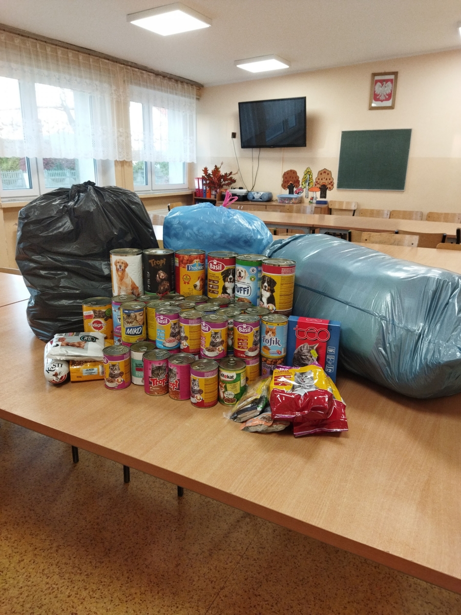 Dzięki zaangażowaniu rodziców i dzieci udało się zebrać: 12 kg karmy dla kotów, 25 kg karmy dla psów, 16 ręczników, 14 poszewek, 6 kocy i 2 poduszki ogrodowe. 25 października 2021r. pracownicy schroniska odebrali zgromadzone dary a dzieciom przekazali dyplom – podziękowanie za pomoc bezdomnym zwierzętom.
