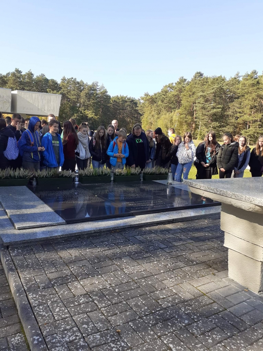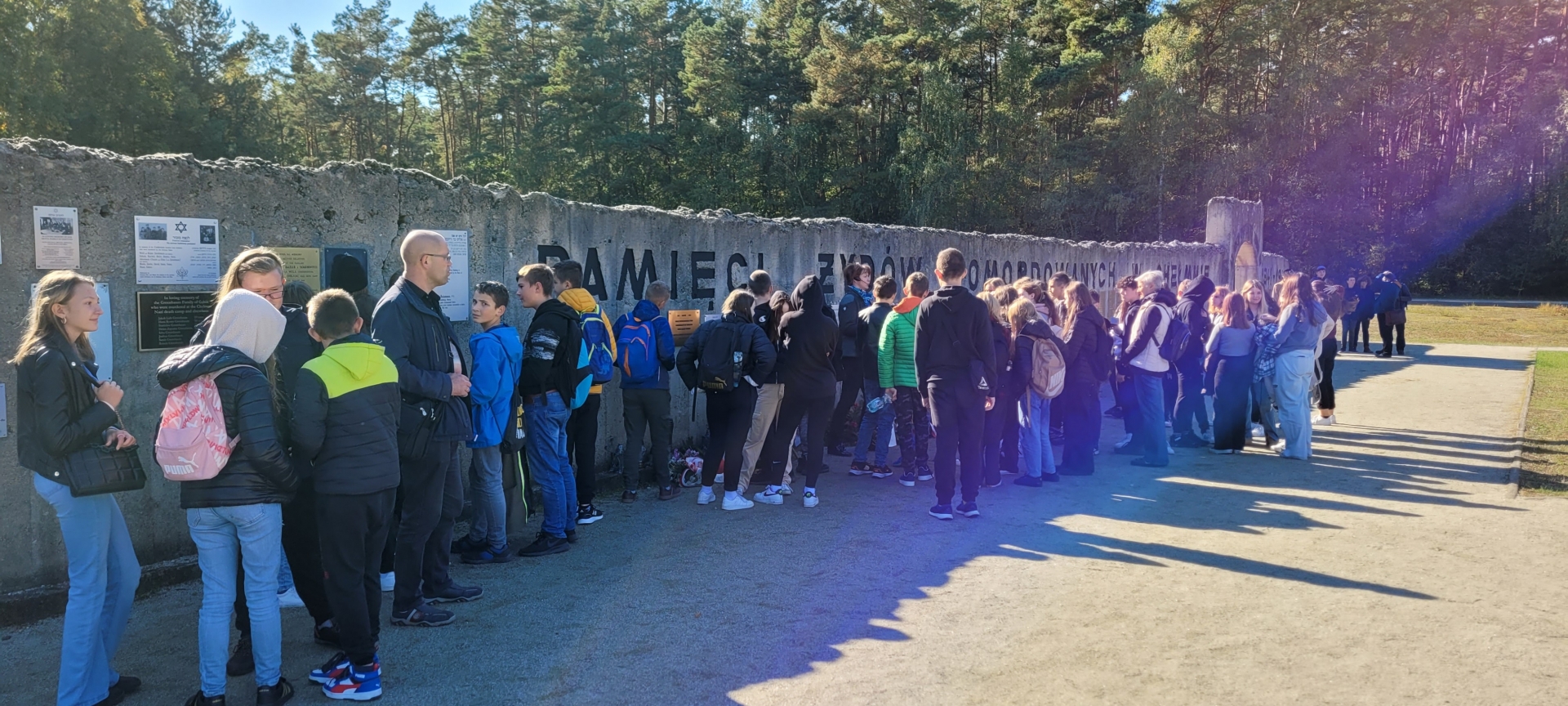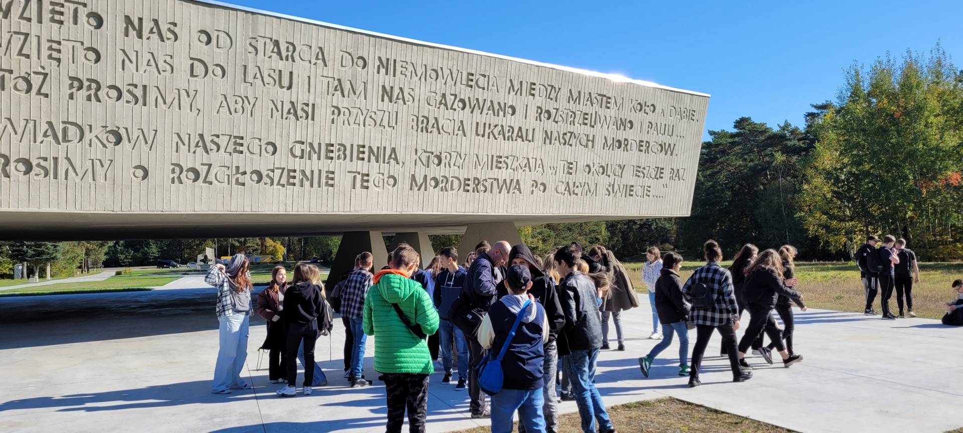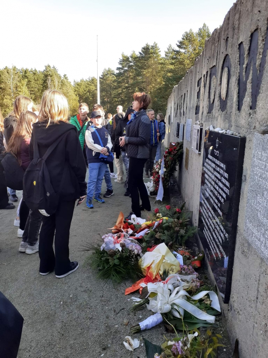 Nasi uczniowie, z dużą powagą, odbyli marsz w kierunku Ściany Pamięci w Lesie Rzuchowskim, gdzie spoczywa 200 tysięcy ofiar Holokaustu.