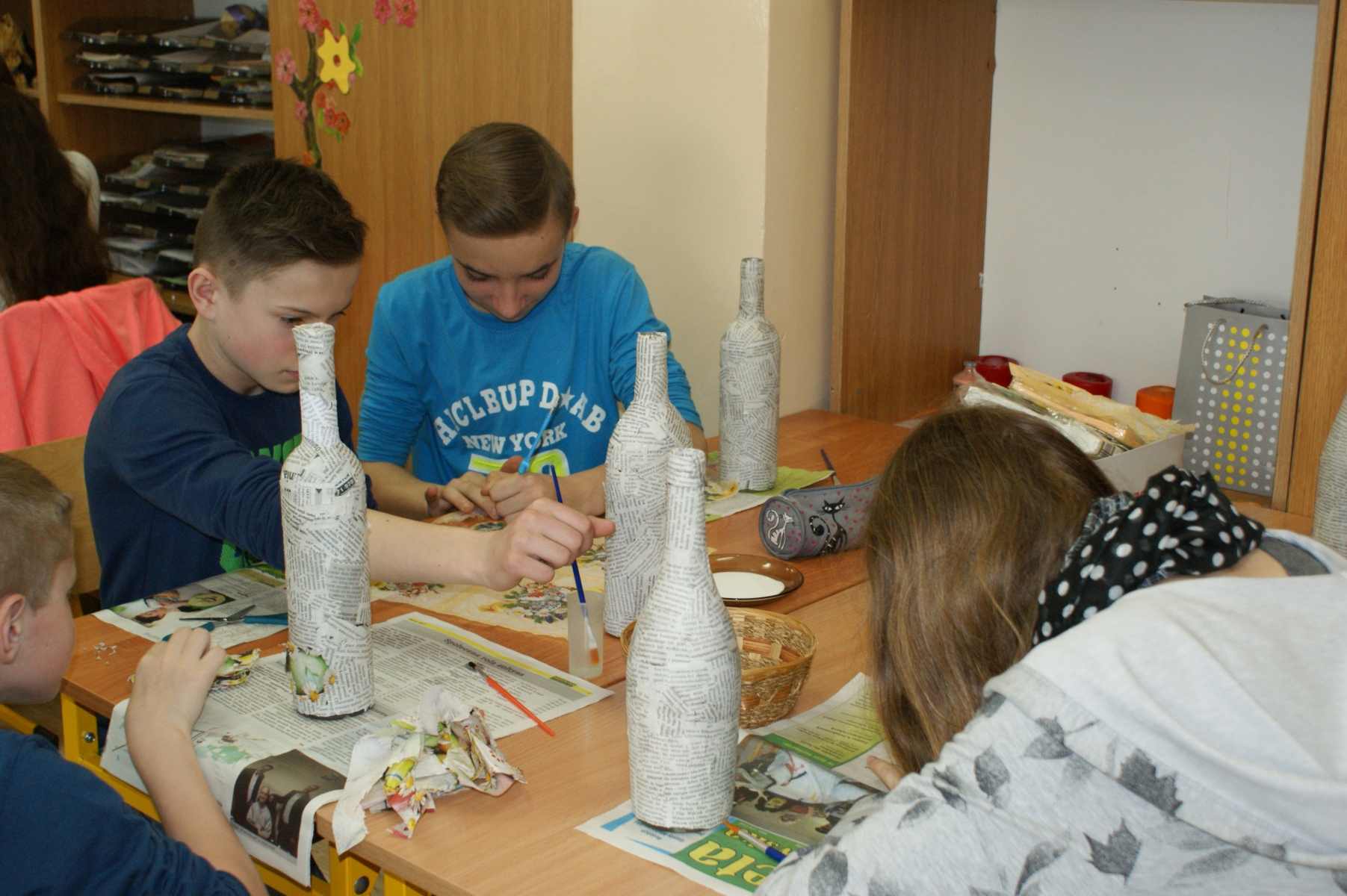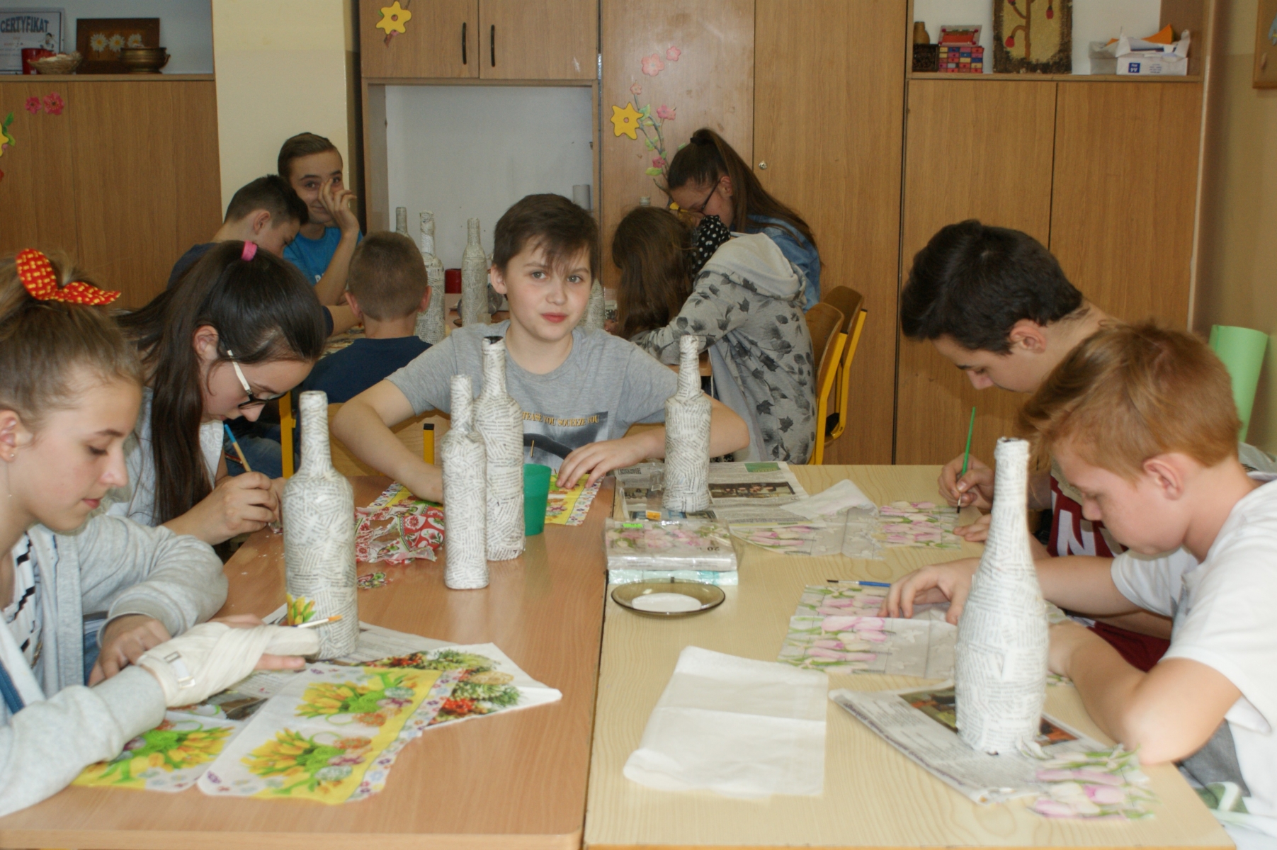 Głównym celem zajęć było kształcenie i budzenie nowych postaw plastycznych, umożliwienie uczniom różnych doświadczeń - poznanie nowej techniki. Uczniowie bardzo chętnie i z dużym zaangażowaniem pracowali, tworząc własne prace w technice decoupage.