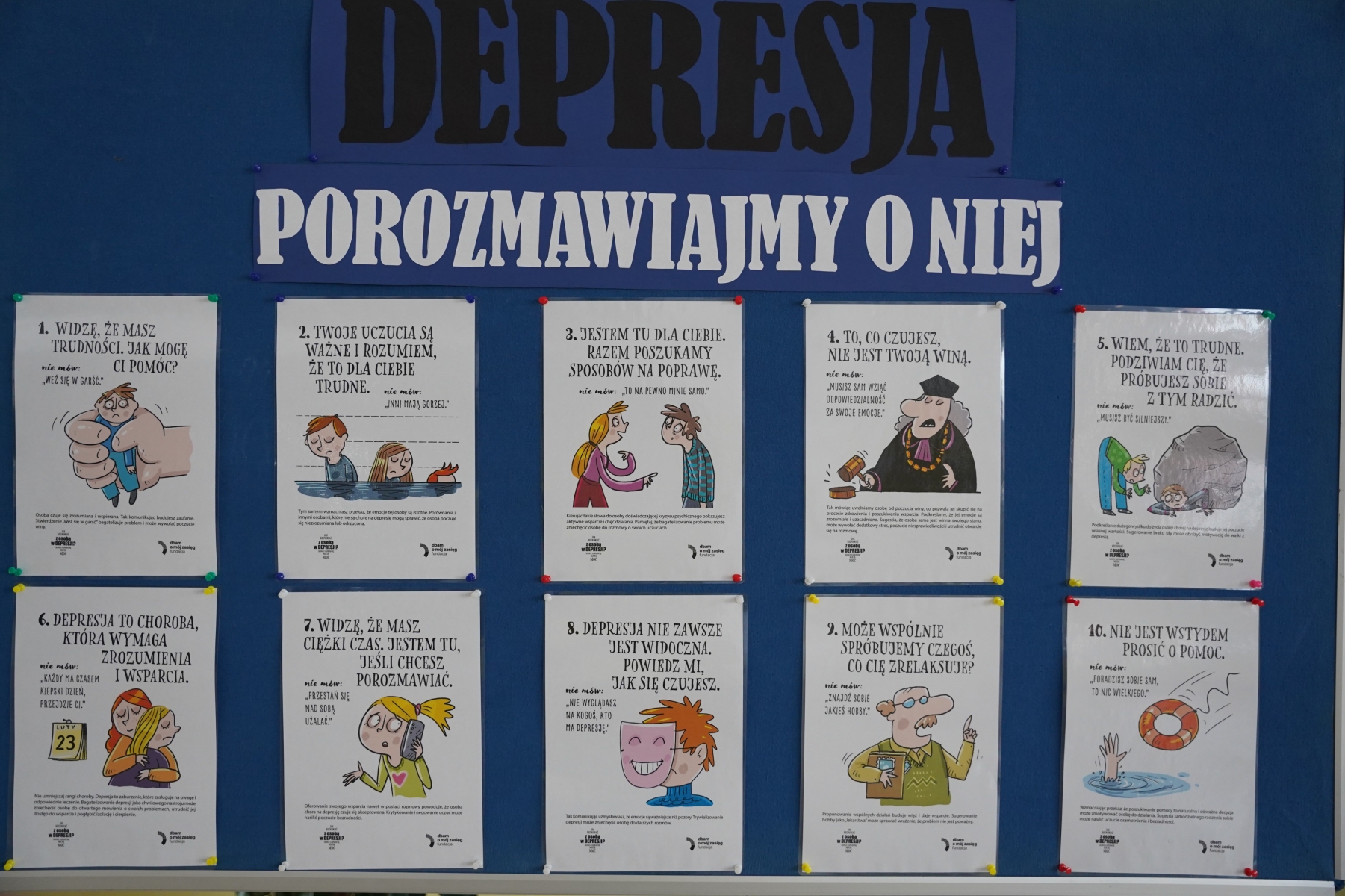 Luty jest miesiącem poświęconym zwiększonej świadomości na temat depresji- choroby , która dotyka nie tylko dorosłych, ale także dzieci i młodzież. Depresja to nie jest „ zły humor” „ lenistwo”. To bardzo poważna choroba, która wymaga wsparcia, zrozumienia, pomocy specjalistycznej. W naszej szkole specjaliści szkolni w ramach współpracy z „Fundacją Dbam o Mój Zasięg”, przygotowali dla uczniów gazetkę- jak rozmawiać z osobą w depresji, czego nie mówić?. Zachęcamy również do rozmowy z zaufaną osobą: nauczycielem, psychologiem, pedagogiem lub rodzicem.