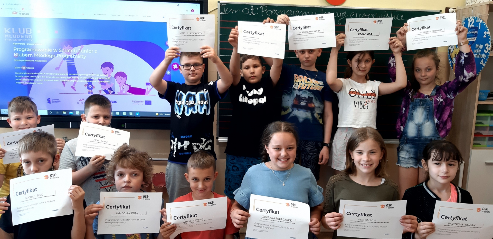 Uczniowie klasy III a ze Szkoły Podstawowej w Malanowie uczestniczyli w kursie: „Programowania w Scratch Junior z Klubem Młodego Programisty”. Programowanie to proces twórczy, a jego efektem są stworzone przez programistę różnego rodzaju dzieła. Programowanie uczy także logicznego, analitycznego myślenia, rozwija kreatywność oraz pozwala zdobyć nowe kompetencje i odkryć nowe talenty. OSE IT szkoła to platforma edukacyjna adresowana dla uczniów klas I- III, którzy chcą poszerzyć własne umiejętności i nauczyć się czegoś nowego. Uczniowie klas III a poznali i stosowali we własnych projektach różnorodne możliwości aplikacji Scratch Junior. Nagrywali własne narracje, animacje, tworzyli sceny i bohaterów własnych opowieści, a co najważniejsze sprawnie porozumiewali się językiem i pojęciami programistów. Kurs składał się z ośmiu 30-minutowych modułów. Każdy z nich poszerzał zdobyte wcześniej umiejętności, był kontynuacją i rozwinięciem poprzednich treści, tworzył jednocześnie oddzielną całość, wprowadzał w coraz bardziej skomplikowane tajniki programowania. Pod czujnym okiem wychowawczyni i wybitnych trenerów uczniowie doskonale opanowali poznane umiejętności i 100% zaliczyli test końcowy. Każdy uczeń przygotował także trzy własne filmiki wykorzystując w nich to czego się nauczył. Nauka poprzez zabawę to nowe spojrzenie na współczesną edukację wykorzystane na zajęciach w klasie III A.