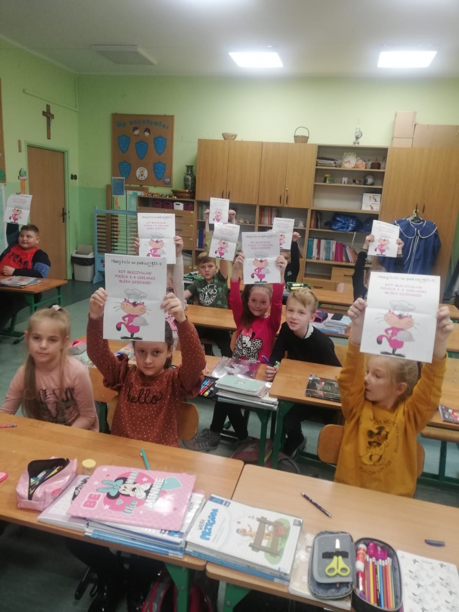 Podczas realizacji projektu uczniowie poprzez zabawę pogłębiali wiedzę o zdrowotnej roli mleka i jego znaczeniu w rozwoju. Przez ten czas korzystano z broszurek dla dzieci i rodziców, w których były zadania i rebusy do rozwiązywania. Dzieci miały okazję zdobyć szerszą wiedzę o zasadach zdrowego odżywiania, o wartościach mleka i produktów mlecznych. Uczniowie chętnie brali udział w zabawach logicznych, rozwiązywali zagadki oraz wykonywali prace plastyczne z wykorzystaniem nadesłanych materiałów edukacyjnych. Wzięli też udział w konkursie: „Poszukiwane imię dla koleżanki Mleczysława”. Na zakończenie projektu uczestnicy wypełnili „Mleczny quiz podsumowujący”. Czas, kiedy dziecko jest w wieku szkolnym, to nie lada wyzwanie nie tylko dla rodziców, ale i nauczycieli – zwłaszcza pod względem zdrowego żywienia. To właśnie w tym okresie kształtowane są nawyki żywieniowe i upodobania kulinarne dzieci, które będą rzutować na jego przyszły styl życia. Dlatego niezwykle istotne jest przyzwyczajanie, od najmłodszych lat, do spożywania różnego rodzaju pożywienia. Mamy nadzieję, że uczniowie będą pamiętali o tym cennym składniku naszej diety.