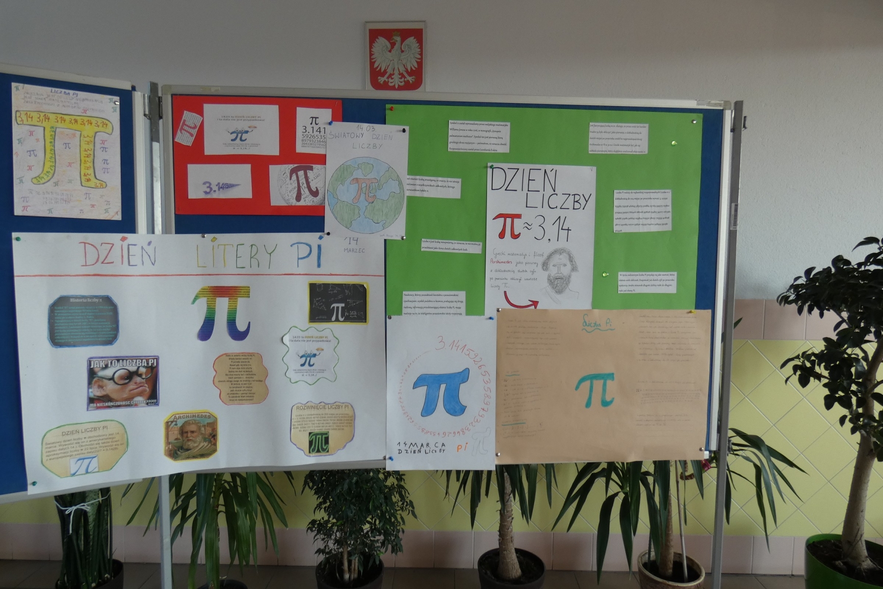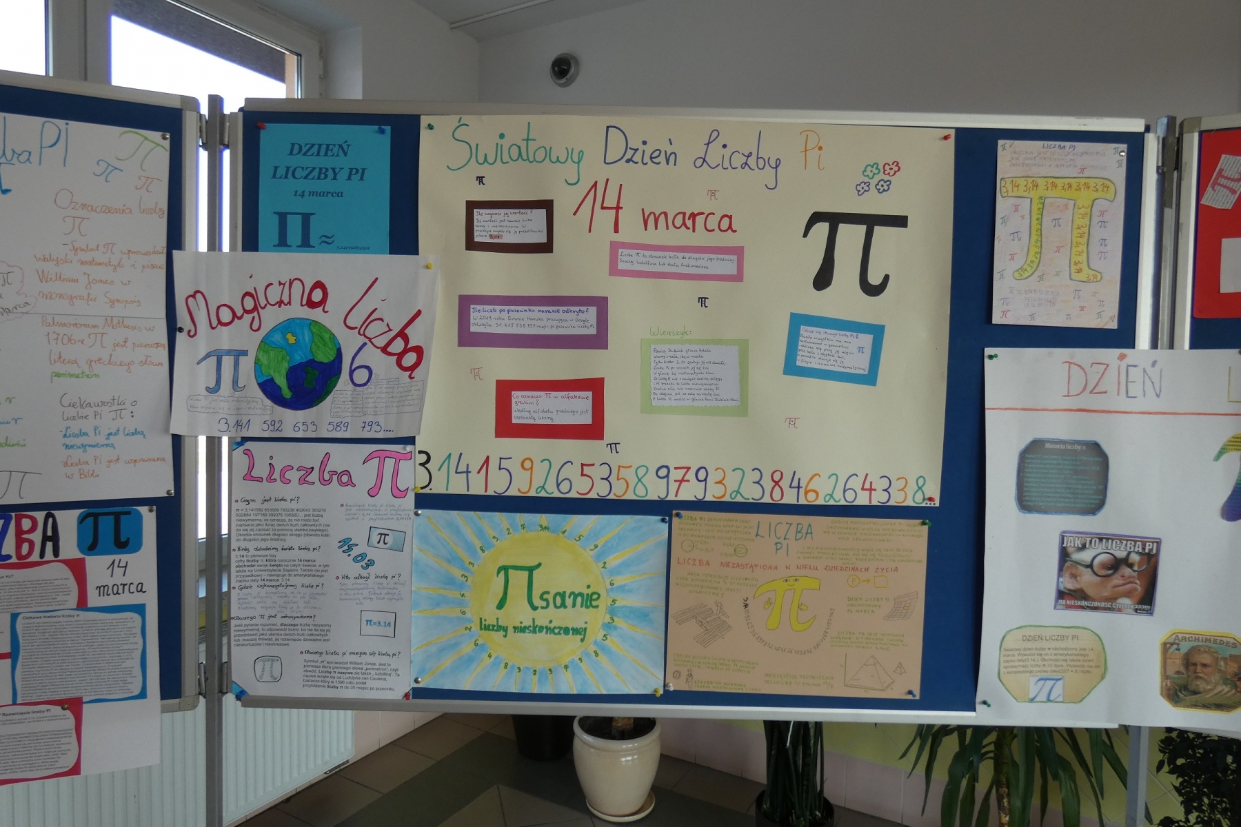 Z tej okazji nauczyciele matematyki Szkoły Podstawowej w Malanowie zaproponowali uczniom wykonanie prac dotyczących tej najsłynniejszej liczby. Uczniowie chętnie wzięli udział w akcji i wykonali wiele ciekawych plakatów dotyczących historii, ciekawostek i zastosowań liczby π, które zaprezentowane zostały na tablicach ustawionych na szkolnym holu.