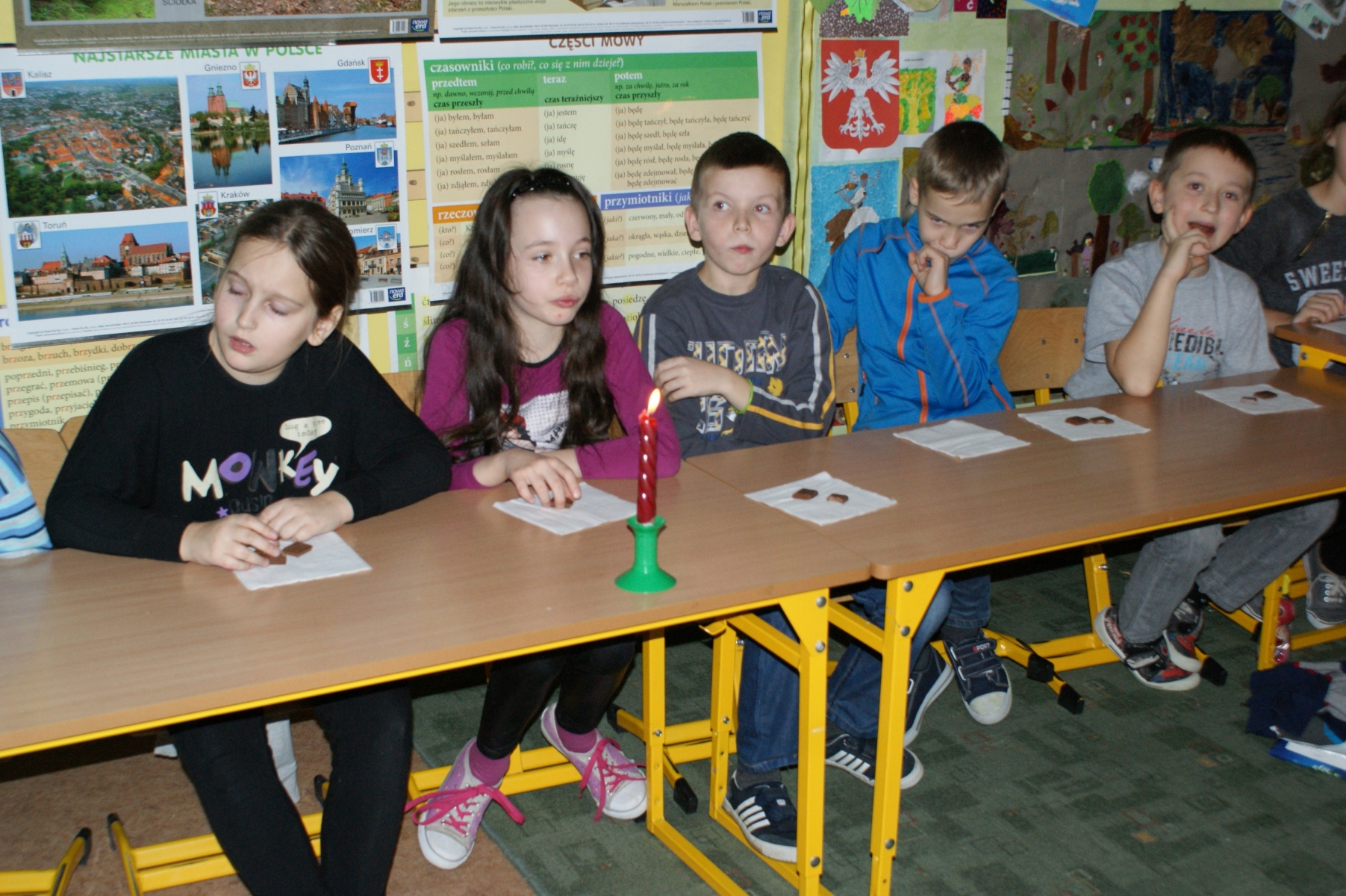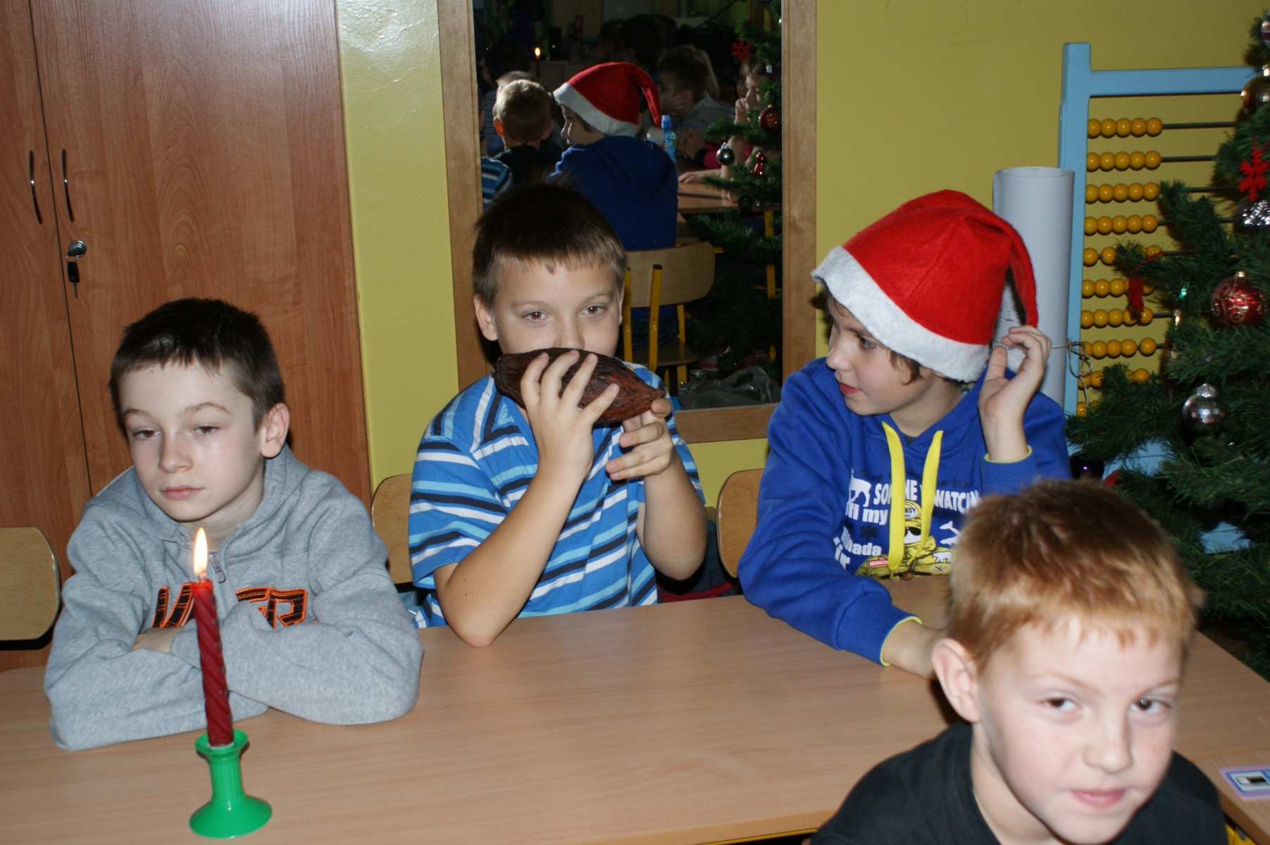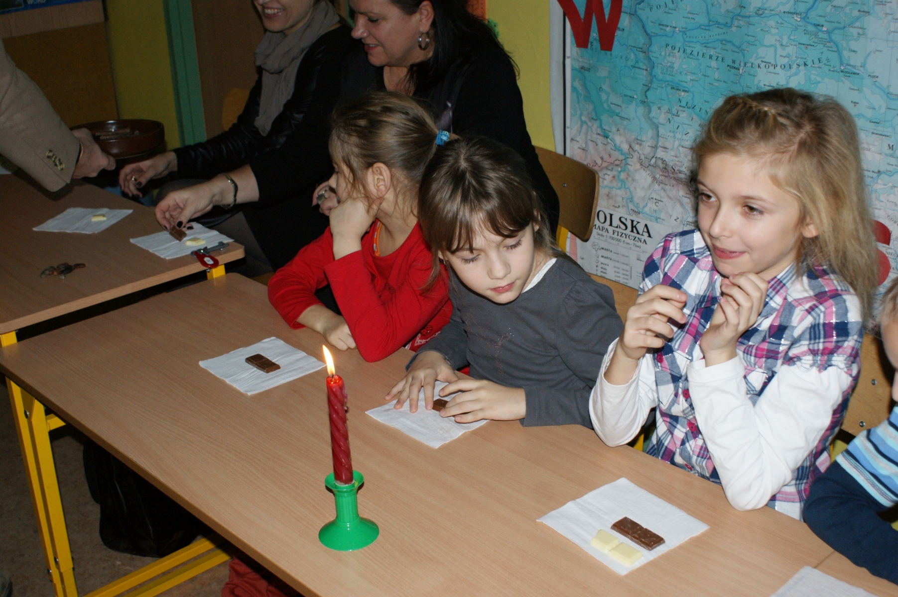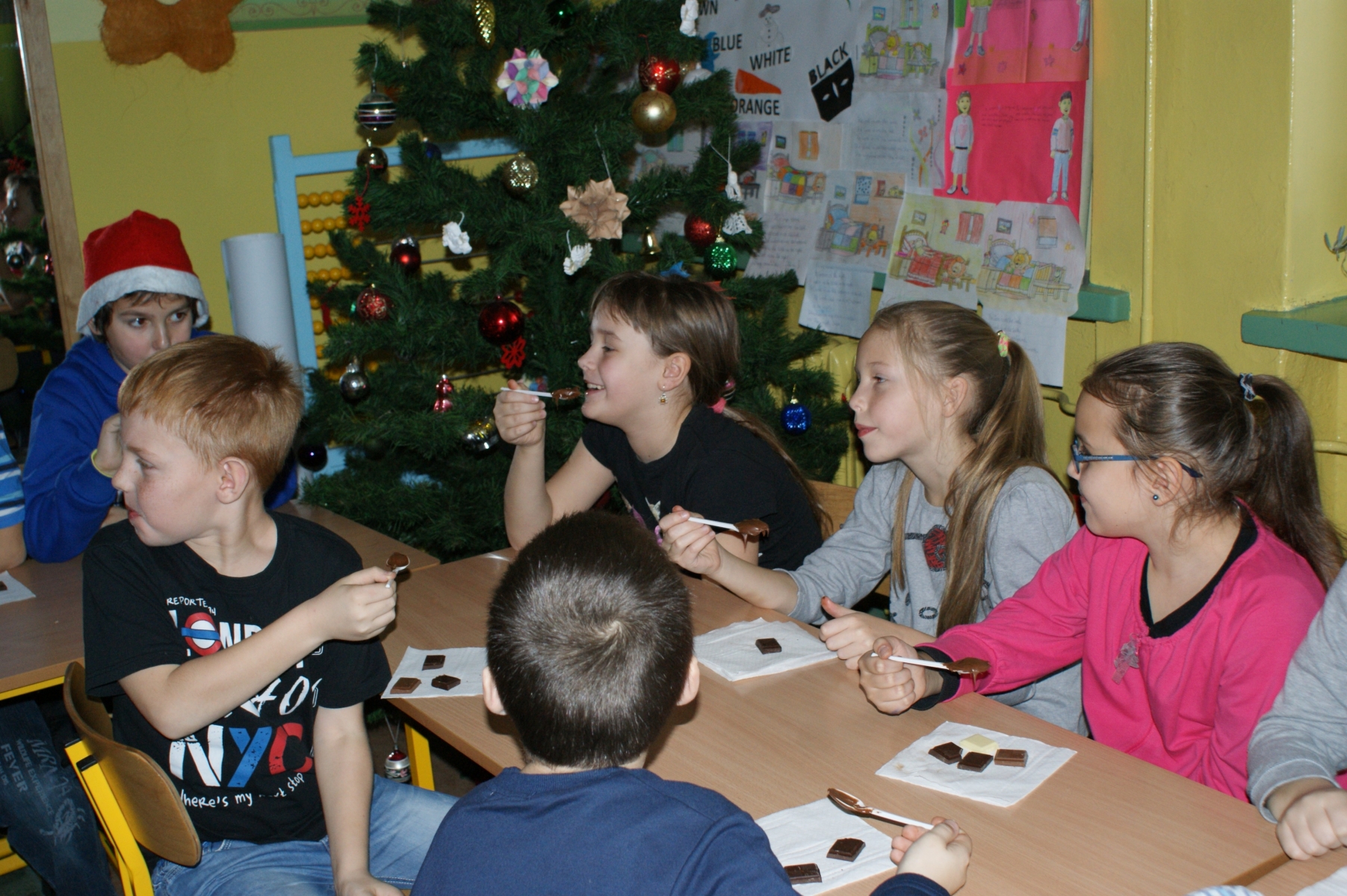 Mikołajkową przygodę trzeciaki kontynuowały w piątkowy poranek 06 grudnia 2013 roku, uczestniczyły w zajęciach warsztatowych połączonych z ciekawą prezentacją dotyczącą czekolady i z jej degustacją. Spotkanie poprowadzili państwo Mitchell. Dzięki bogatej prezentacji multimedialnej, dzieci dowiedziały się jak wygląda drzewo kakaowe i jego owoc, gdzie rosną kakaowce oraz jaką drogę musi przebyć ziarno kakao aby stać się upragnioną przez wszystkich łasuchów tabliczką czekolady. Pan Mitchell zapoznał uczniów z historią znanej na całym świecie Nutelli. Atrakcyjnym punktem prezentacji była oczywiście profesjonalna degustacja czekolady, podczas której uczniowie używając pięciu zmysłów i uważnie słuchając wskazówek pana Paula, uczyli się zgłębiać tajniki poprawnego degustowania oraz rozpoznawania cech charakterystycznych dla danego typu czekolady. Na zakończenie, przeprowadzono quiz sprawdzający zdobytą wiedzę podczas przeprowadzonego na temat czekolady.