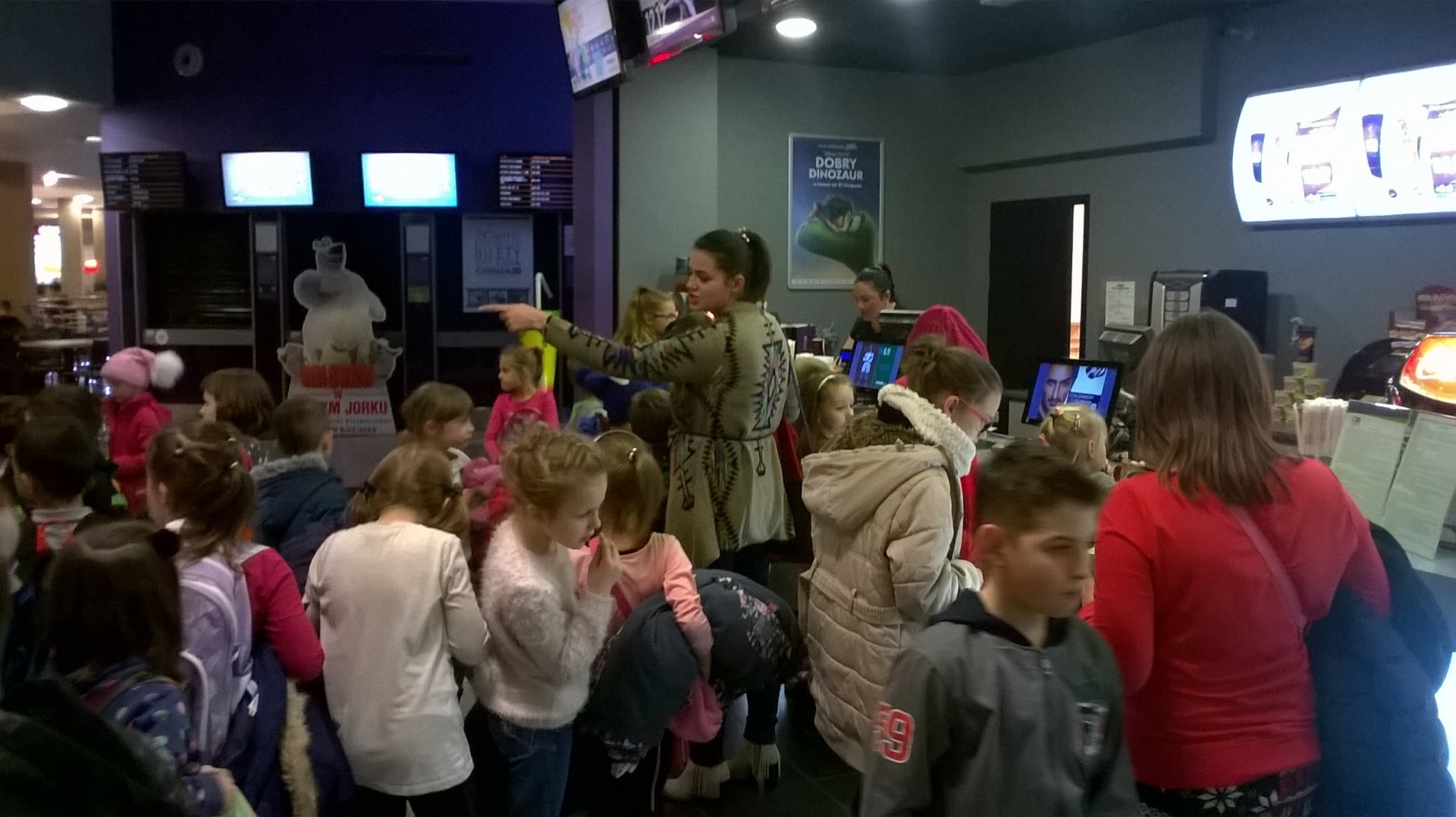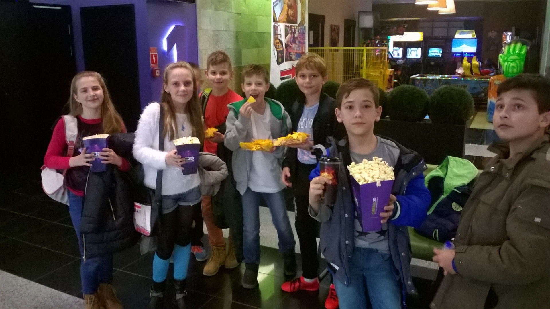 W czwartek (3 grudnia) z okazji Mikołajek uczniowie klas Ic i IVa wybrali się do kina na film pt: “Dobry Dinozaur”. Dzieci mogły się dowiedzieć jak mógłby wyglądać świat gdyby asteroida, której potężne uderzenie miliony lat temu doprowadziło do zagłady dinozaurów, jednak nie uderzyła w Ziemię. Nasi wychowankowie już wiedzą, bo odbyli z bohaterami filmu niezapomnianą podróż! Z wielkim przejęciem śledzili losy płochliwego apatozaura o imieniu Arlo oraz jego towarzysza w podróży powrotnej do domu – jaskiniowca Bąbla. Wybuchy śmiechu i oklaski przepełniały salę. Dzieci były bardzo zadowolone, ponieważ miło i przyjemnie spędziły swój wolny czas. Postarały się o to wychowawczynie: Justyna Sieradzan oraz Ewelina Czerniak. Opiekę nad grupą sprawowała również pani Julita Muszalska.