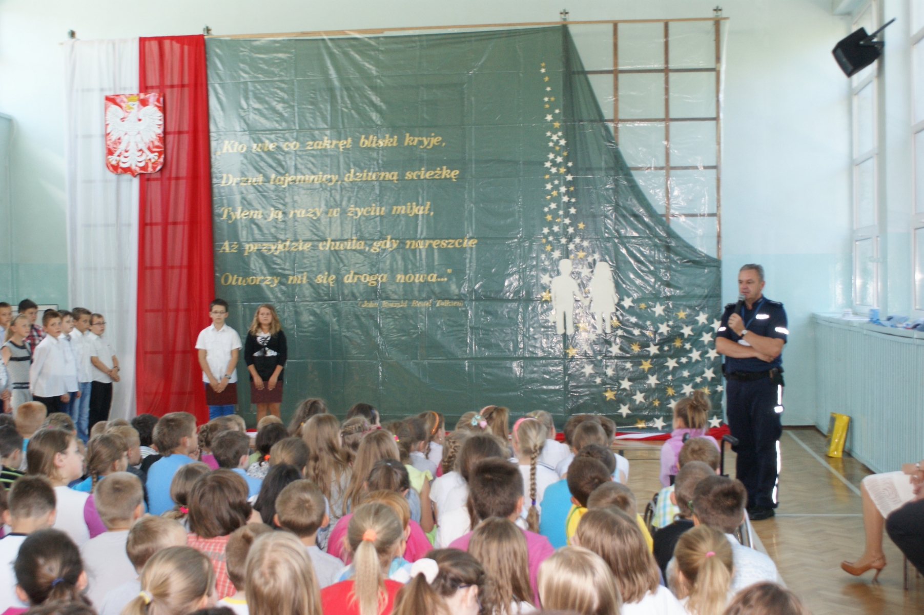 Na początku spotkania głos zabrał Pan Policjant - asp. szt. Krzysztof Aleksanderek, który przeprowadził pogadankę nt. bezpieczeństwa podczas wakacji.
