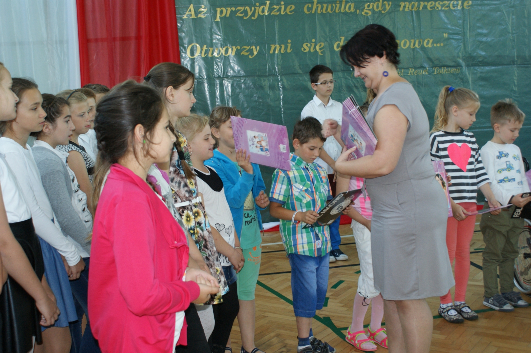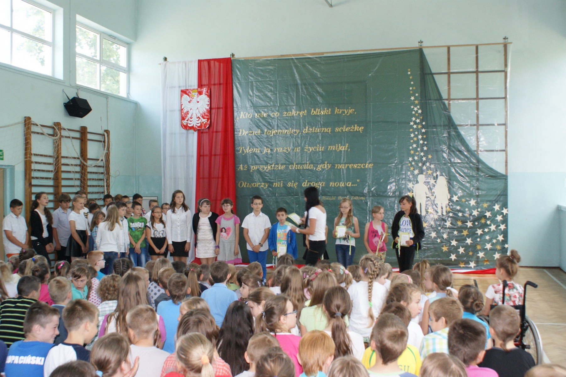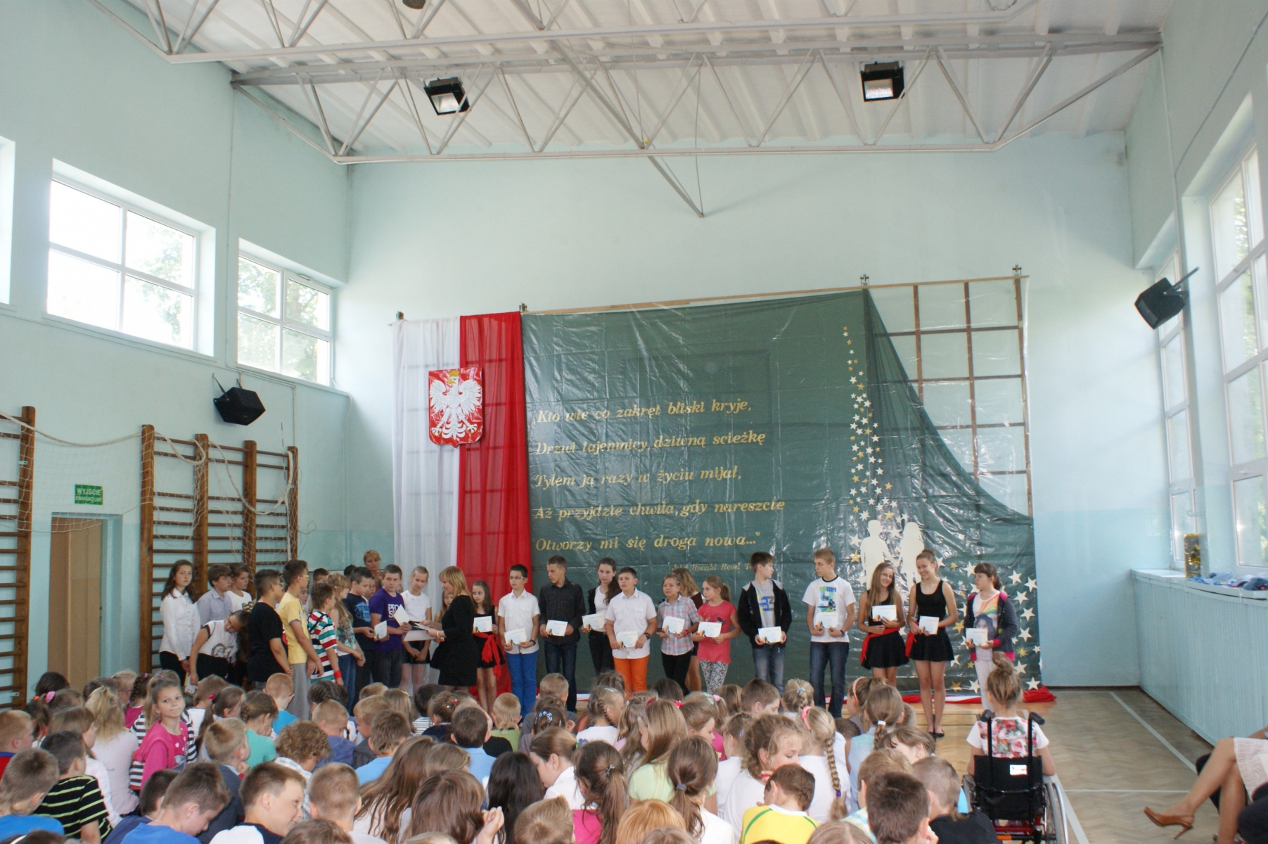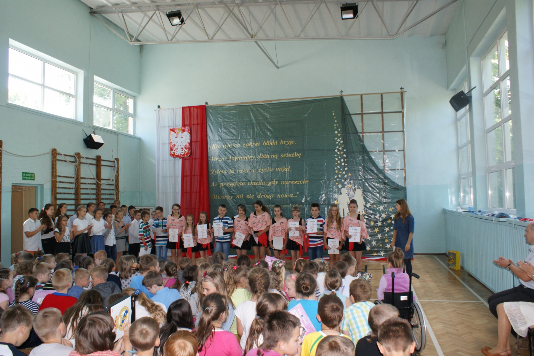 Na zakończenie akademii prowadzący życzyli kolegom i koleżankom oraz nauczycielom miłego wypoczynku, dużo słońca, uśmiechu na twarzy i szczęśliwego powrotu do szkoły.