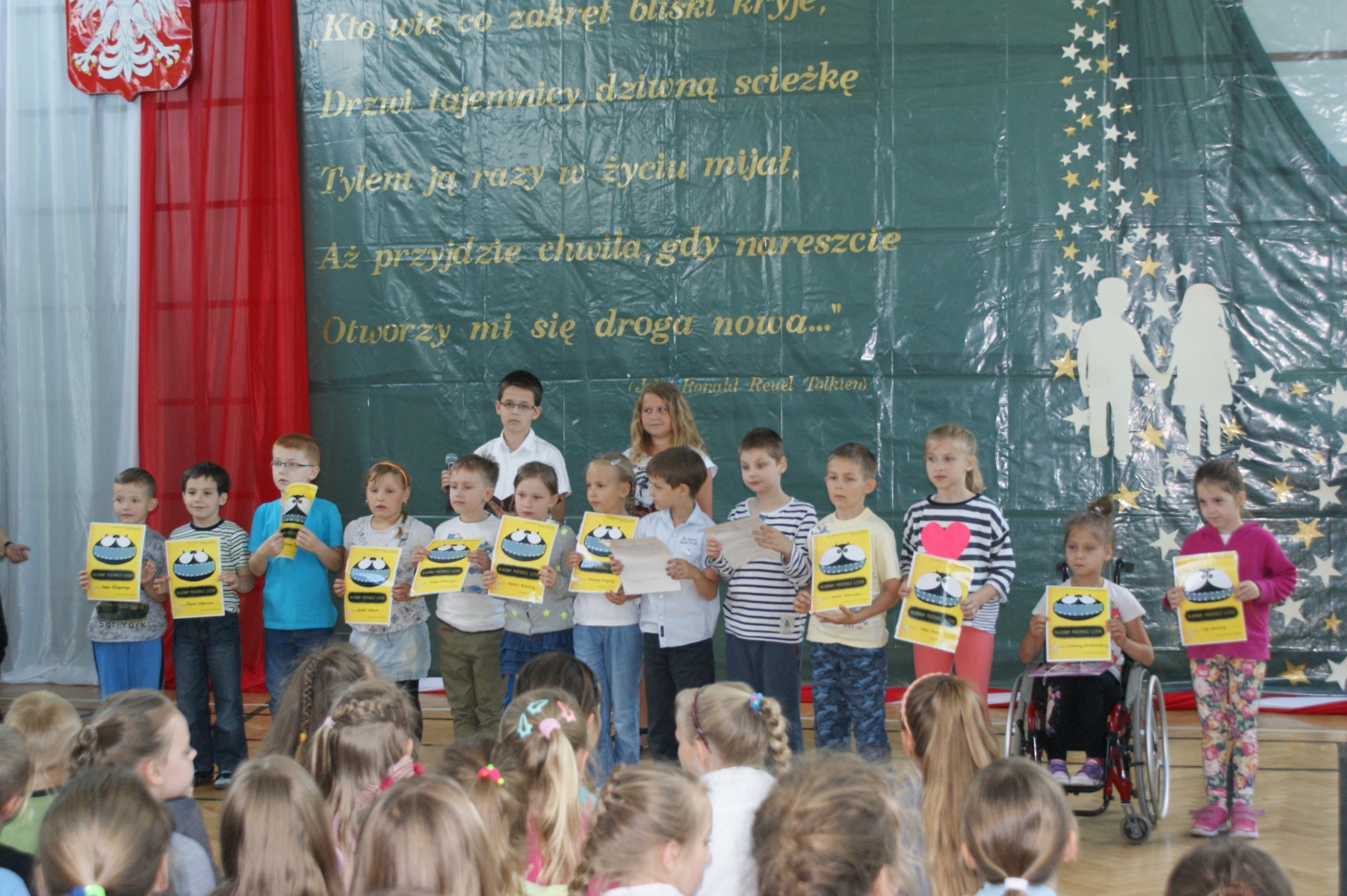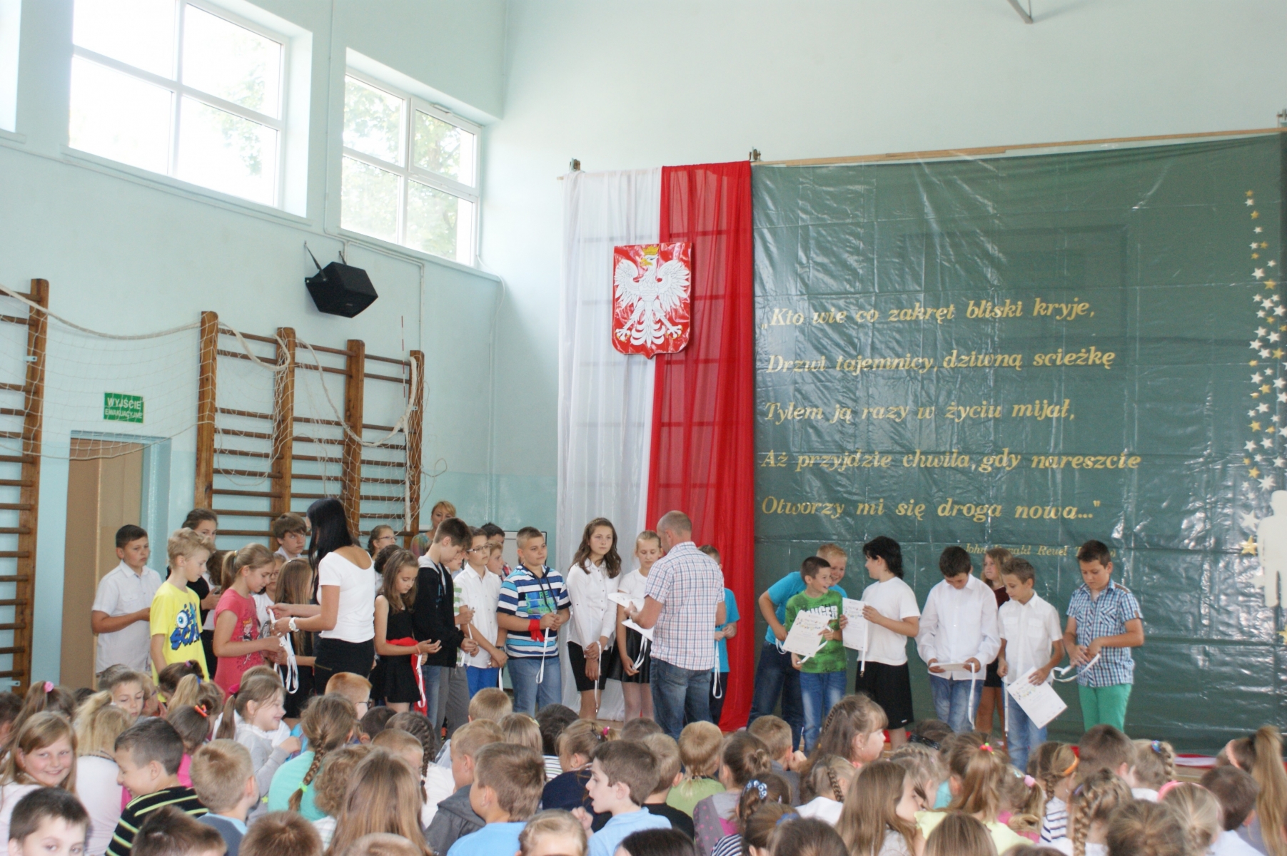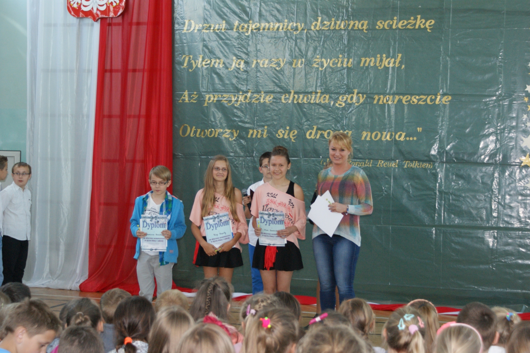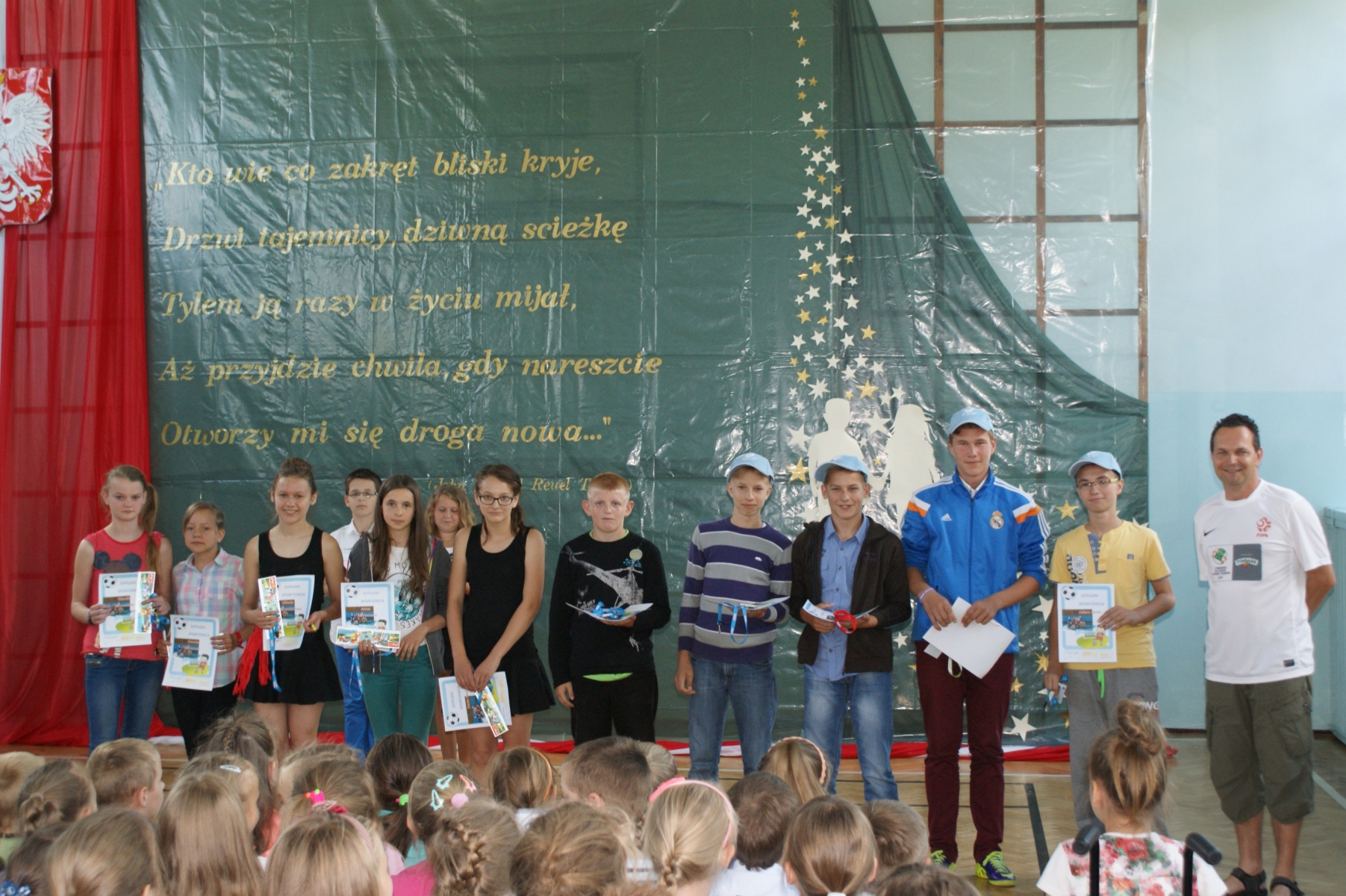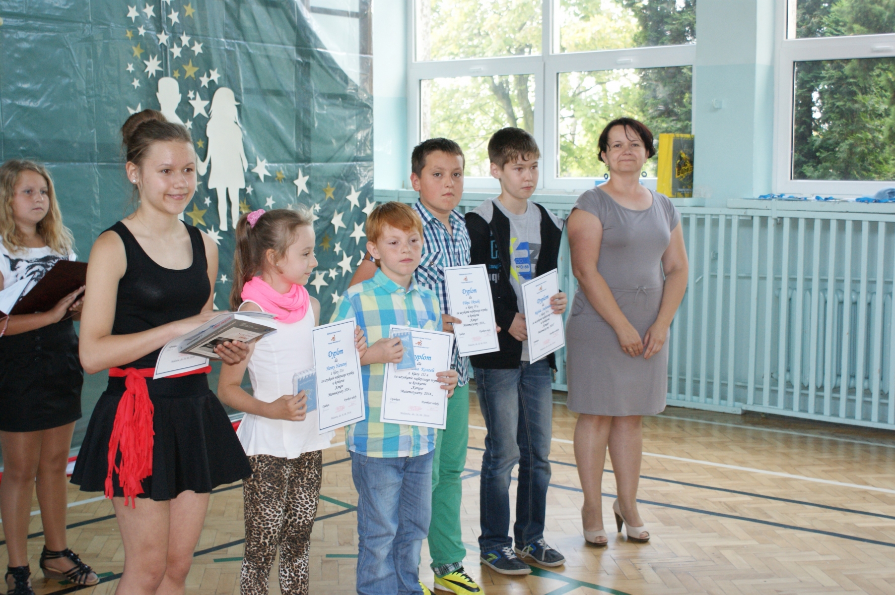 Pani Justyna Balcerzak podsumowała Konkurs Matematyczny „Kangur”, a pani Julita Muszalska wręczyła dyplomy uczniom za udział w Konkursie Plastycznym – „Środowisko – nasze wspólne dobro”. Pani Katechetka – Małgorzata Przybylak przekazała dyplomy udziału w Ogólnopolskim Konkursie „Wiedzy o Życiu Jana Pawła II.” Nadszedł czas na sportowców naszej szkoły. Pan Arkadiusz Musiałkiewicz podsumował osiągnięcia sportowe w roku szkolnym 2013/2014. Pani Ewelina Czerniak wręczyła dyplomy uczniom za pracę na rzecz Samorządu Uczniowskiego.