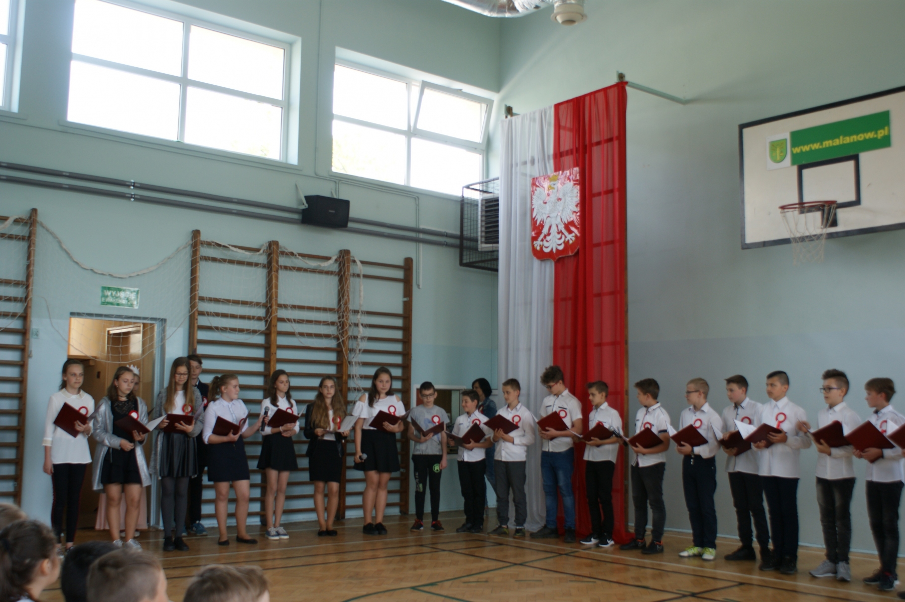Wszyscy obecni na apelu z uwagą wysłuchali montażu słowno-muzycznego poświęconego majowej Konstytucji ,bo jak wiadomo wsłuchując się w głos przeszłości, uczymy się przecież rozumieć i mądrze kształtować teraźniejszość.