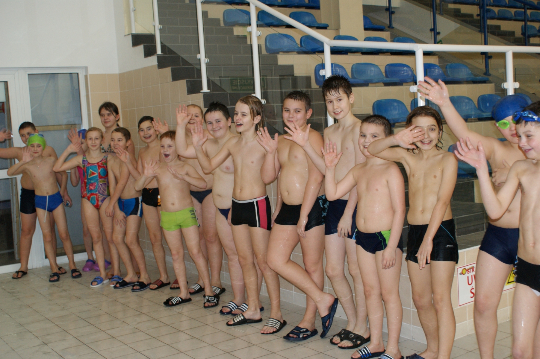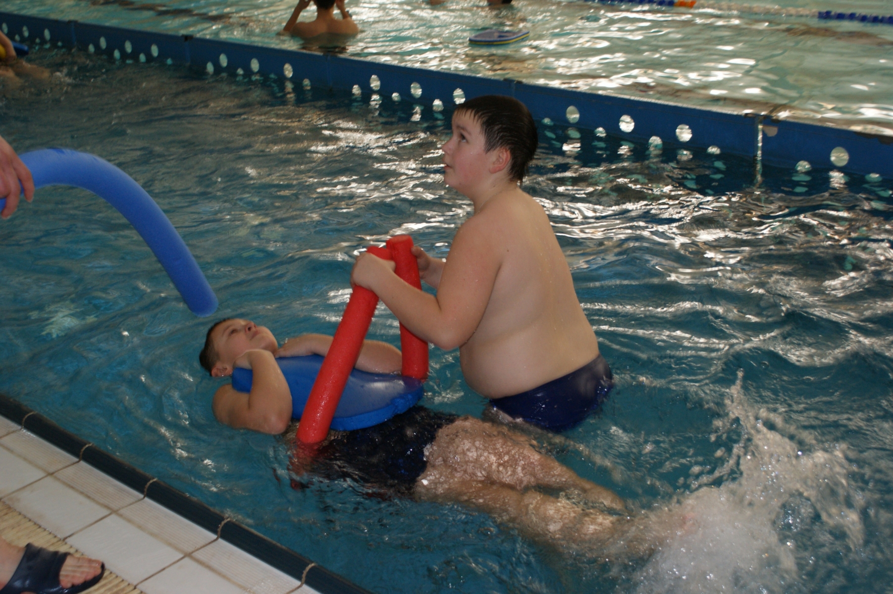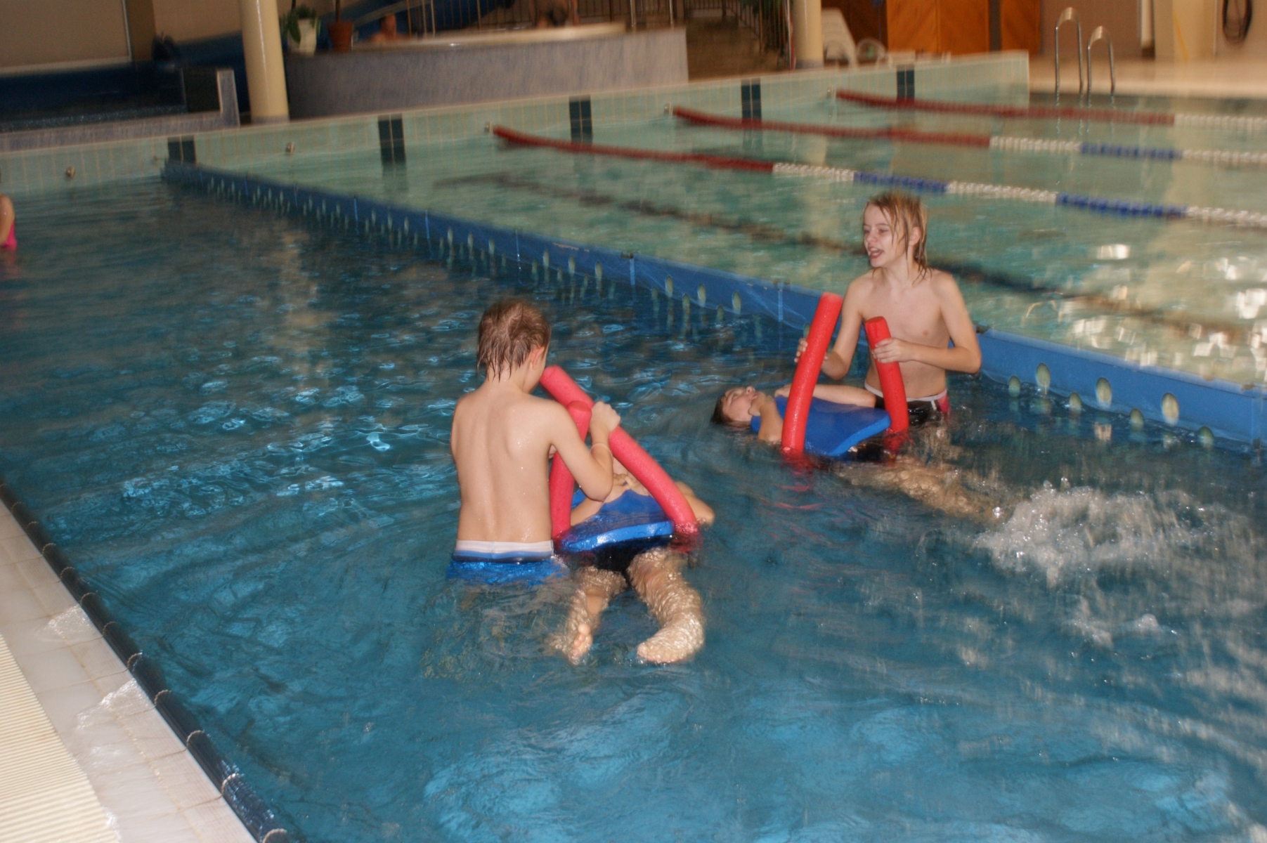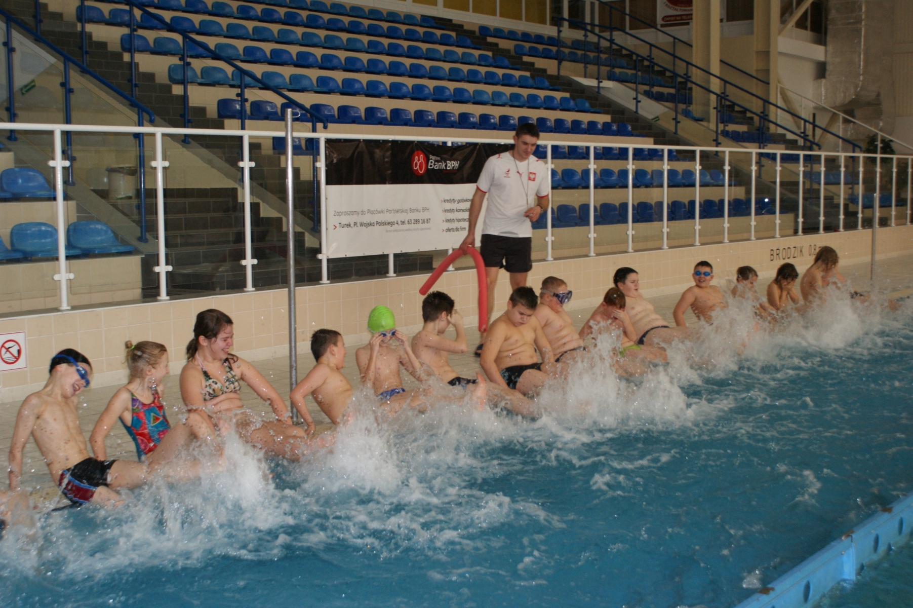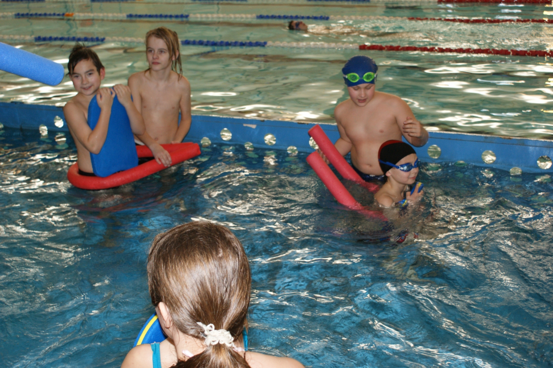 Podczas pierwszych zajęć, grupa dwudziestu pięciu uczniów poprzez gry i zabawy w wodzie zapoznała się ze środowiskiem wodnym. Nurkując, wykonując poślizgi oraz wydechy do wody, młodzi pływacy zapoznali się z przysłowiowym „abecadłem” pływania. Kolejne zajęcia opierały się na doskonaleniu pracy nóg w pływaniu stylem grzbietowym i kraulem na piersiach. Wspólna nietypowa nauka, zabawa i ruch sprawiły, że dzieci spędziły wolny czas w aktywny sposób. Cztery godziny zajęć to zaledwie „kropla w morzu” w całym cyklu nauki pływania, jednakże zauważalne postępy i zaangażowanie wśród dzieci były motorem napędowym zajęć.