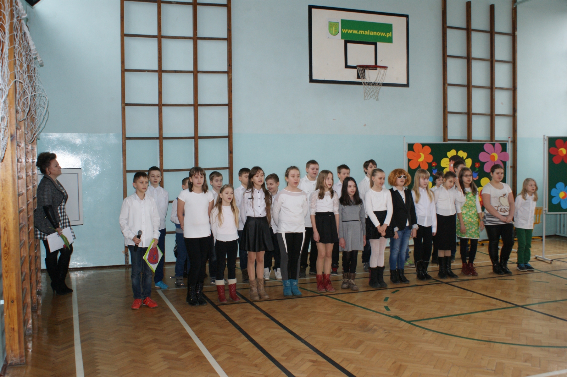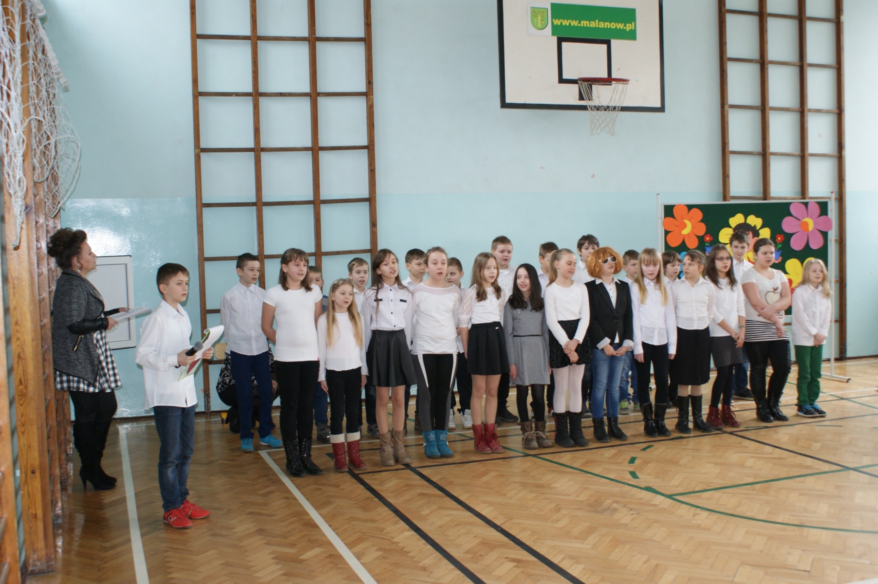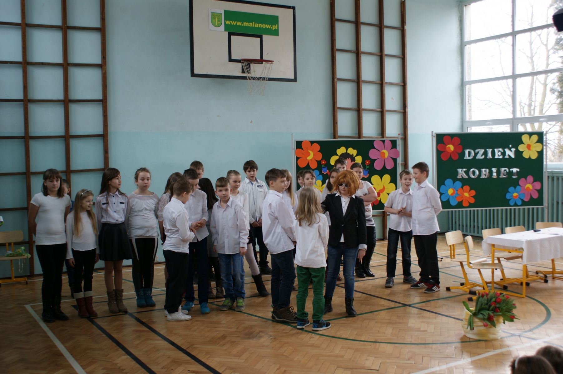 Dzień Kobiet to coroczne święto, które jest obchodzone jako wyraz szacunku dla ofiar walki o równouprawnienie. Zostało ono uchwalone w 1910 roku przez Międzynarodówkę Socjalistyczną w Kopenhadze. Wielu osobom do dnia dzisiejszego święto to kojarzy się przede wszystkim z masowym wręczaniem goździków. Tak Dzień Kobiet był obchodzony głównie w okresie PRL-u. Współcześnie z okazji Dnia Kobiet kobiety wciąż są obdarowywane kwiatami, ale coraz częściej wręcza im się także inne drobiazgi. Co więcej, z okazji tego święta organizowane są także różnego rodzaju przemówienia i przedstawienia w szkole. Dnia 5 marca 2015 roku w Szkole Podstawowej w Malanowie odbyło się uroczyste spotkanie z okazji Dnia Kobiet. Uczniowie klasy IV „b” pod opieką wychowawczyni pani Doroty Cyran, przygotowali z tej okazji apel. Tego dnia pod adresem pań padło wiele ciepłych i serdecznych słów. O wystrój sali zadbała pani Emilia Stefaniak, a nad oprawą wokalną czuwała pani Katarzyna Tomczyk. Po programie artystycznym uczniowie wręczyli paniom symboliczny kwiatek. Pan dyrektor Marek Nowicki w imieniu wszystkich mężczyzn życzył drogim paniom i dziewczętom dużo radości i uśmiechu, szczęścia, spełnienia marzeń oraz samych słonecznych dni. Na zakończenie uroczystości pani Magdalena Nowicka podsumowała Ogólnopolski Konkurs Alfik Humanistyczny.