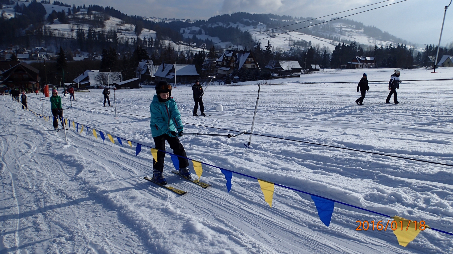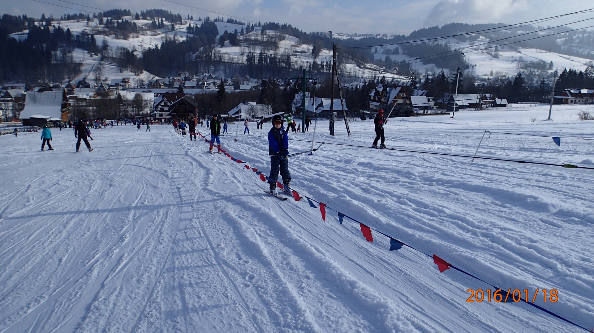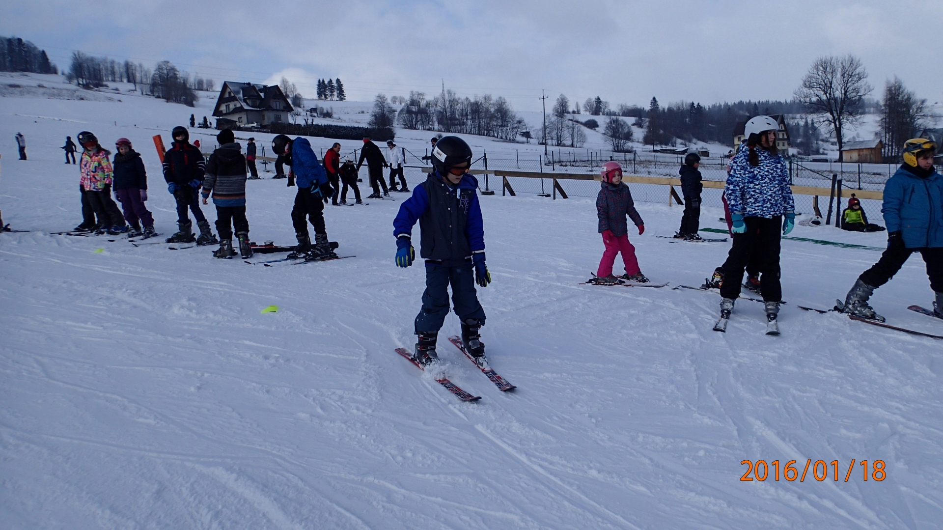 Obóz narciarski z Biurem ARKONA dla dzieci i młodzieży w Poroninie rozpoczął się w sobotę 16 stycznia 2016 roku, kiedy uczestnicy w liczbie prawie 50-ciu stawili się na zbiórkę, aby wyruszyć pod opieką kierownika i wychowawców na zimową przygodę na „Tako Land”. W pierwszy dzień wieczorem sprawdziliśmy sprzęt narciarski. Dla grupy uczestników, którzy nie mieli własnego zostały wypożyczone narty, buty i kaski . Potem odbyło się szkolenie teoretyczne dotyczące zasad zachowania się na stoku narciarskim. Omówiliśmy Dekalog FIS i zasady funkcjonowania w ośrodku.