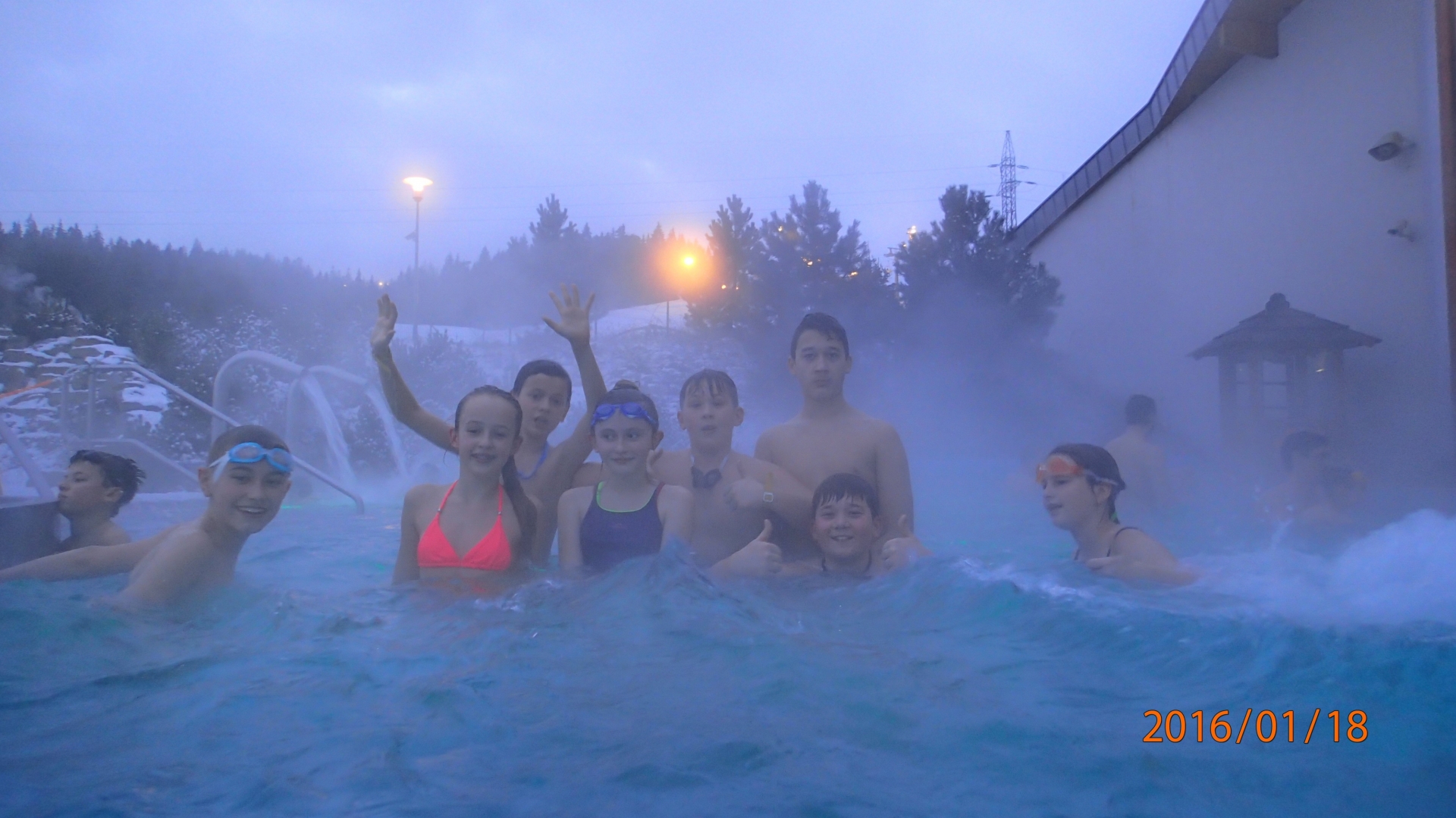 W poniedziałek mieliśmy zaplanowaną nową atrakcje Termy BANIA , jest to nowy obiekt z basenami termalnymi wśród gór – było świetnie- dwie i pół godziny używaliśmy termalnych solanek. Walczyliśmy na zjeżdżalniach i na rwącej rzece, nie obca też była nam fala.