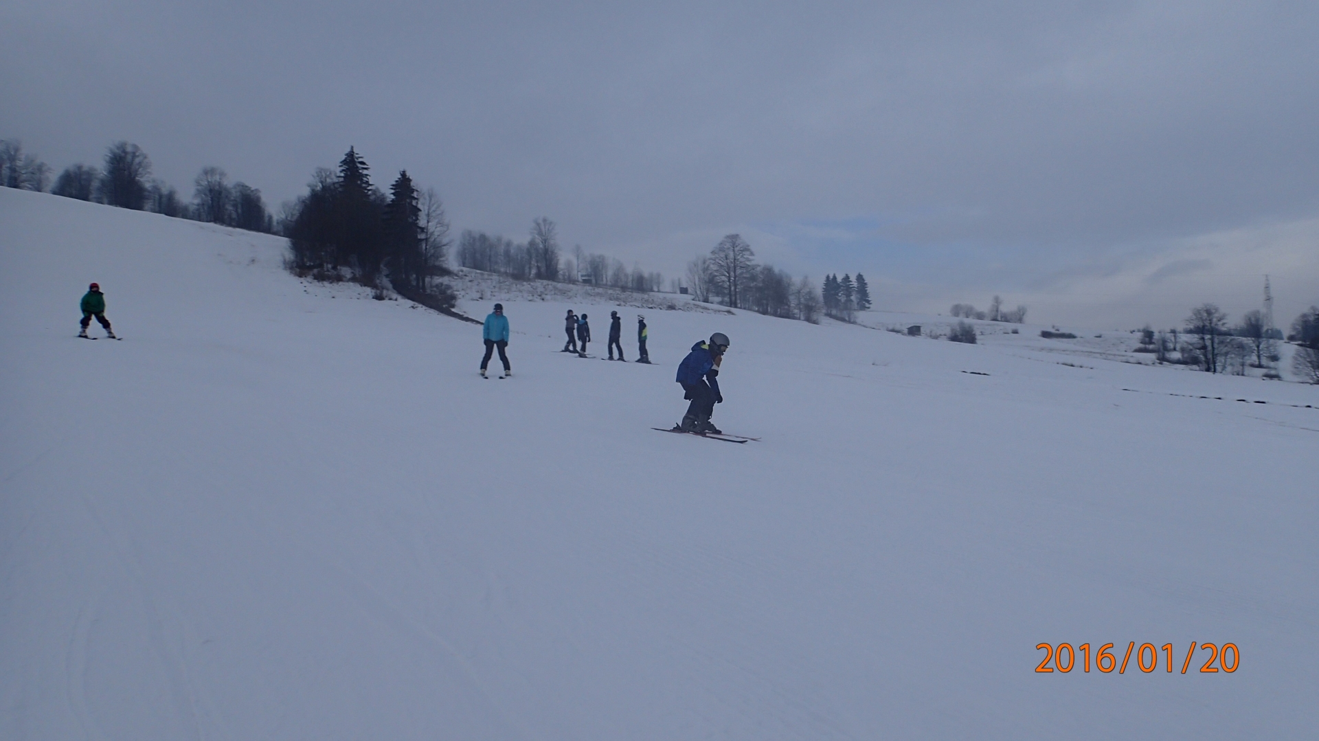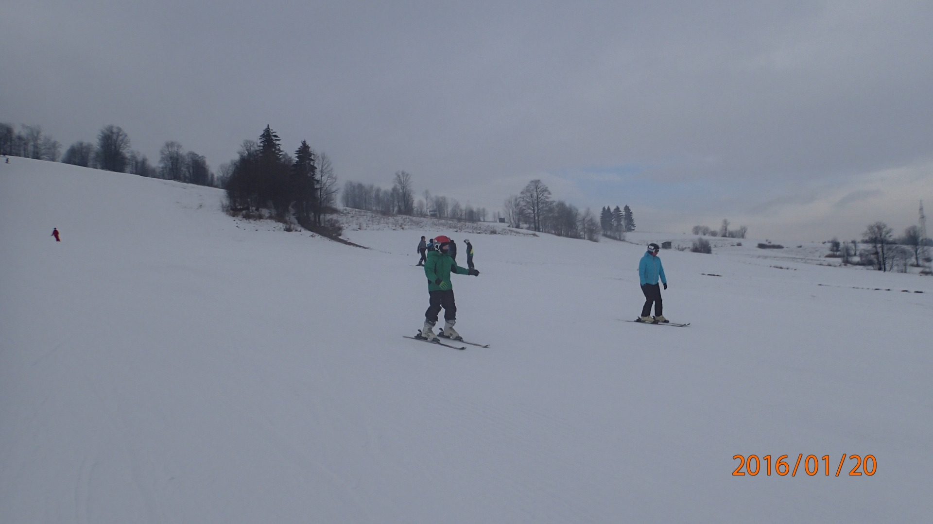 Pierwsze zjazdy narciarskie odbyły się rano w niedzielę, gdzie przy padającym śniegu, uśmiechnięci, dzielni narciarze zaczęli pierwsze szkolenie. Kilkunastu uczestników, którzy dotąd nie doznali wrażeń narciarskich rozpoczęło szkolenie od zapinania butów i nart, podchodzenia, wstawania po upadku. Potem już były zjazdy, wpierw pod asekuracją instruktora potem samodzielnie. Byli uczestnicy, którzy rano nie potrafili stać na nartach, a po południu już samodzielnie wjechali wyciągiem i zjechali z najkrótszego stoku.