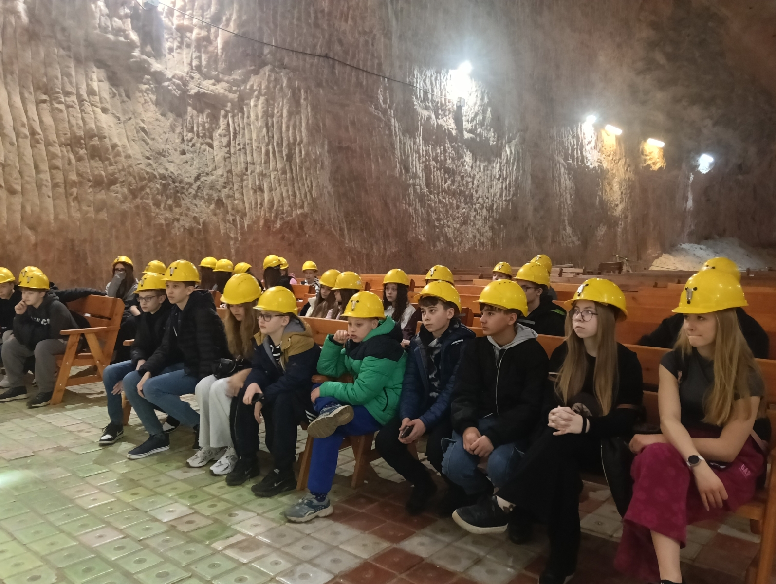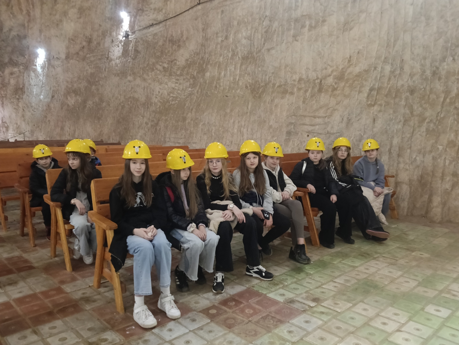 Uczniowie klas szóstych przeżyli niezapomnianą przygodę, ponieważ dnia 12 marca 2026 r. pojechali na wycieczkę do Kopalni Soli w Kłodawie. Jest to czynna kopalnia, co nadaje zwiedzaniu autentyczny charakter. Pierwszym punktem było spotkanie z przewodnikiem, który już na samym wstępie opowiedział nam historię powstania kopalni, jej unikatowość w skali światowej, ale przede wszystkim objaśnił zasady zachowania bezpieczeństwa podczas zwiedzania najgłębiej położonej podziemnej trasy turystycznej na świecie.