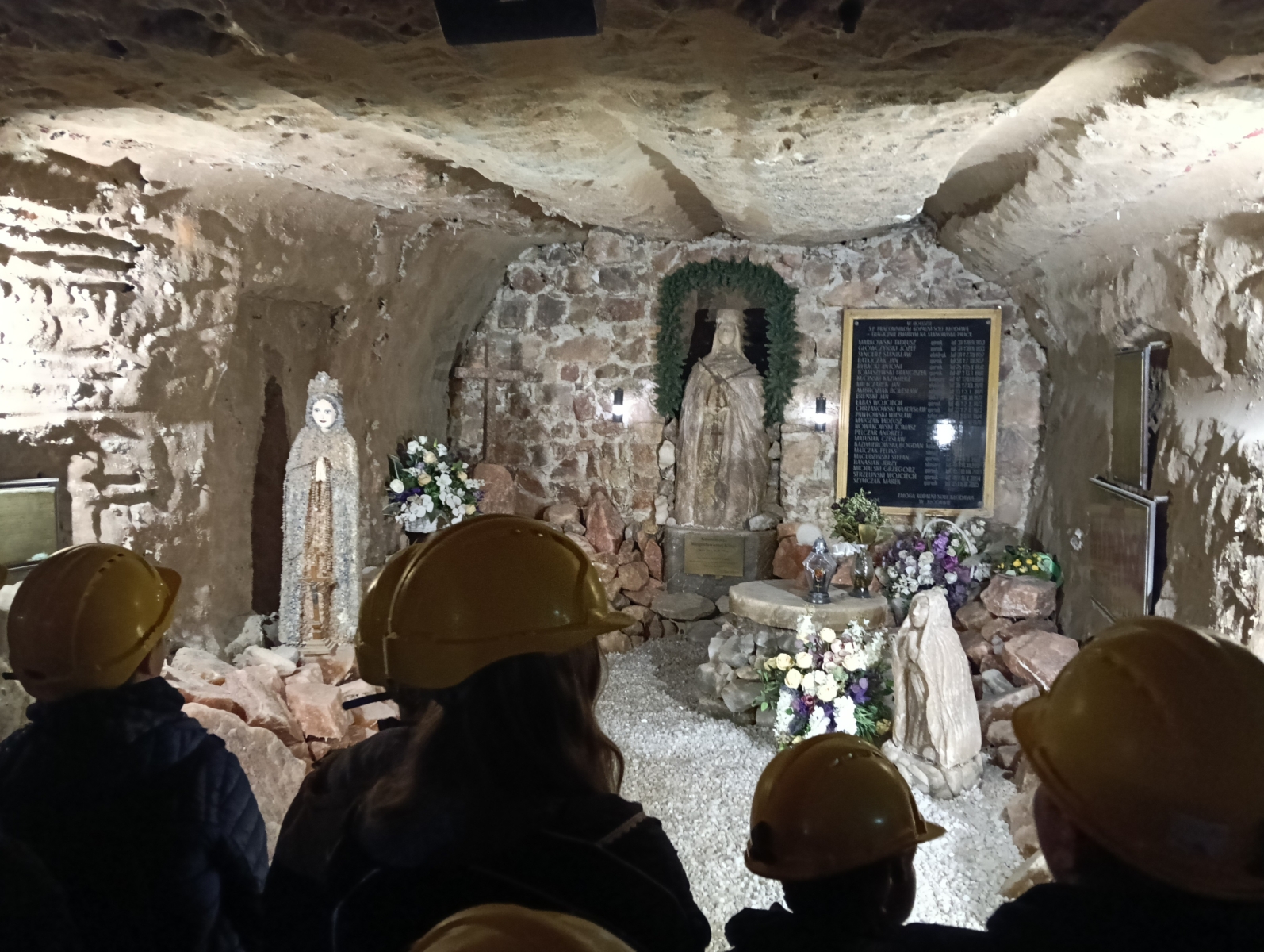 Zaopatrzeni w kaski, ruszyliśmy do windy górniczej "Michał", której zjazd w dół, na poziom 600 metrów pod ziemię, wywołał w nas niemałe dreszcze. Pierwszym punktem naszego podziemnego spaceru była wizyta w kaplicy Św. Kingi, patronki górników solnych, XIII-wiecznej księżnej węgierskiej i polskiej. Według legendy to ona sprowadziła na polskie ziemie węgierskich górników i przyczyniła się do odkrycia złóż soli w Wieliczce. Podczas zwiedzania podziwialiśmy imponujące formacje geologiczne, olbrzymie komnaty solne, pokłady rzadkiej, różowej soli, podziemne wyrobiska, a nawet Jaskinię Drakuli.