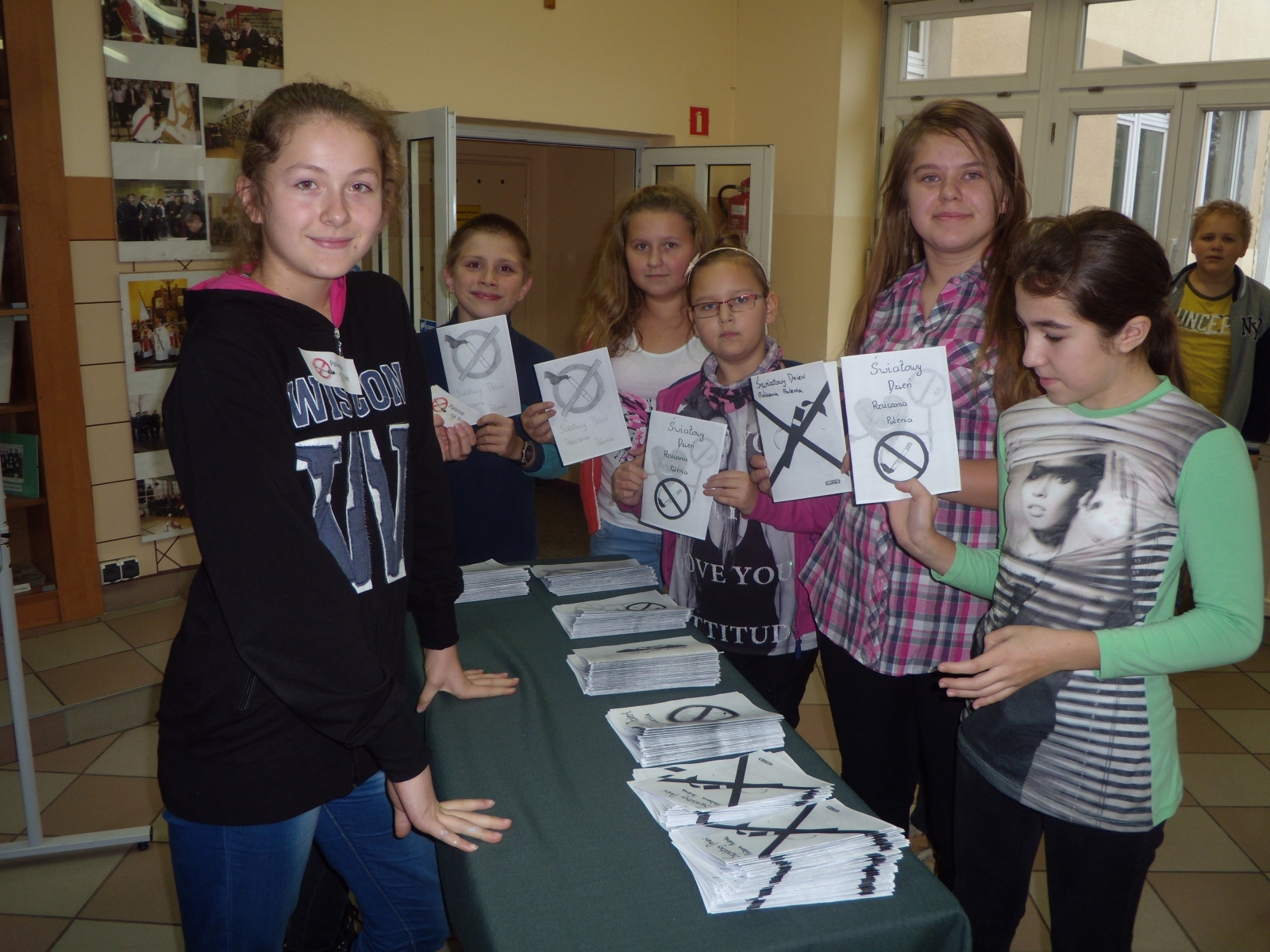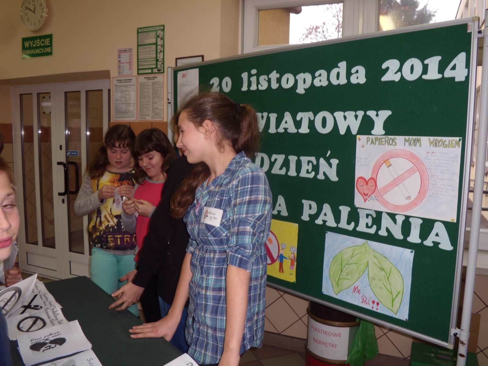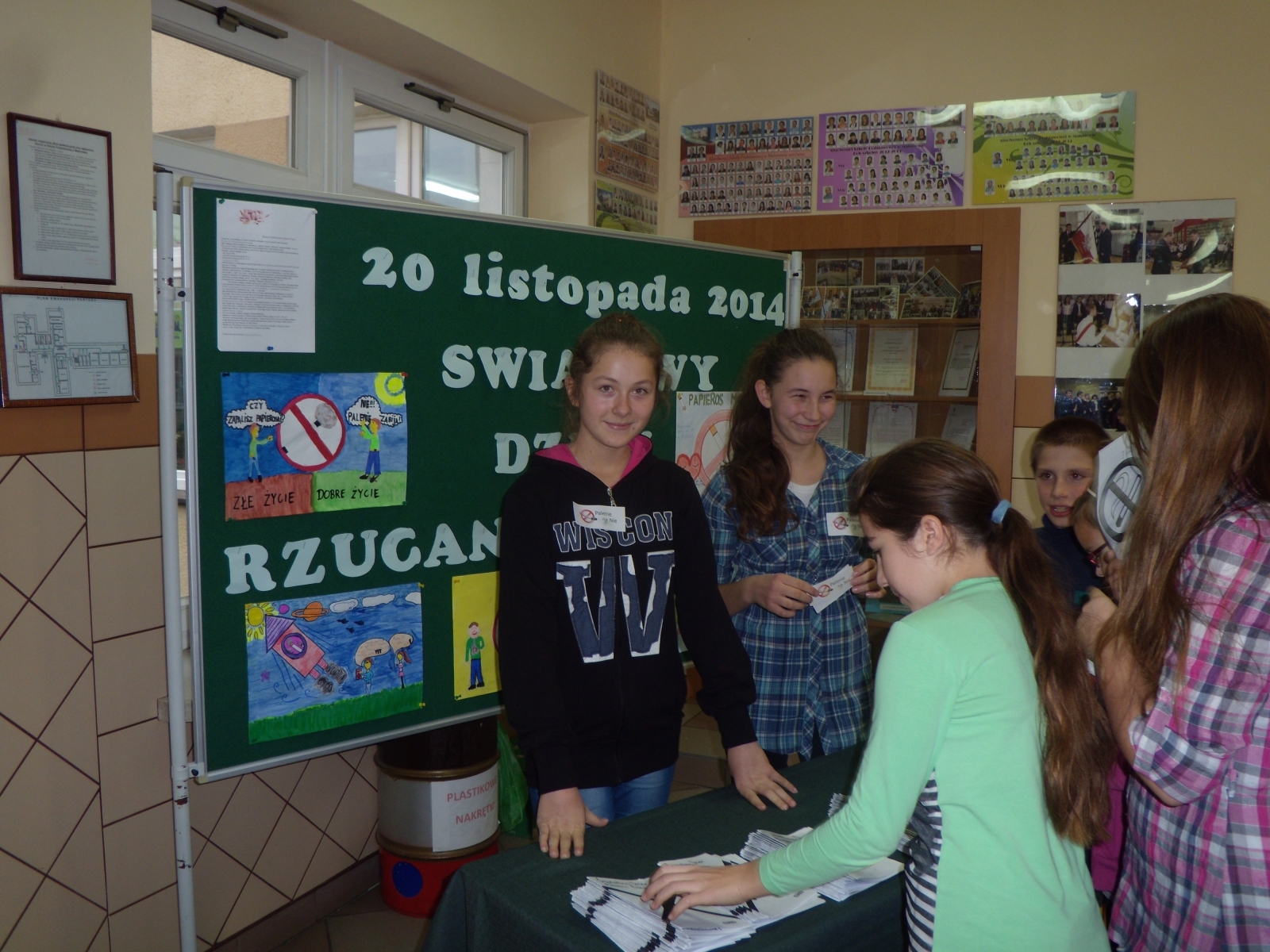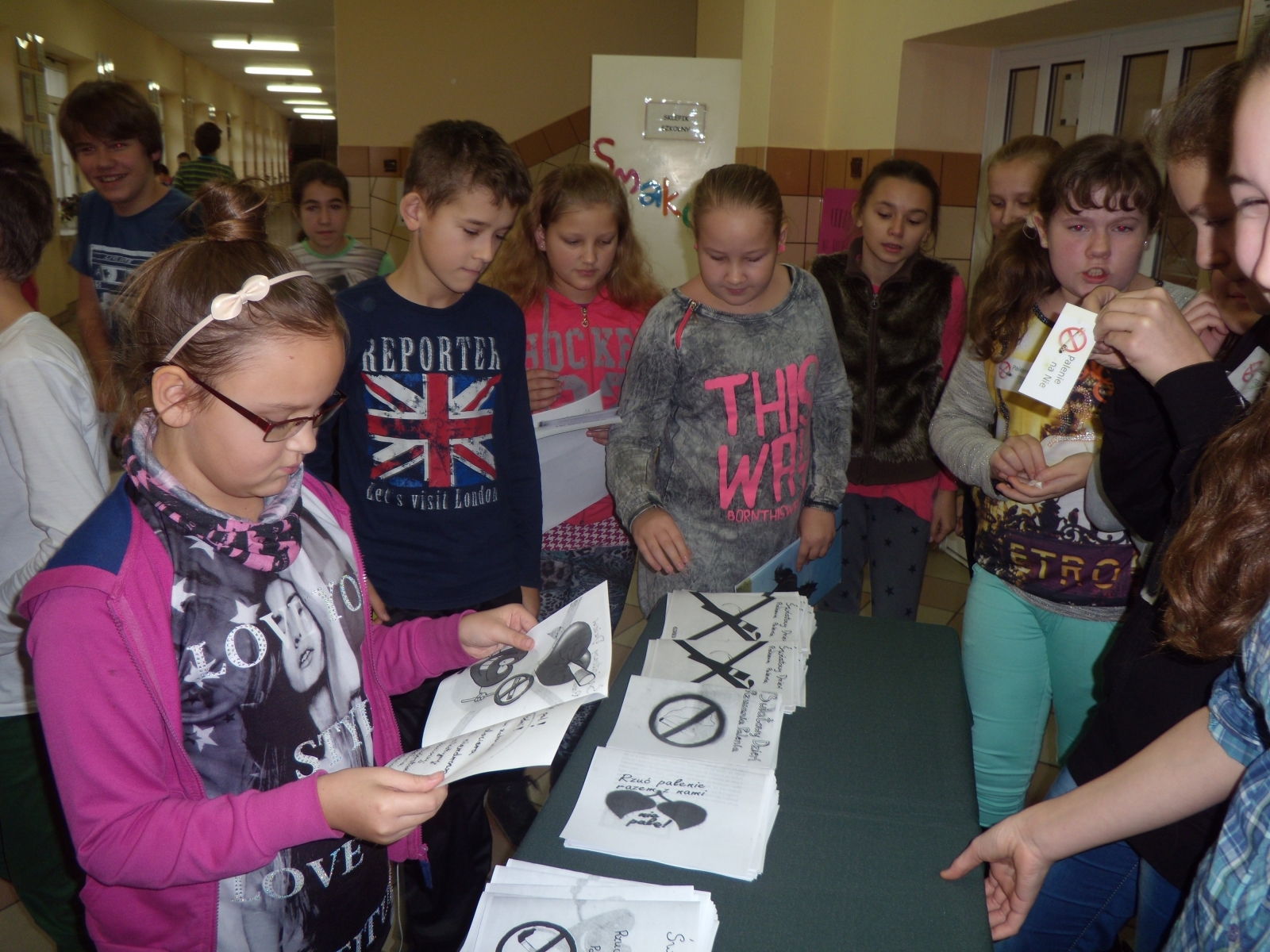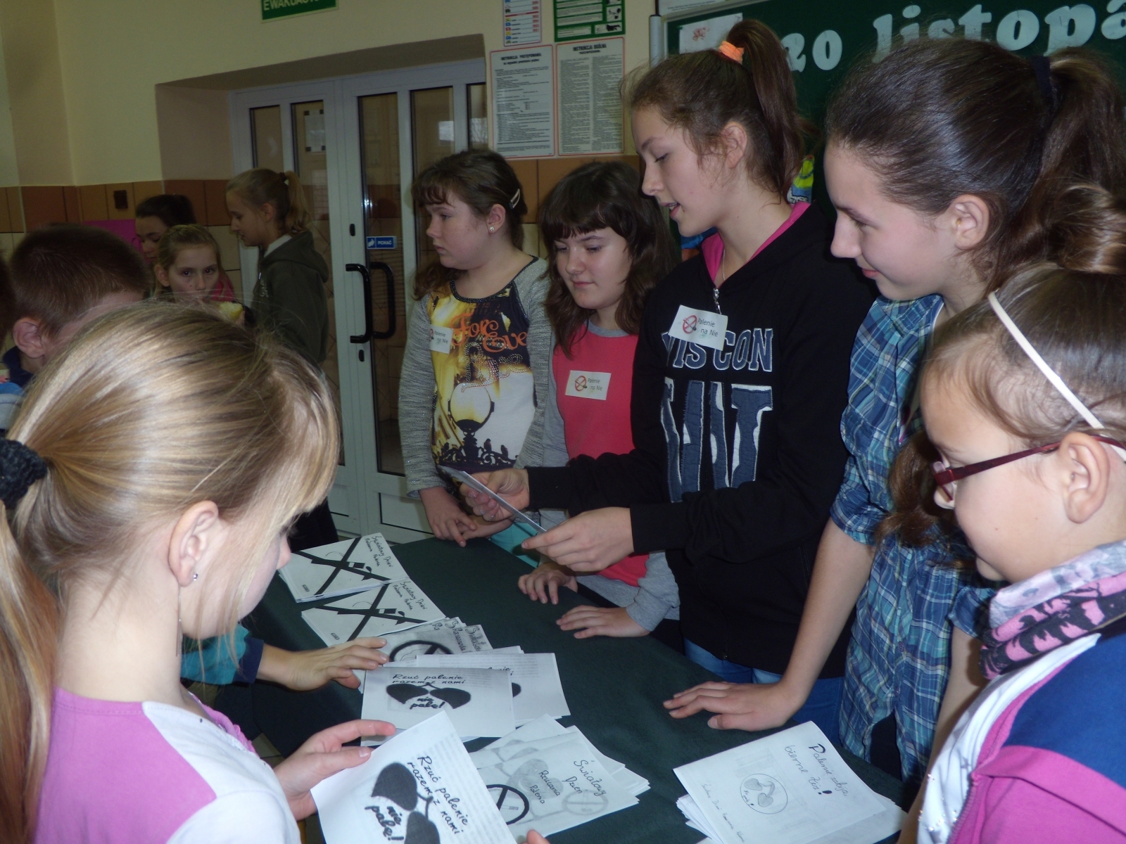 - rozdawanie ulotek wykonanych przez uczniów klas szóstych na temat szkodliwości palenia tytoniu