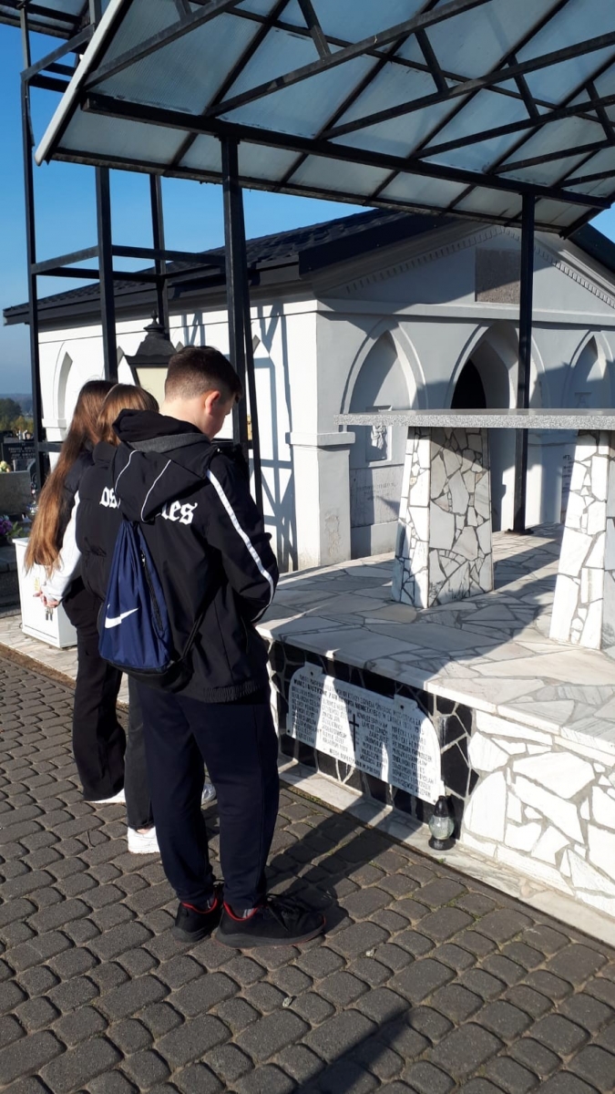 Okres przed świętem zmarłych, to odpowiedni moment na wspomnienie tych, którzy odeszli, czas na rozmowę dotyczącą szacunku dla nich. Taki cel przyświecał uczniom klasy VIIIb , którzy pod opieką wychowawcy odwiedzili miejsca spoczynku swoich bliskich na cmentarzu parafialnym w Malanowie.