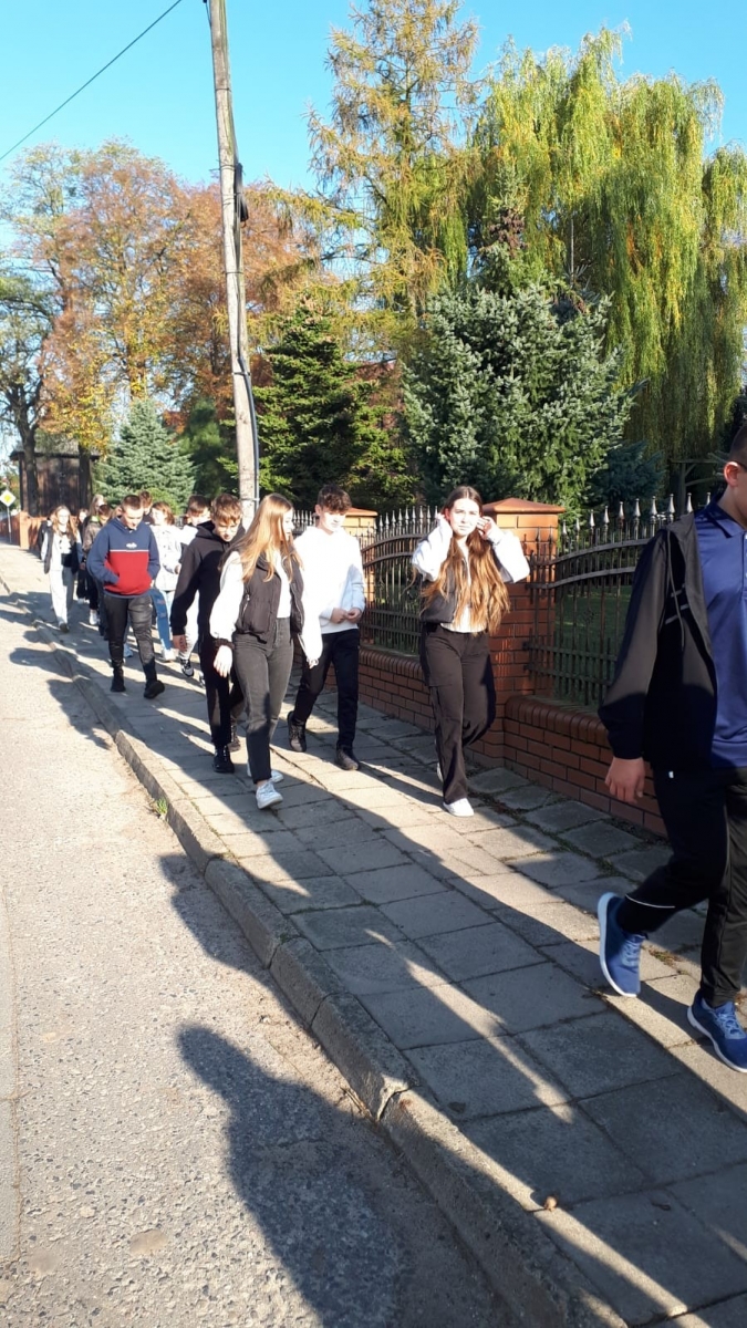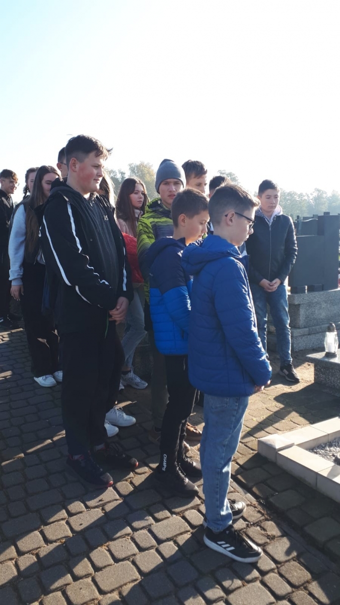 Spacer alejkami cmentarza parafialnego był dla uczniów głębokim przeżyciem, wprowadził w nastrój refleksji, zadumy oraz wspomnień o osobach bliskich, których już niestety z nami nie ma. Uczniowie pomodlili się i zapalili znicze na rodzinnych grobach.