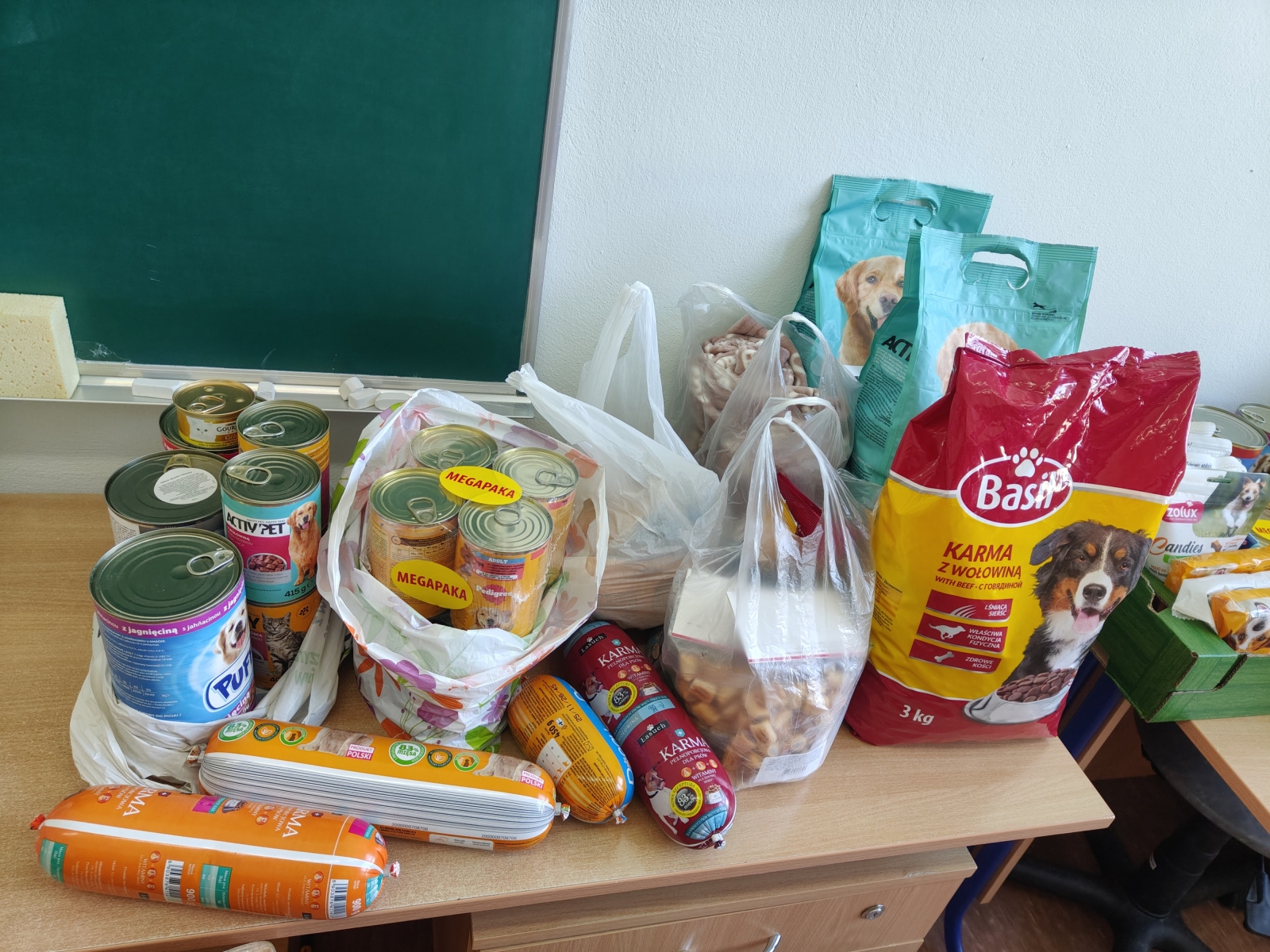 W ostatnich dniach na terenie naszej szkoły odbyła się zbiórka karmy dla psów i kotów przebywających w schronisku w Turku. Akcja miała na celu wsparcie czworonogów, które każdego dnia czekają na nowy, kochający dom oraz na pomoc ludzi o wielkich sercach. Zbiórka spotkała się z dużym zainteresowaniem i pozytywnym odzewem. Dzięki zaangażowaniu uczniów udało się zebrać znaczną ilość suchej i mokrej karmy, a także przysmaków dla psów i kotów. Każdy przekazany dar ma ogromne znaczenie, ponieważ pomaga zapewnić zwierzętom odpowiednie wyżywienie i lepsze warunki bytowe.