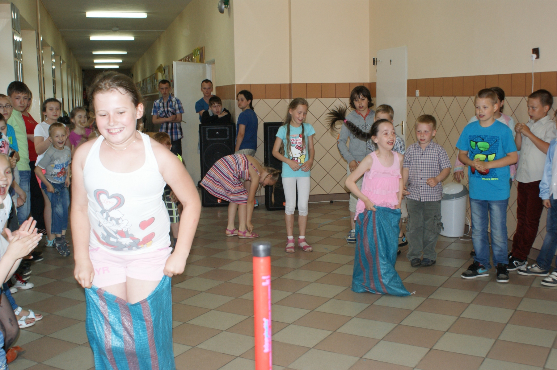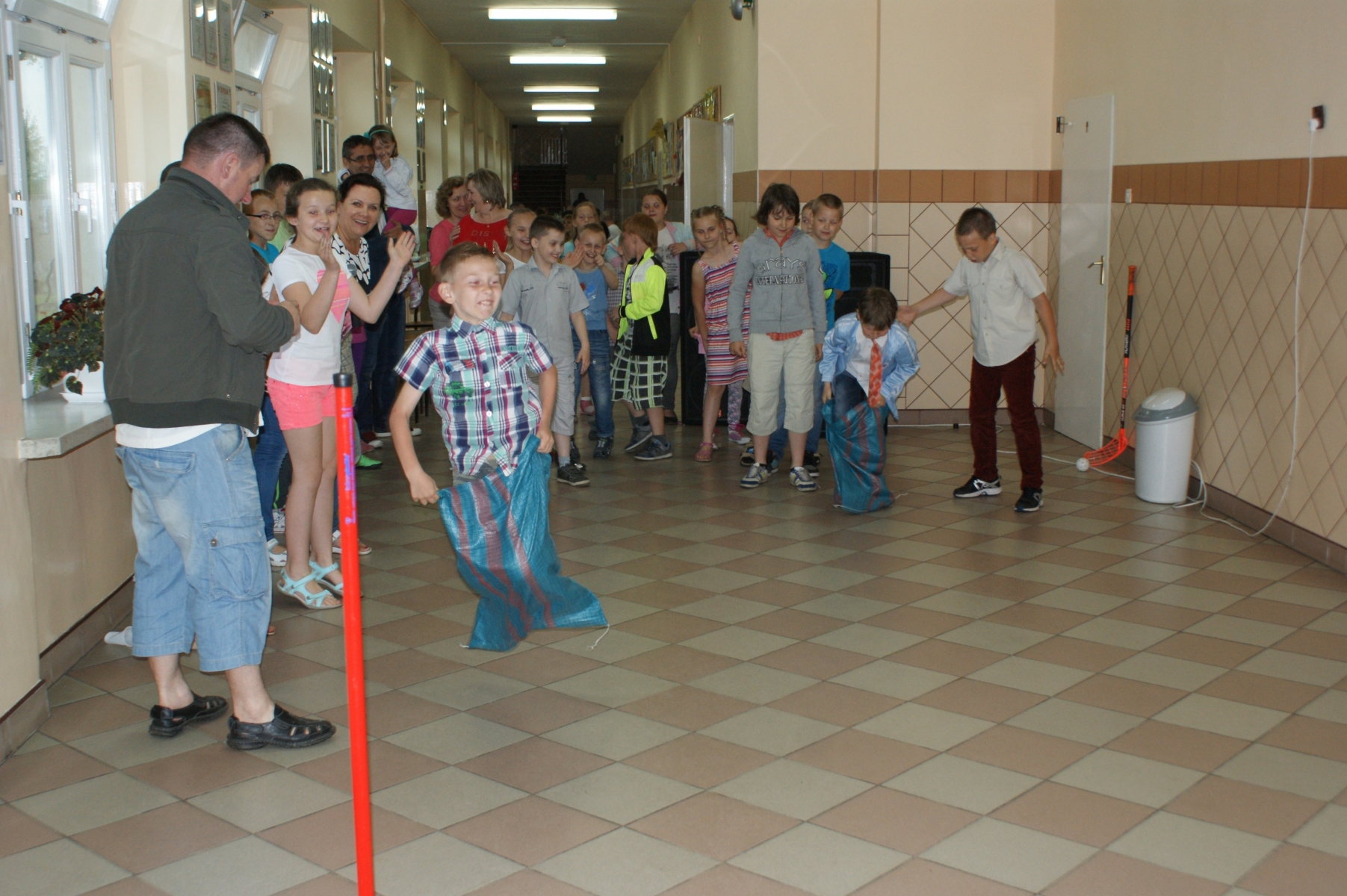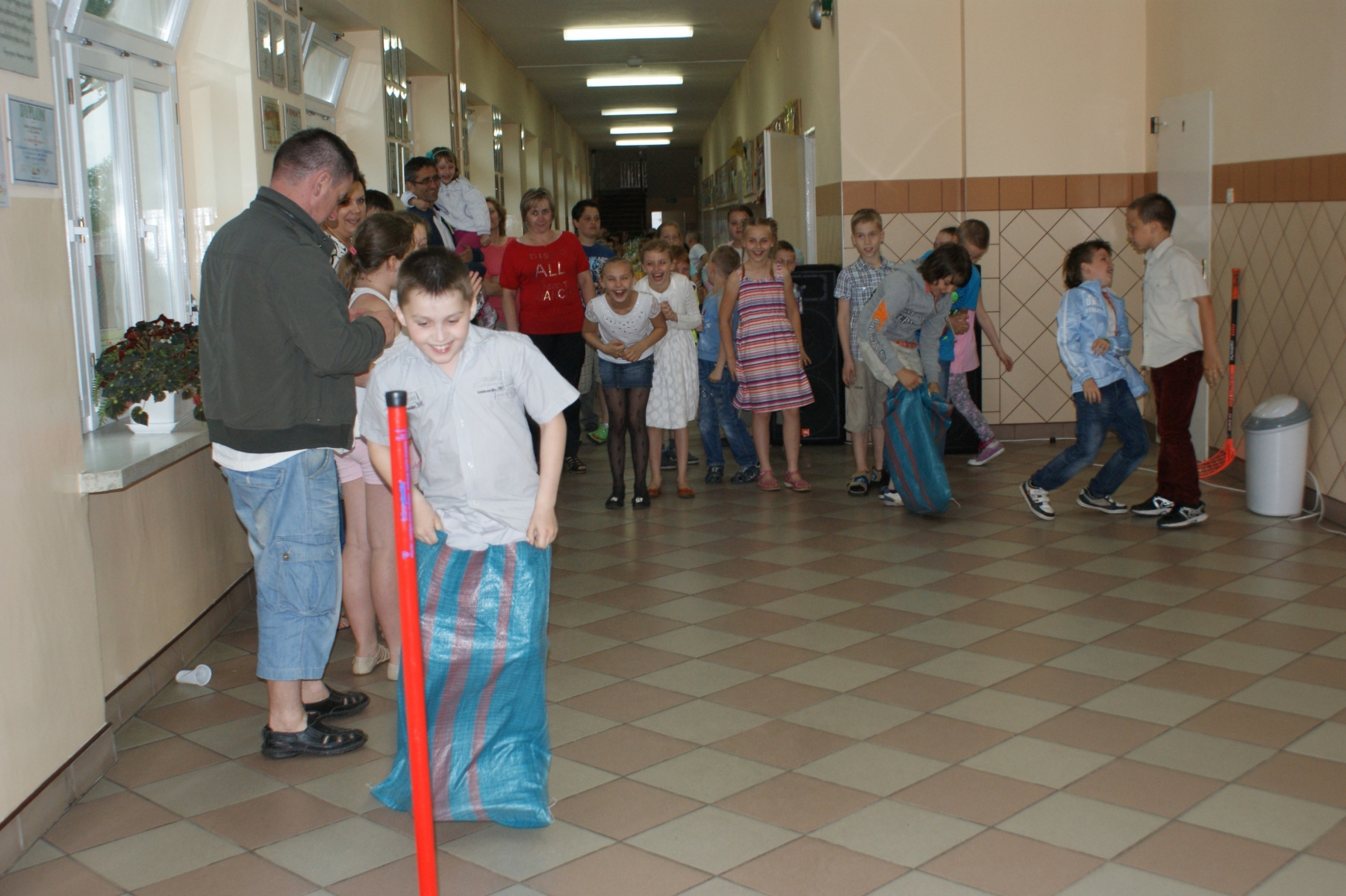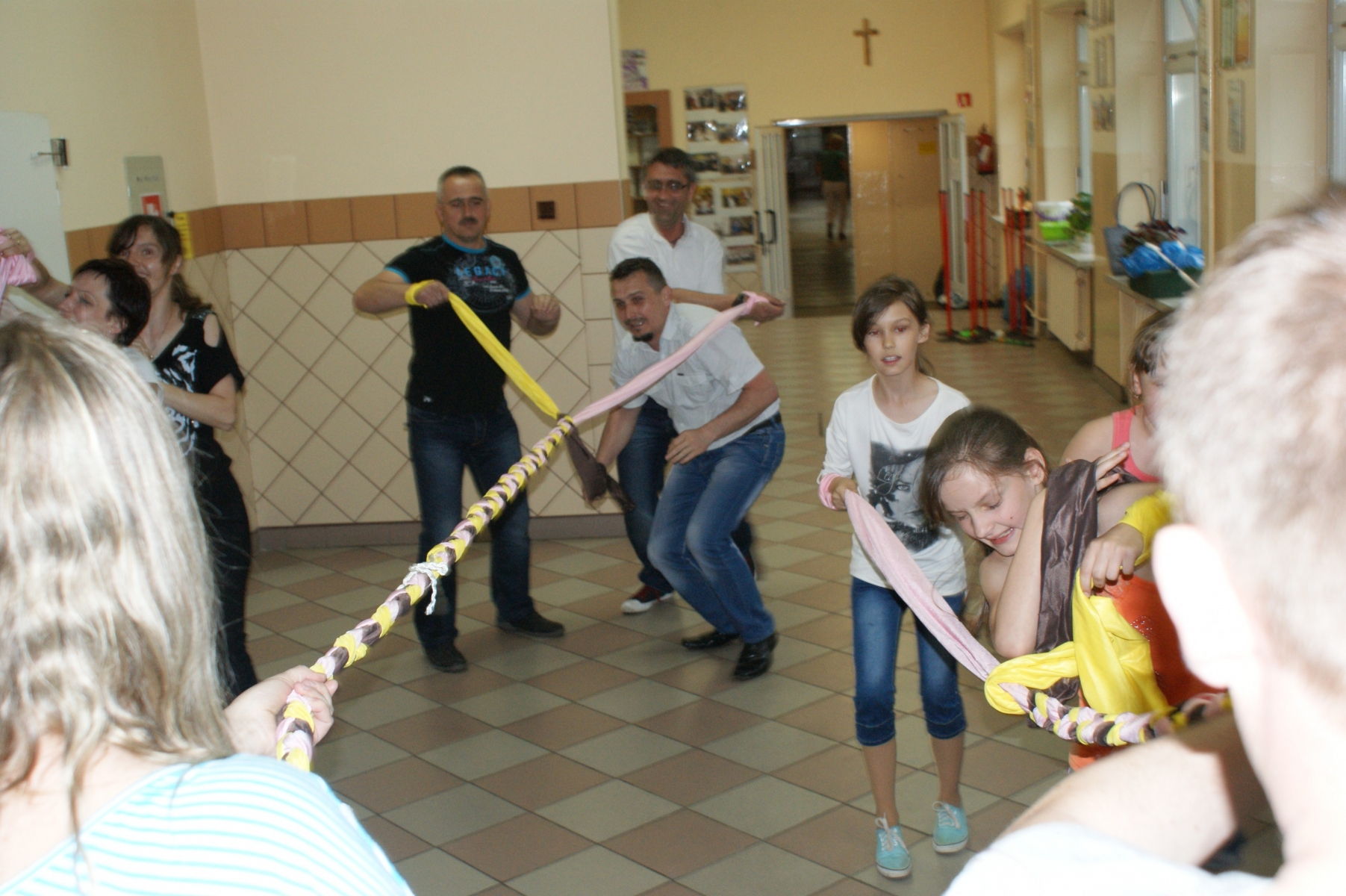 Smaczny poczęstunek, który przygotowali Rodzice udało się zjeść na dziedzińcu szkolnym, ale deszcz sprawił, że szybko trzeba było przenosić się do szkoły. Niesprzyjająca aura nie zepsuła jednak dalszej części uroczystości. Wspólne zabawy, konkurencje i tańce sprawiły wszystkim sporo radości. Piknik odbył się dzięki sprawnej organizacji i dużemu zaangażowaniu Rodziców, których pogoda nie zraziła i utrzymali wesoły nastrój do końca. To był emocjonujący, pełen wrażeń i dobrej zabawy dzień.