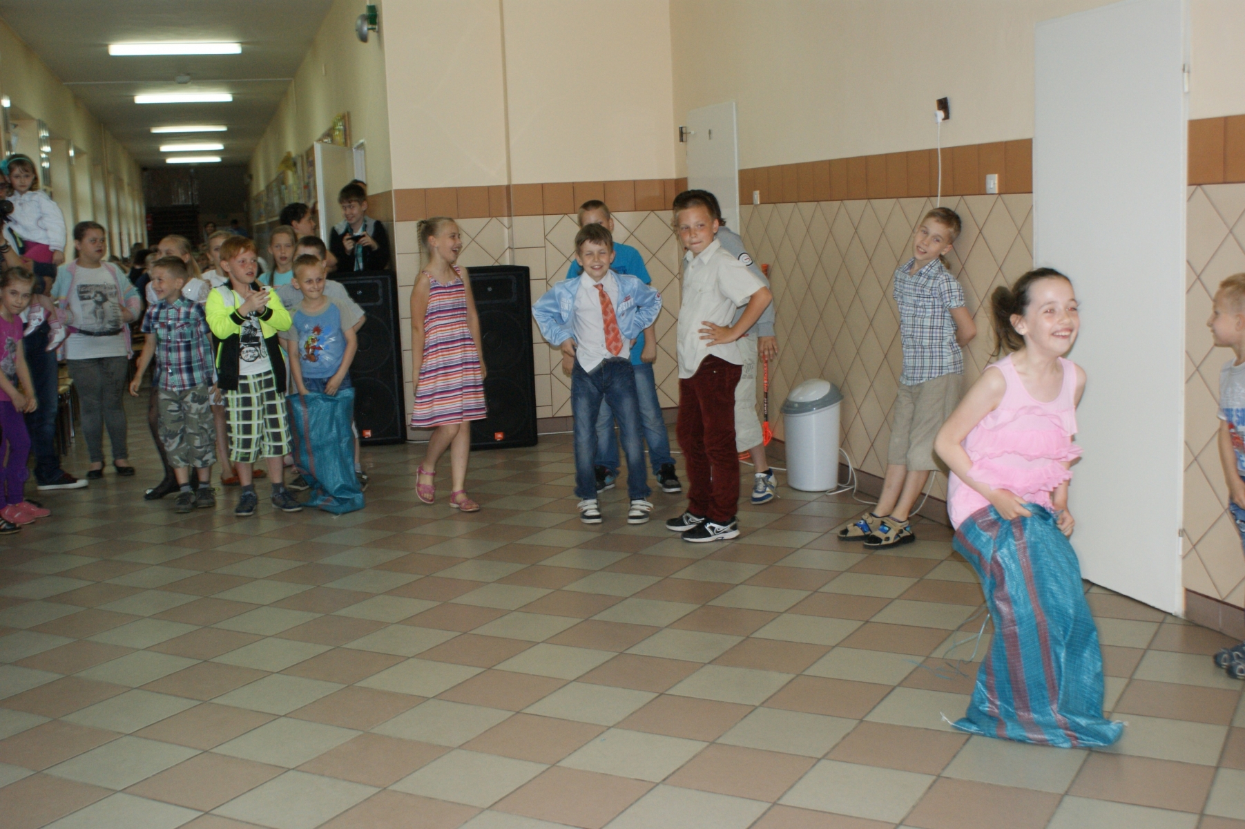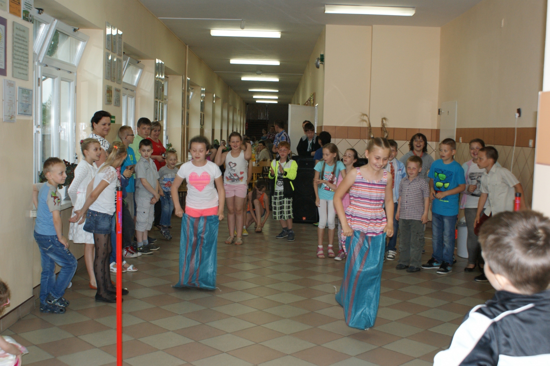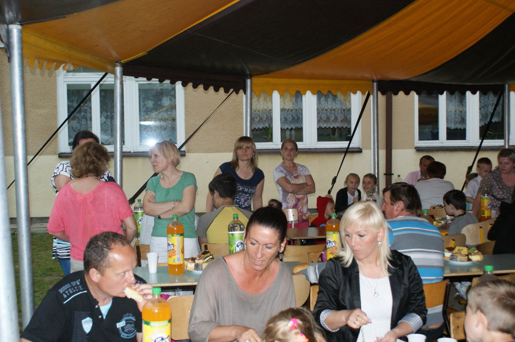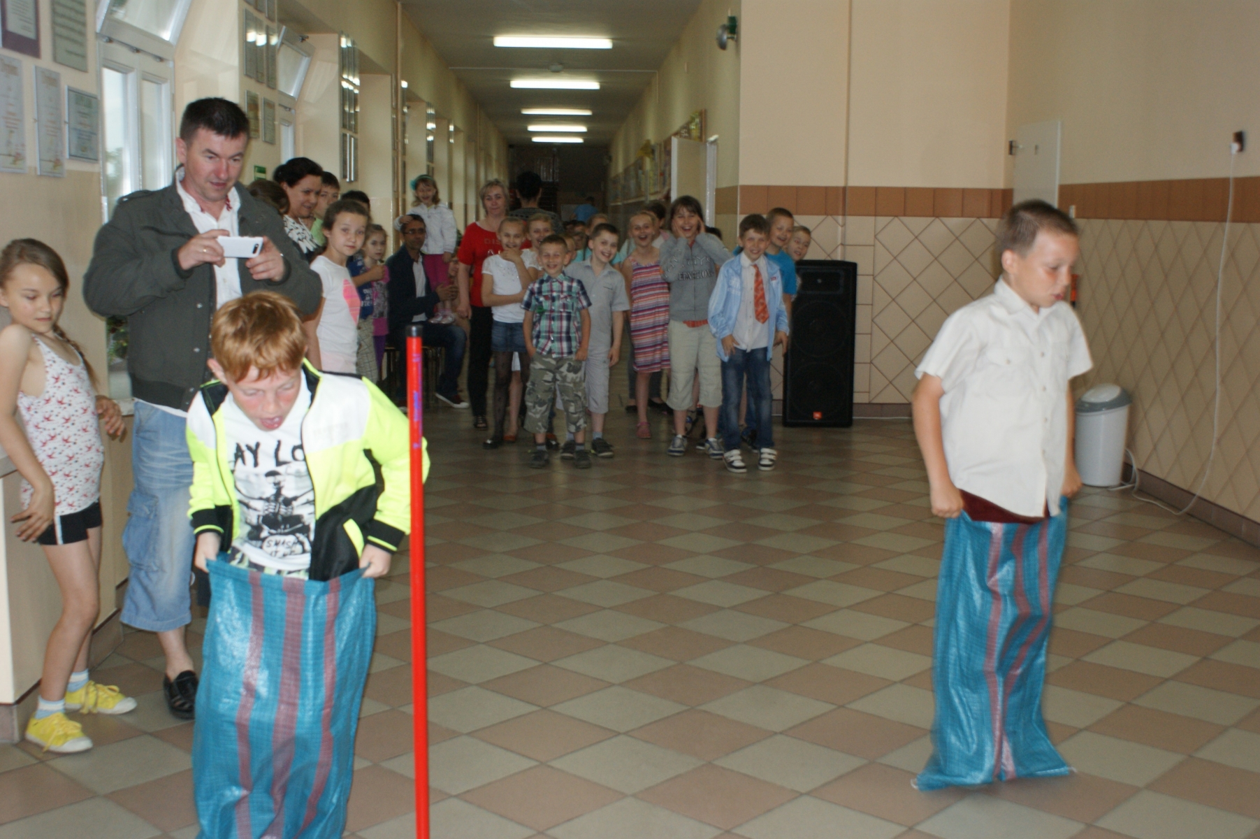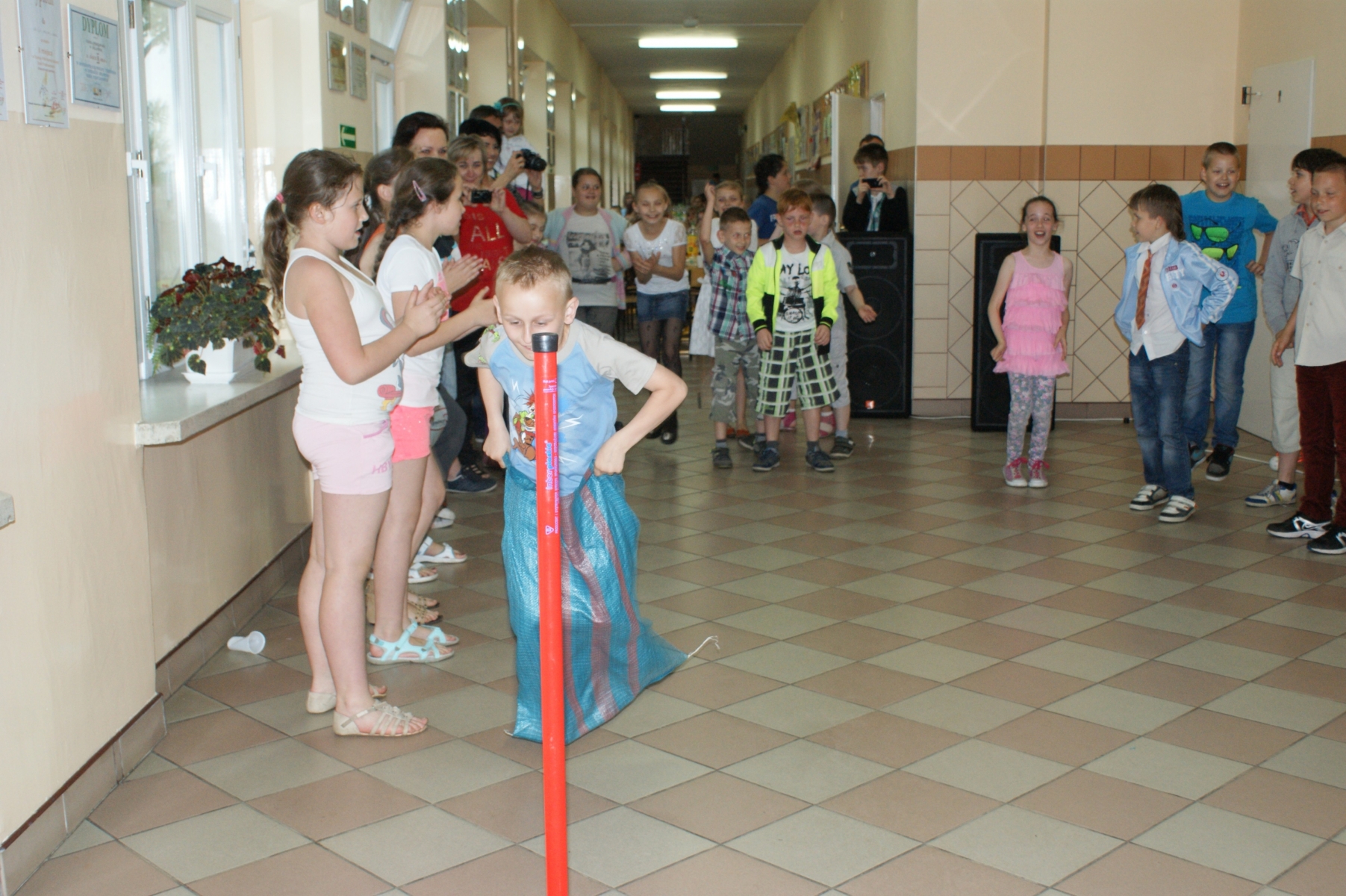 Smaczny poczęstunek, który przygotowali Rodzice udało się zjeść na dziedzińcu szkolnym, ale deszcz sprawił, że szybko trzeba było przenosić się do szkoły. Niesprzyjająca aura nie zepsuła jednak dalszej części uroczystości. Wspólne zabawy, konkurencje i tańce sprawiły wszystkim sporo radości. Piknik odbył się dzięki sprawnej organizacji i dużemu zaangażowaniu Rodziców, których pogoda nie zraziła i utrzymali wesoły nastrój do końca. To był emocjonujący, pełen wrażeń i dobrej zabawy dzień.