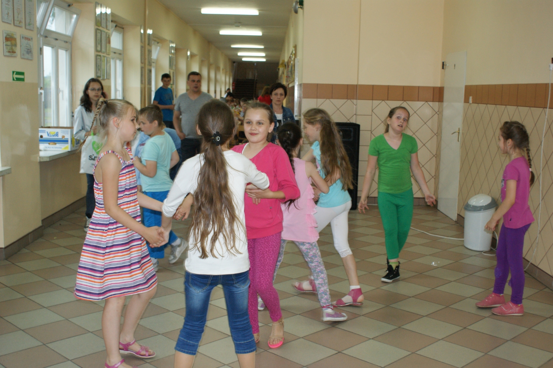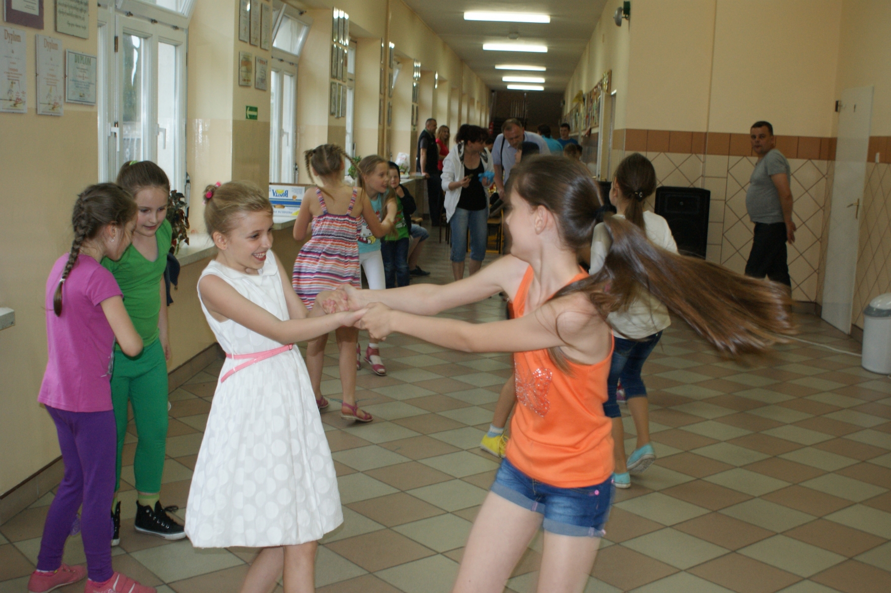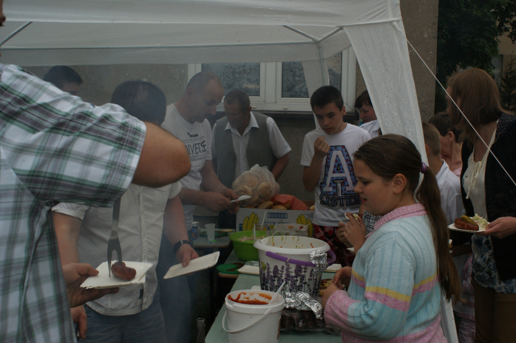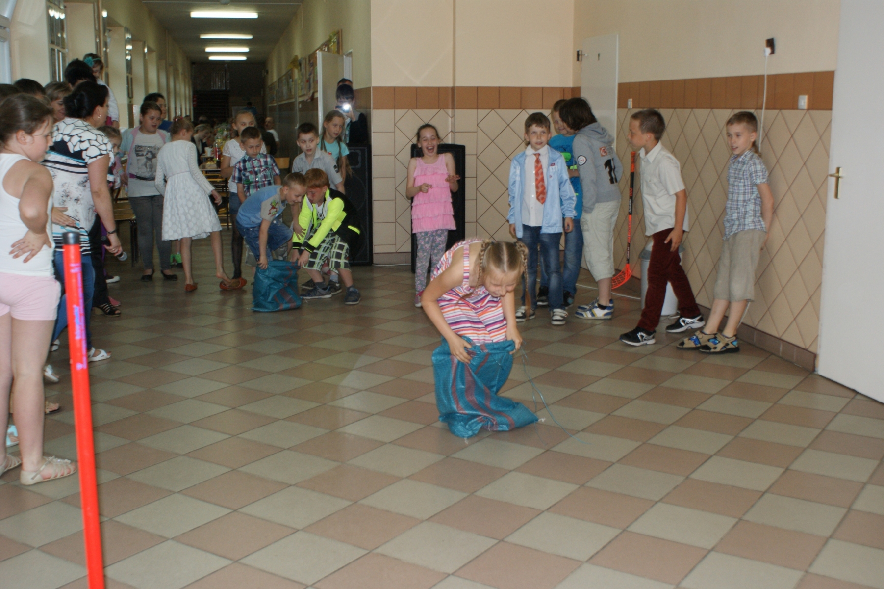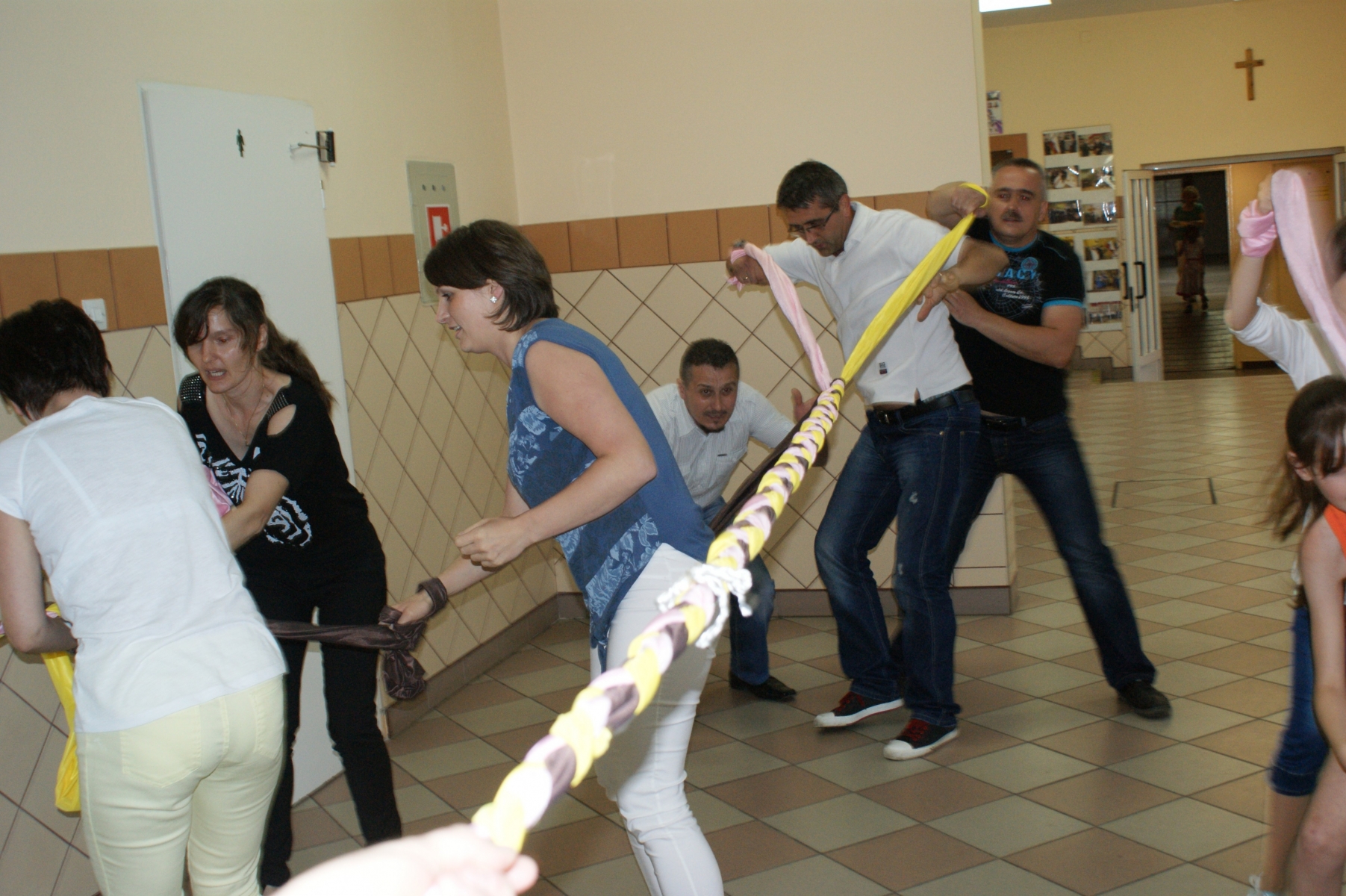 Smaczny poczęstunek, który przygotowali Rodzice udało się zjeść na dziedzińcu szkolnym, ale deszcz sprawił, że szybko trzeba było przenosić się do szkoły. Niesprzyjająca aura nie zepsuła jednak dalszej części uroczystości. Wspólne zabawy, konkurencje i tańce sprawiły wszystkim sporo radości. Piknik odbył się dzięki sprawnej organizacji i dużemu zaangażowaniu Rodziców, których pogoda nie zraziła i utrzymali wesoły nastrój do końca. To był emocjonujący, pełen wrażeń i dobrej zabawy dzień.