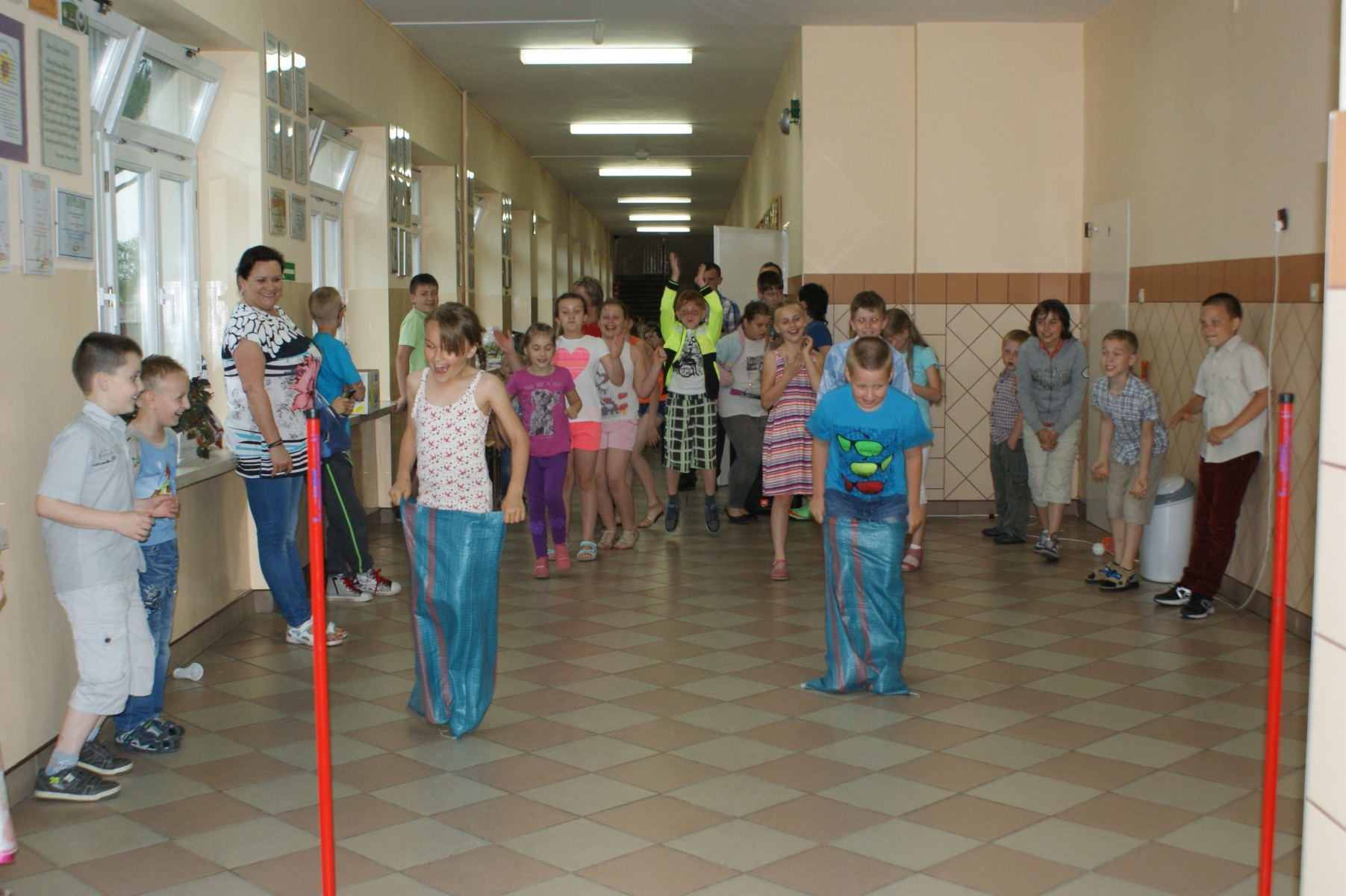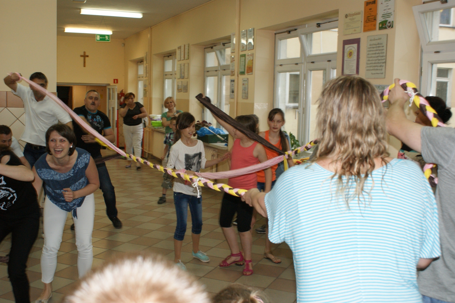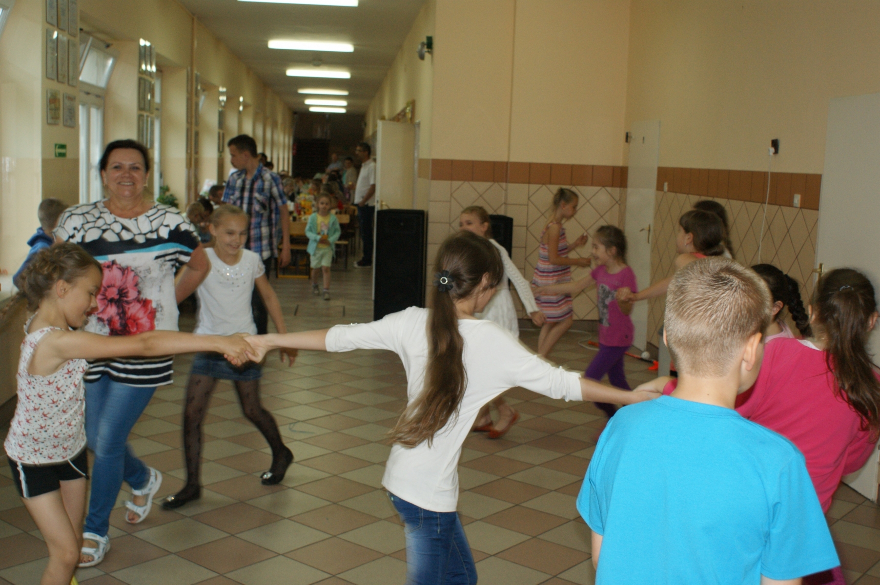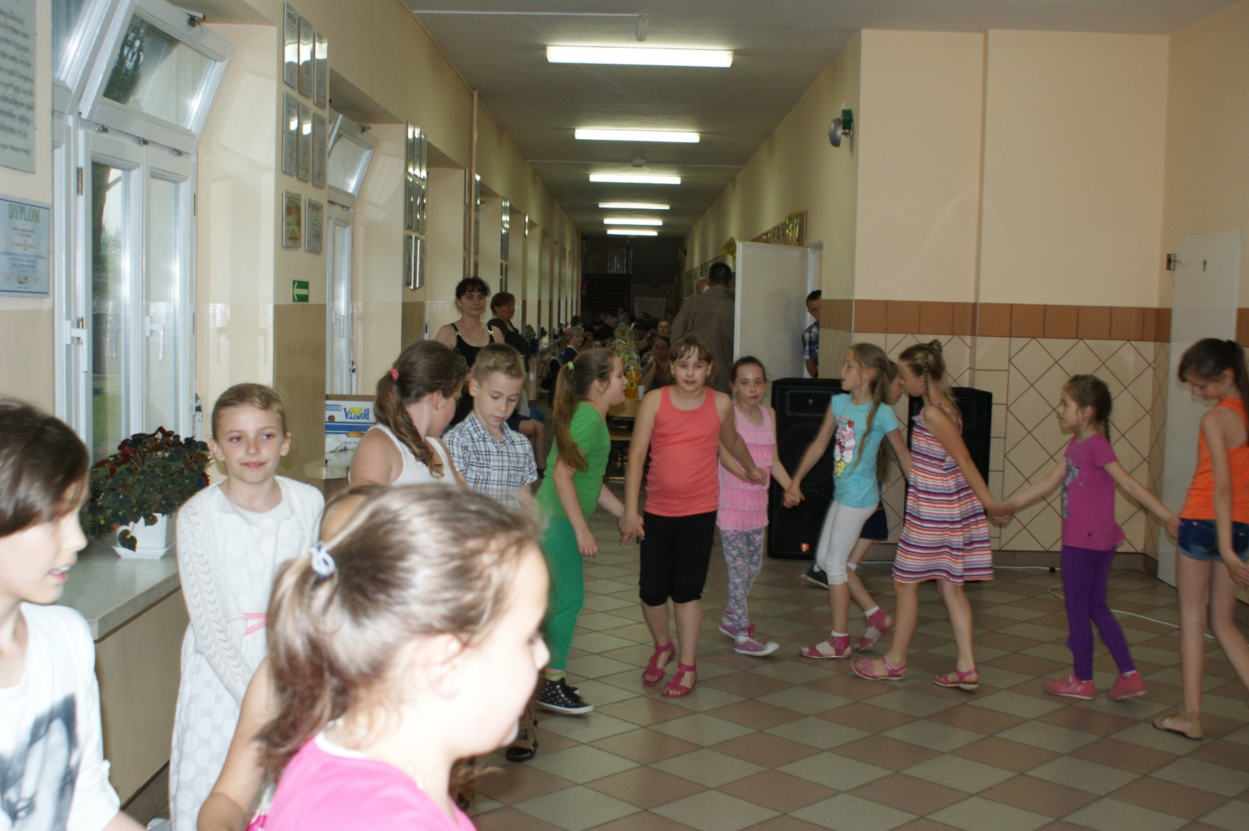 Smaczny poczęstunek, który przygotowali Rodzice udało się zjeść na dziedzińcu szkolnym, ale deszcz sprawił, że szybko trzeba było przenosić się do szkoły. Niesprzyjająca aura nie zepsuła jednak dalszej części uroczystości. Wspólne zabawy, konkurencje i tańce sprawiły wszystkim sporo radości. Piknik odbył się dzięki sprawnej organizacji i dużemu zaangażowaniu Rodziców, których pogoda nie zraziła i utrzymali wesoły nastrój do końca. To był emocjonujący, pełen wrażeń i dobrej zabawy dzień.