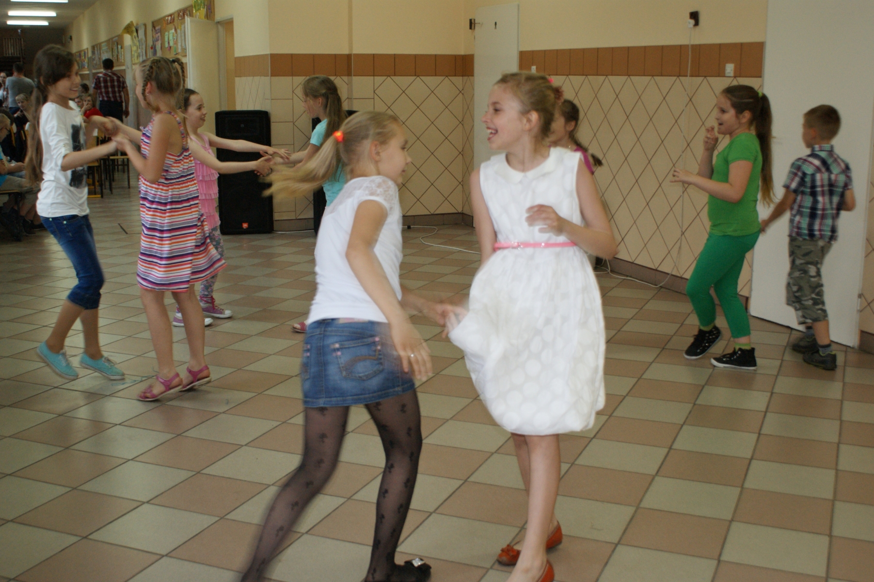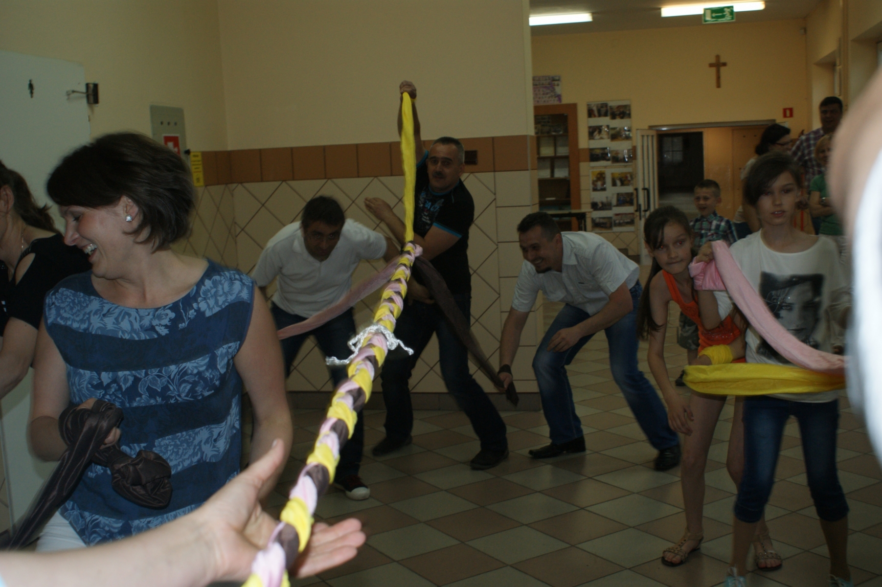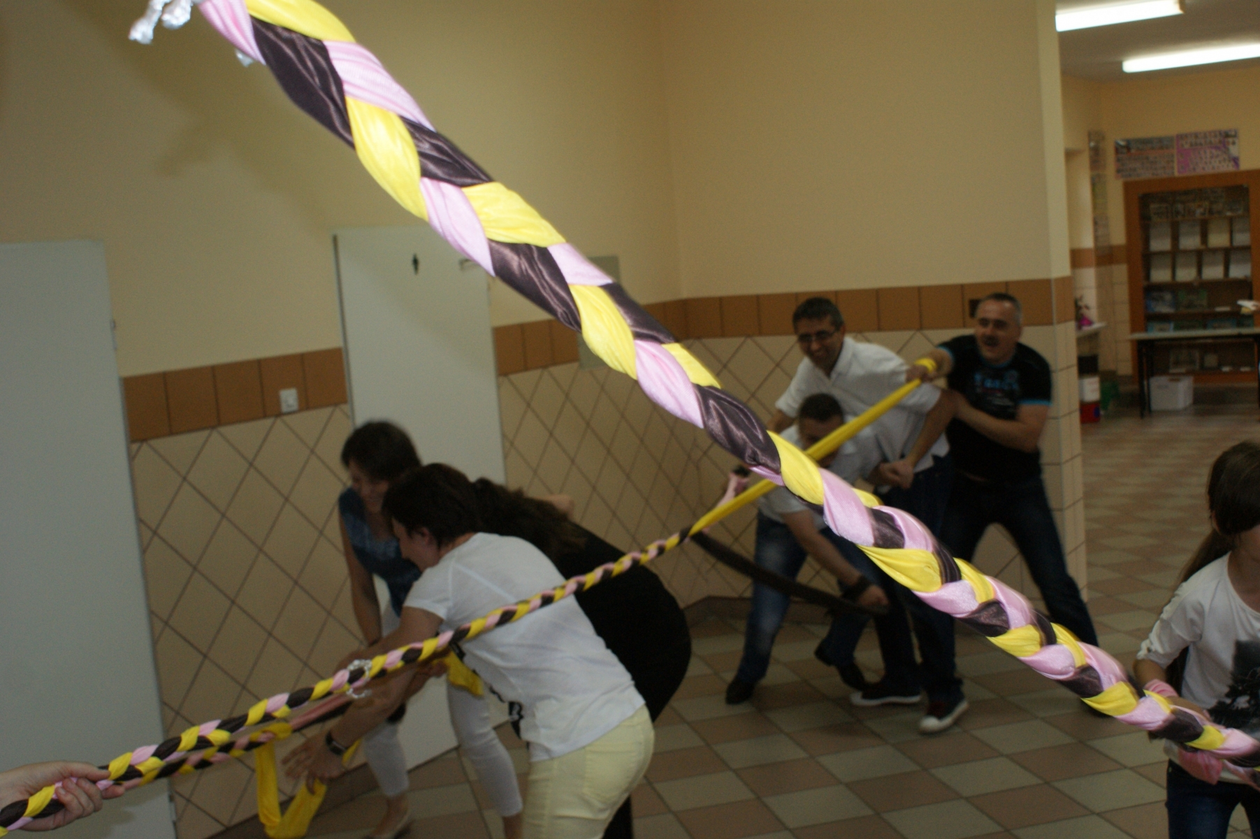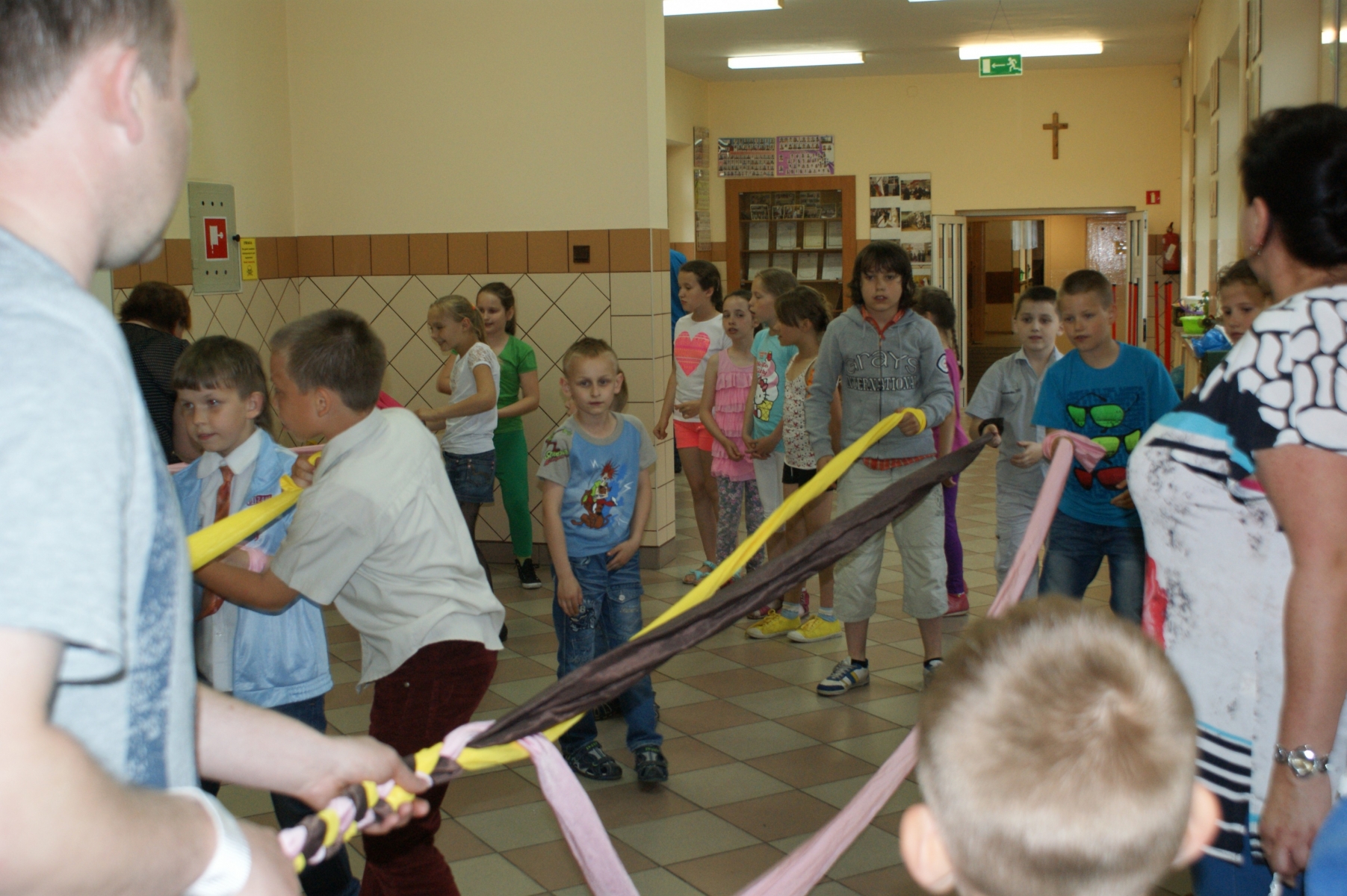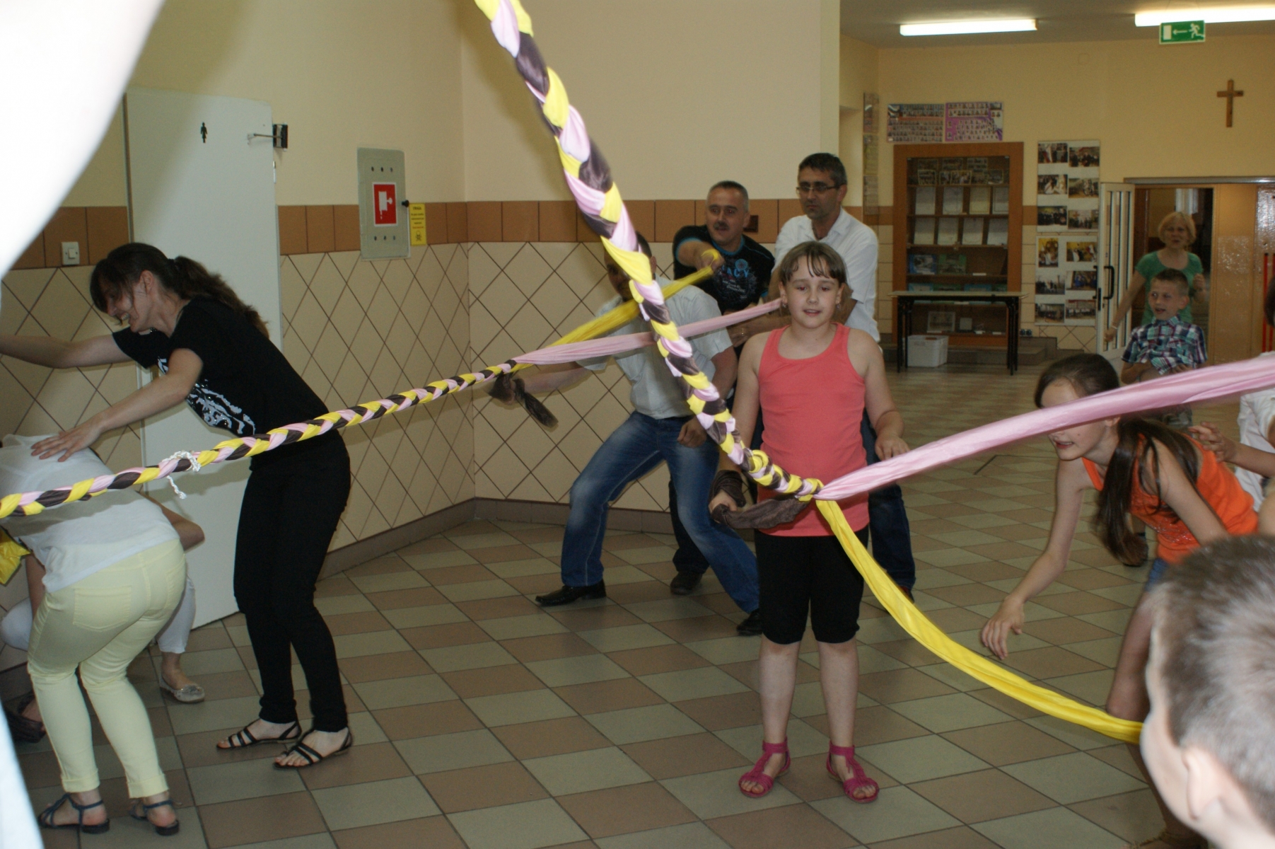 Smaczny poczęstunek, który przygotowali Rodzice udało się zjeść na dziedzińcu szkolnym, ale deszcz sprawił, że szybko trzeba było przenosić się do szkoły. Niesprzyjająca aura nie zepsuła jednak dalszej części uroczystości. Wspólne zabawy, konkurencje i tańce sprawiły wszystkim sporo radości. Piknik odbył się dzięki sprawnej organizacji i dużemu zaangażowaniu Rodziców, których pogoda nie zraziła i utrzymali wesoły nastrój do końca. To był emocjonujący, pełen wrażeń i dobrej zabawy dzień.