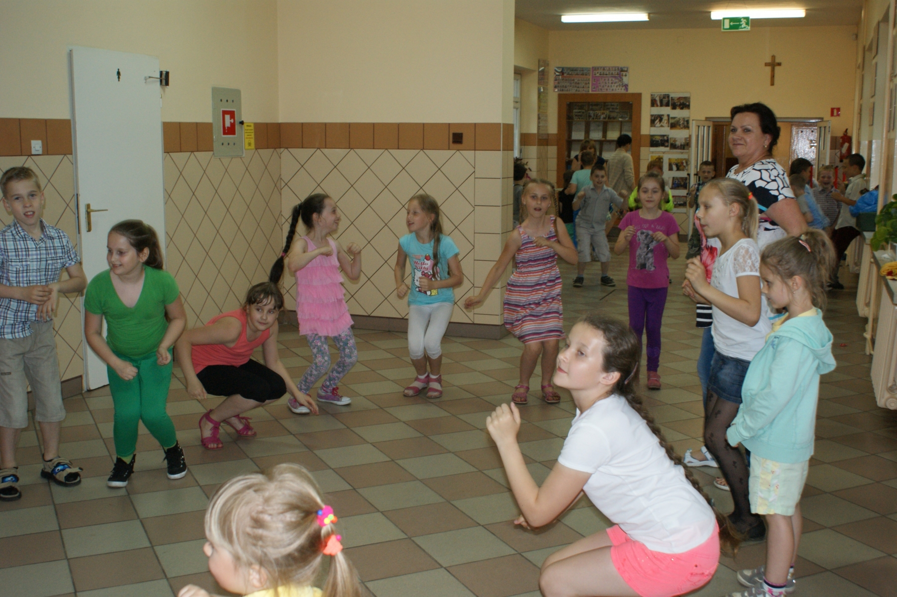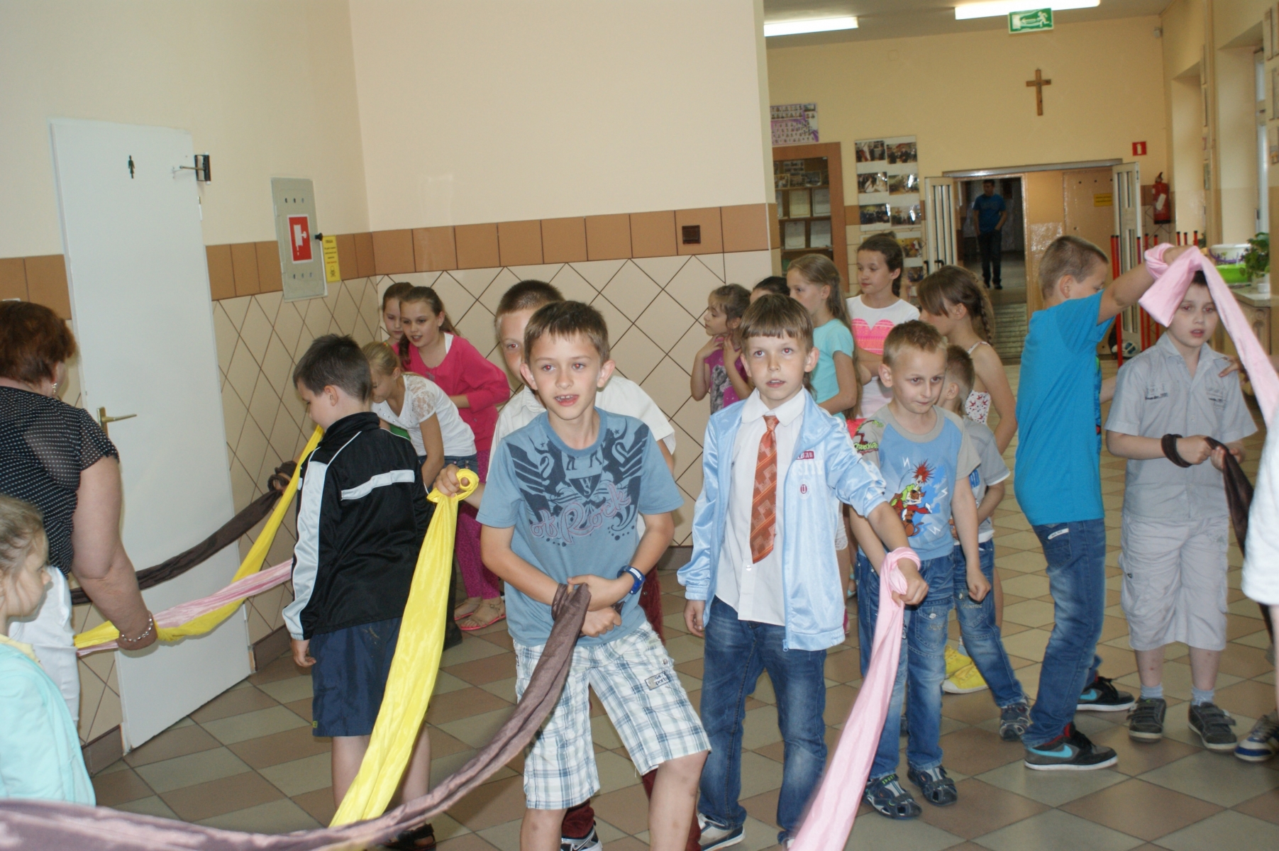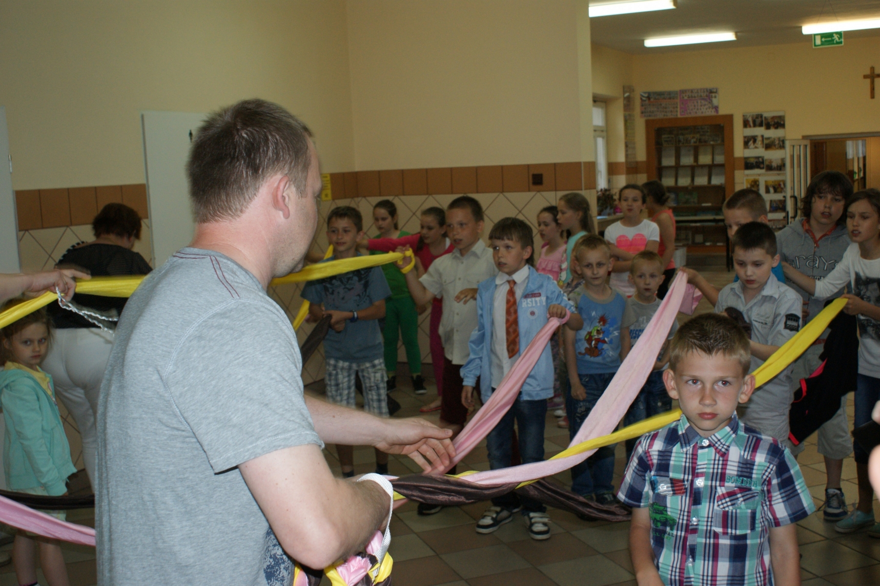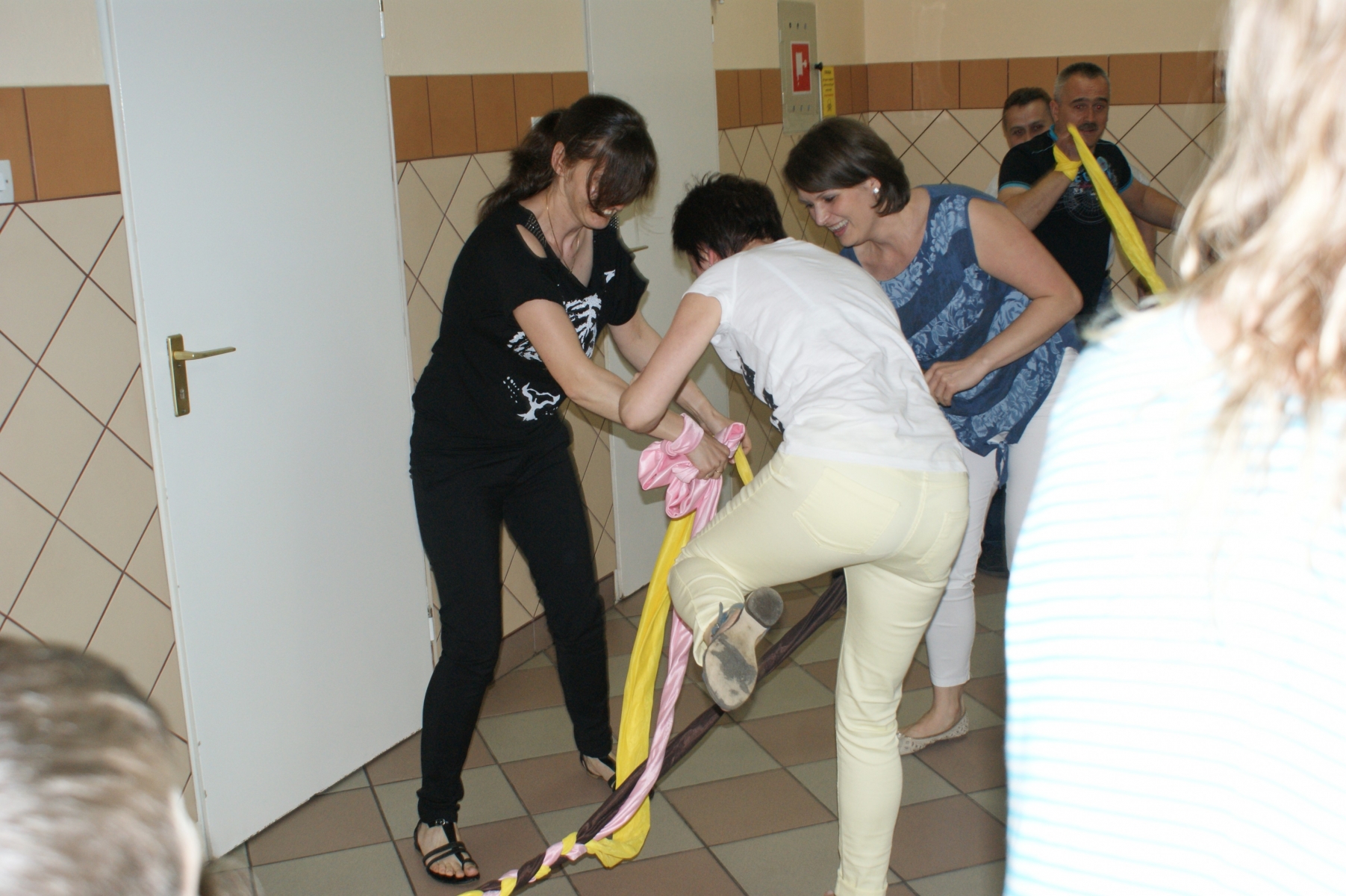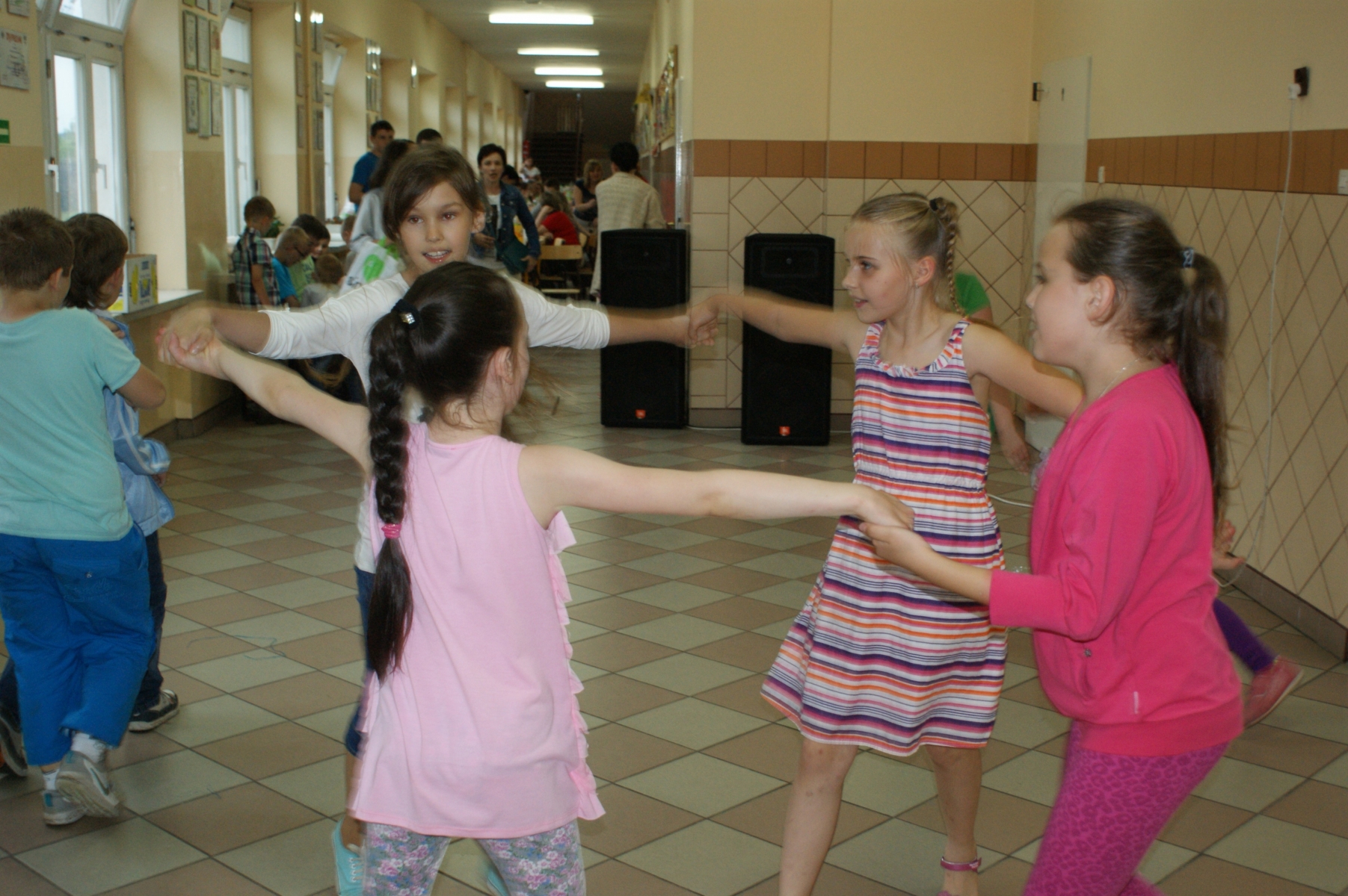 Smaczny poczęstunek, który przygotowali Rodzice udało się zjeść na dziedzińcu szkolnym, ale deszcz sprawił, że szybko trzeba było przenosić się do szkoły. Niesprzyjająca aura nie zepsuła jednak dalszej części uroczystości. Wspólne zabawy, konkurencje i tańce sprawiły wszystkim sporo radości. Piknik odbył się dzięki sprawnej organizacji i dużemu zaangażowaniu Rodziców, których pogoda nie zraziła i utrzymali wesoły nastrój do końca. To był emocjonujący, pełen wrażeń i dobrej zabawy dzień.