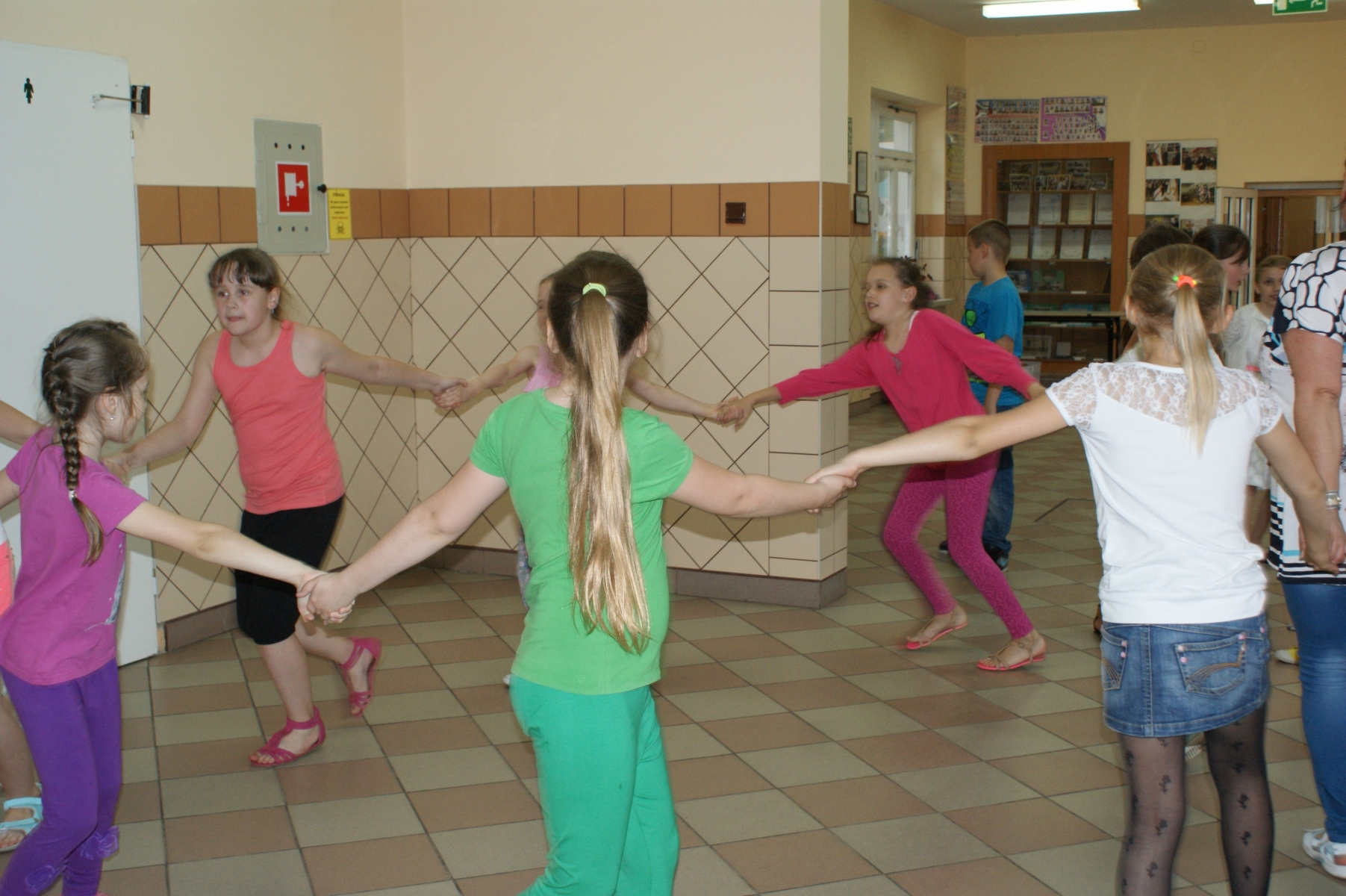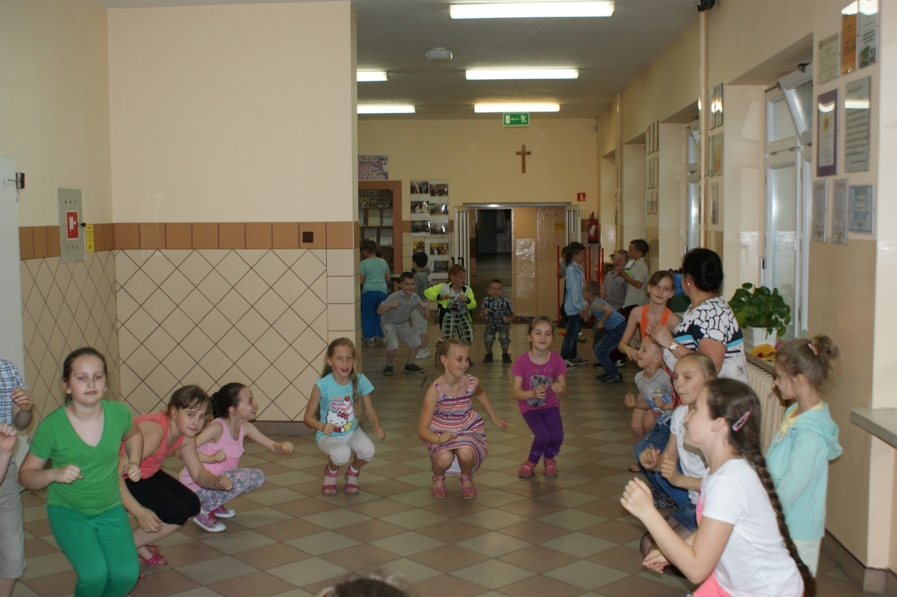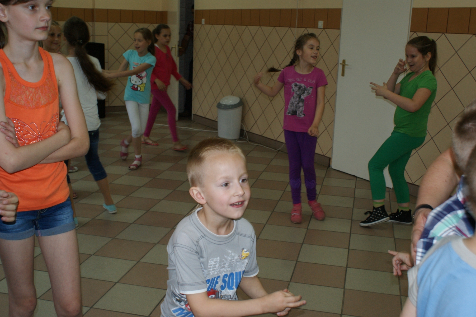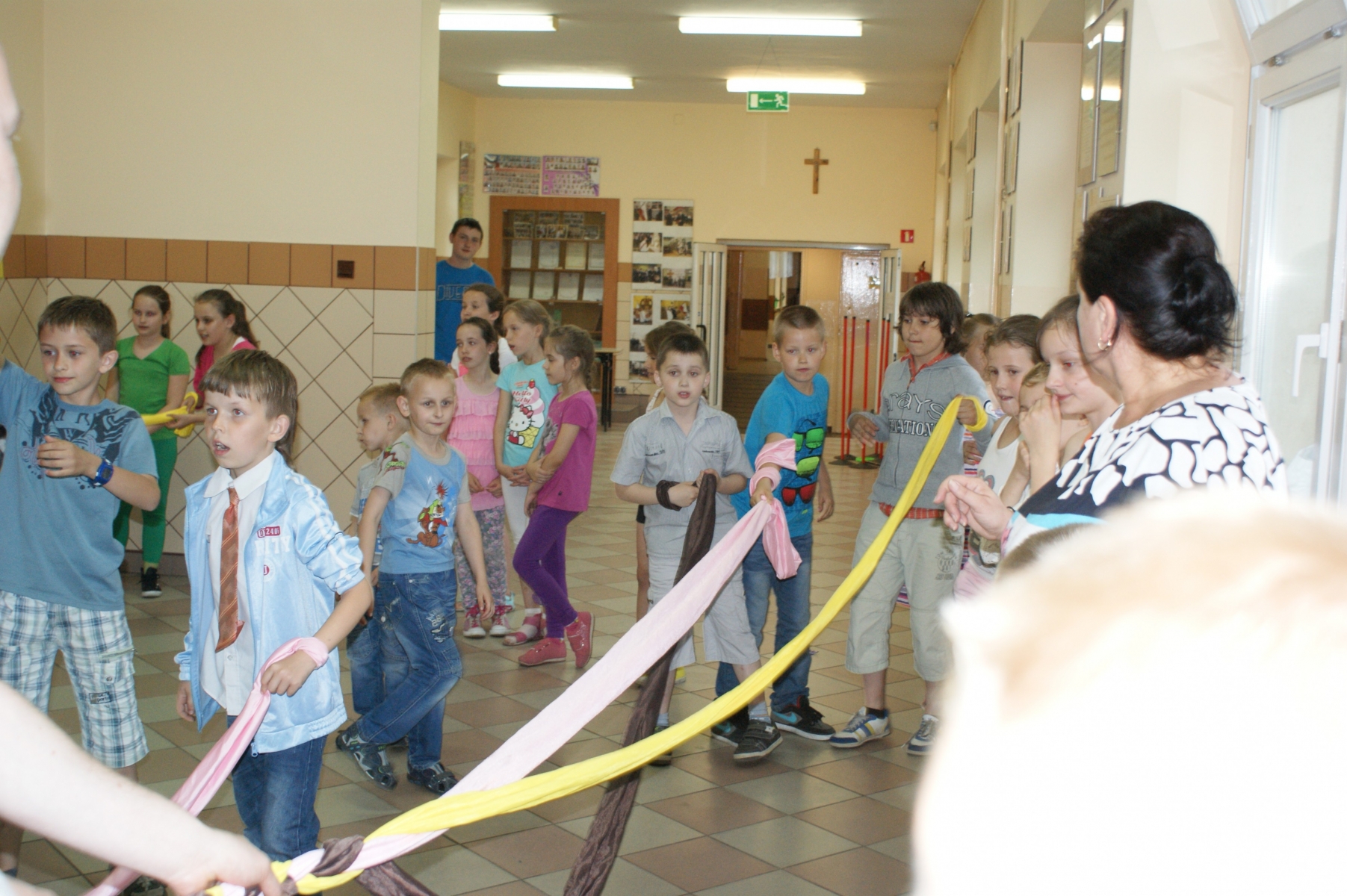 Smaczny poczęstunek, który przygotowali Rodzice udało się zjeść na dziedzińcu szkolnym, ale deszcz sprawił, że szybko trzeba było przenosić się do szkoły. Niesprzyjająca aura nie zepsuła jednak dalszej części uroczystości. Wspólne zabawy, konkurencje i tańce sprawiły wszystkim sporo radości. Piknik odbył się dzięki sprawnej organizacji i dużemu zaangażowaniu Rodziców, których pogoda nie zraziła i utrzymali wesoły nastrój do końca. To był emocjonujący, pełen wrażeń i dobrej zabawy dzień.