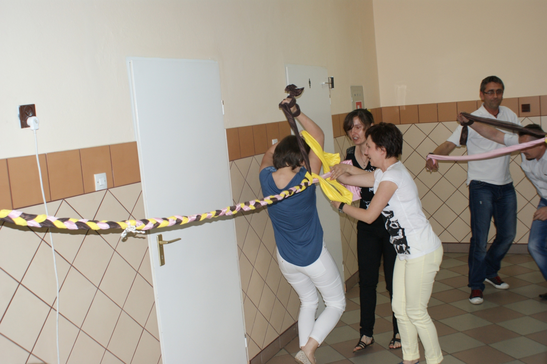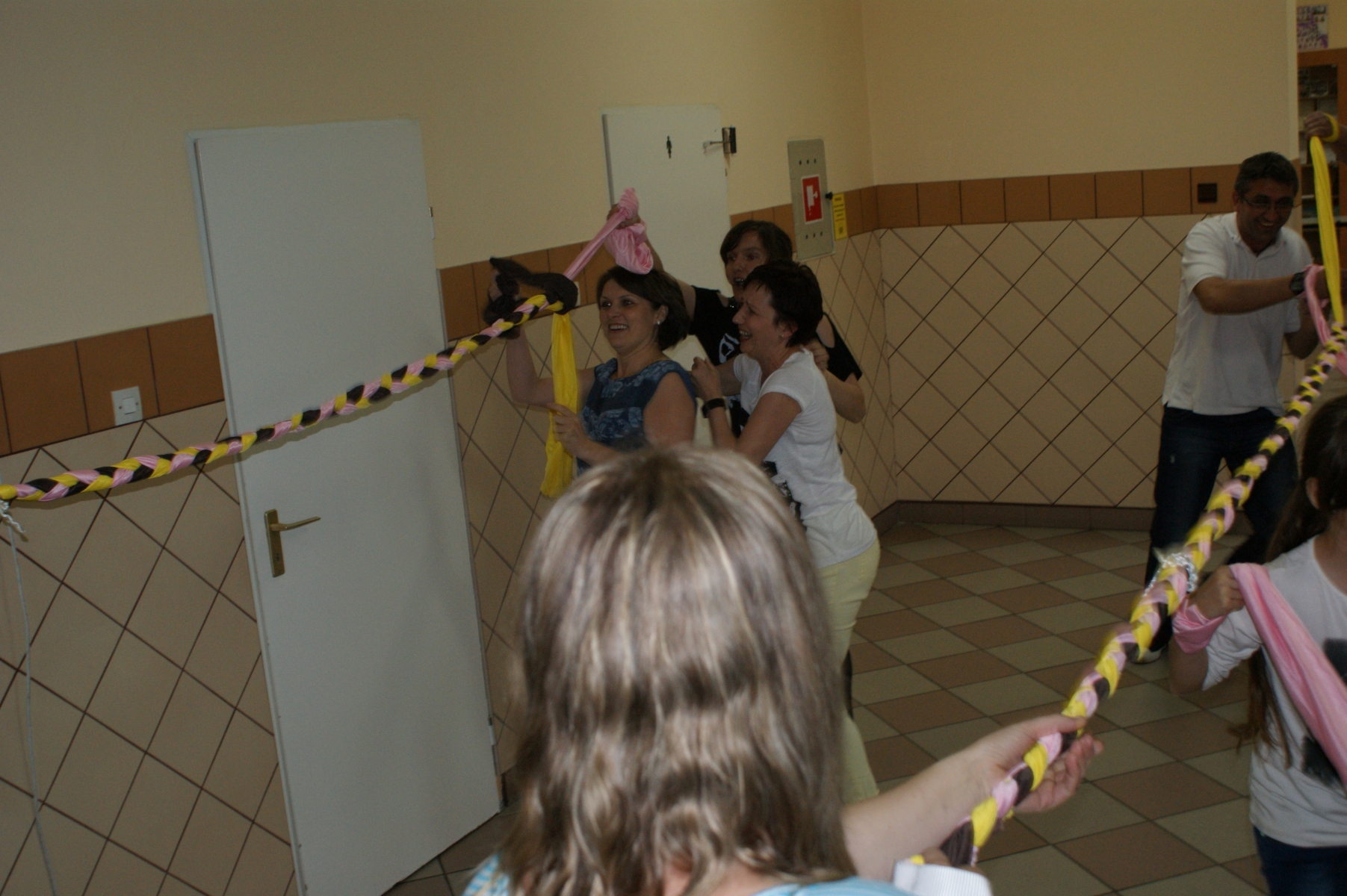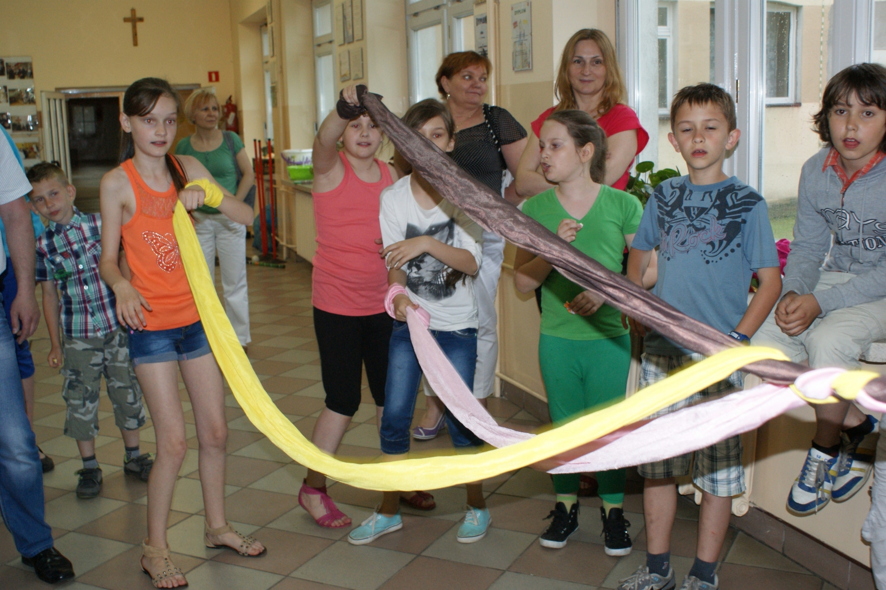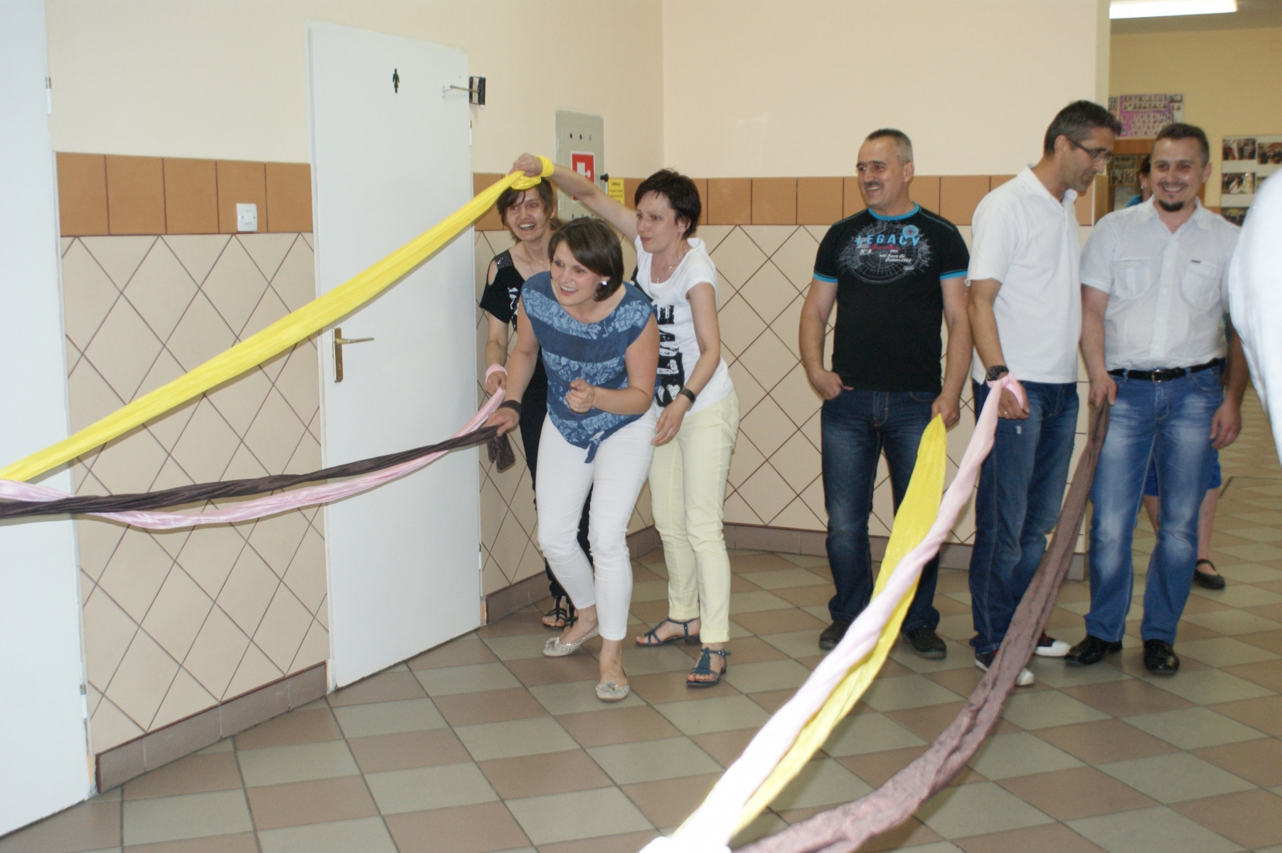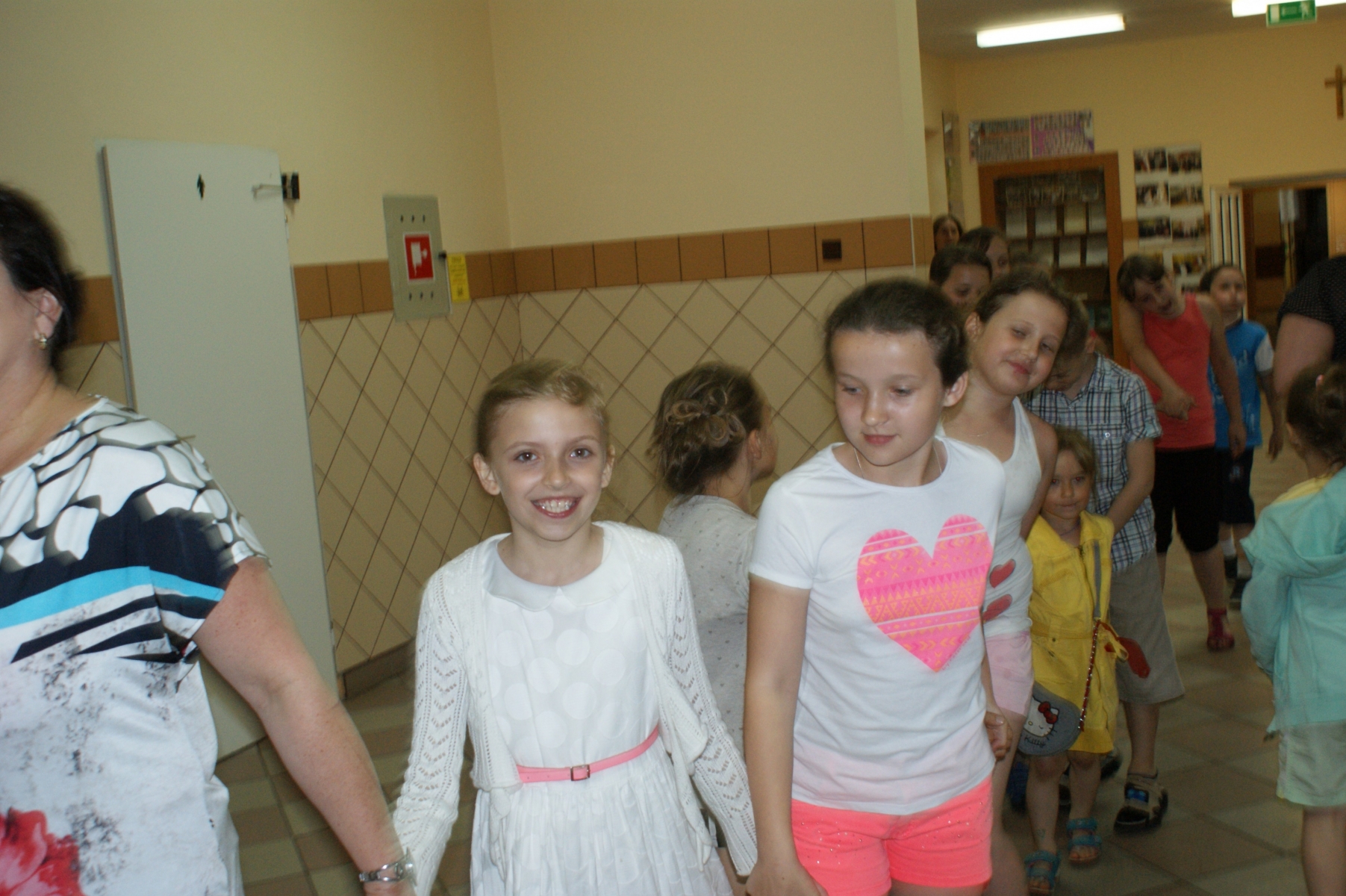 Smaczny poczęstunek, który przygotowali Rodzice udało się zjeść na dziedzińcu szkolnym, ale deszcz sprawił, że szybko trzeba było przenosić się do szkoły. Niesprzyjająca aura nie zepsuła jednak dalszej części uroczystości. Wspólne zabawy, konkurencje i tańce sprawiły wszystkim sporo radości. Piknik odbył się dzięki sprawnej organizacji i dużemu zaangażowaniu Rodziców, których pogoda nie zraziła i utrzymali wesoły nastrój do końca. To był emocjonujący, pełen wrażeń i dobrej zabawy dzień.