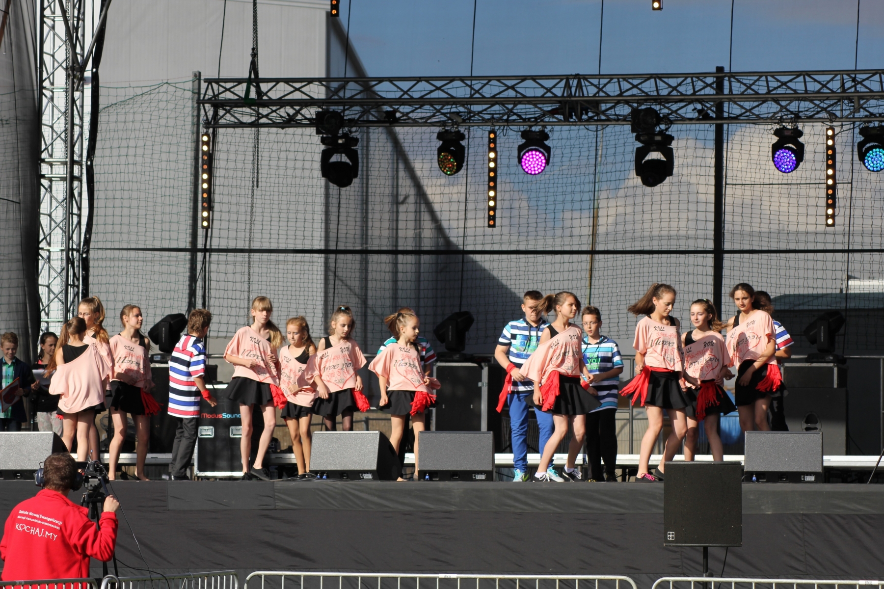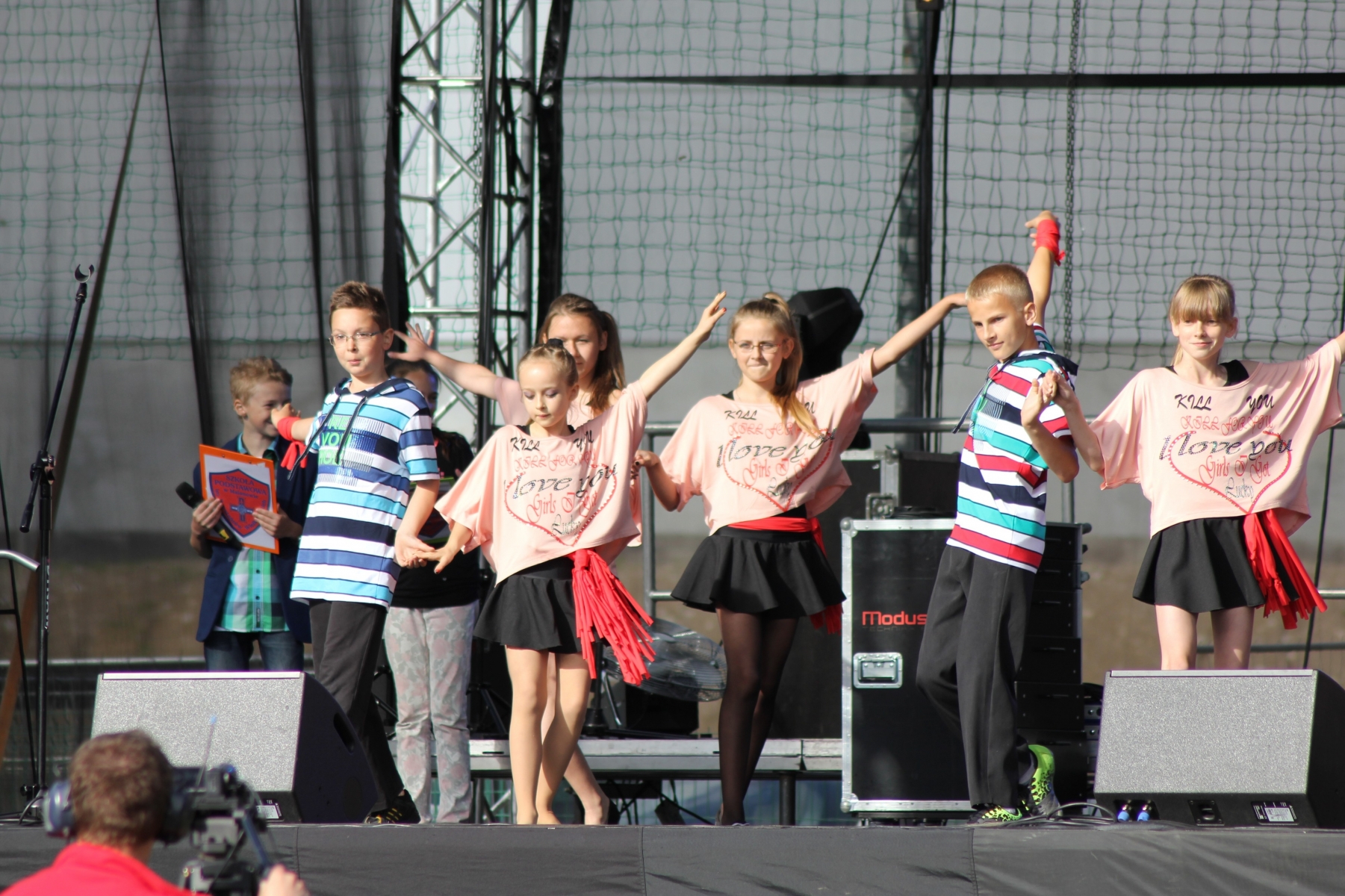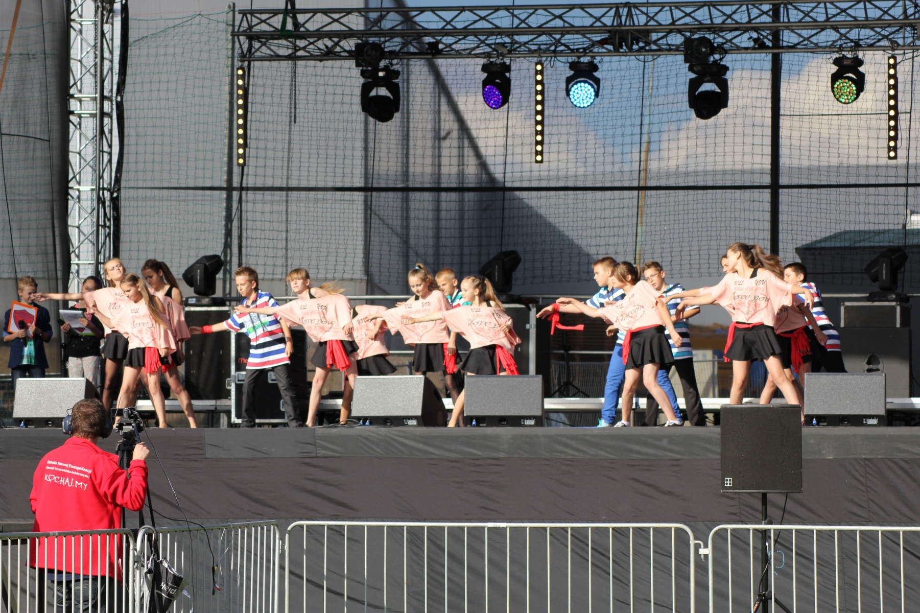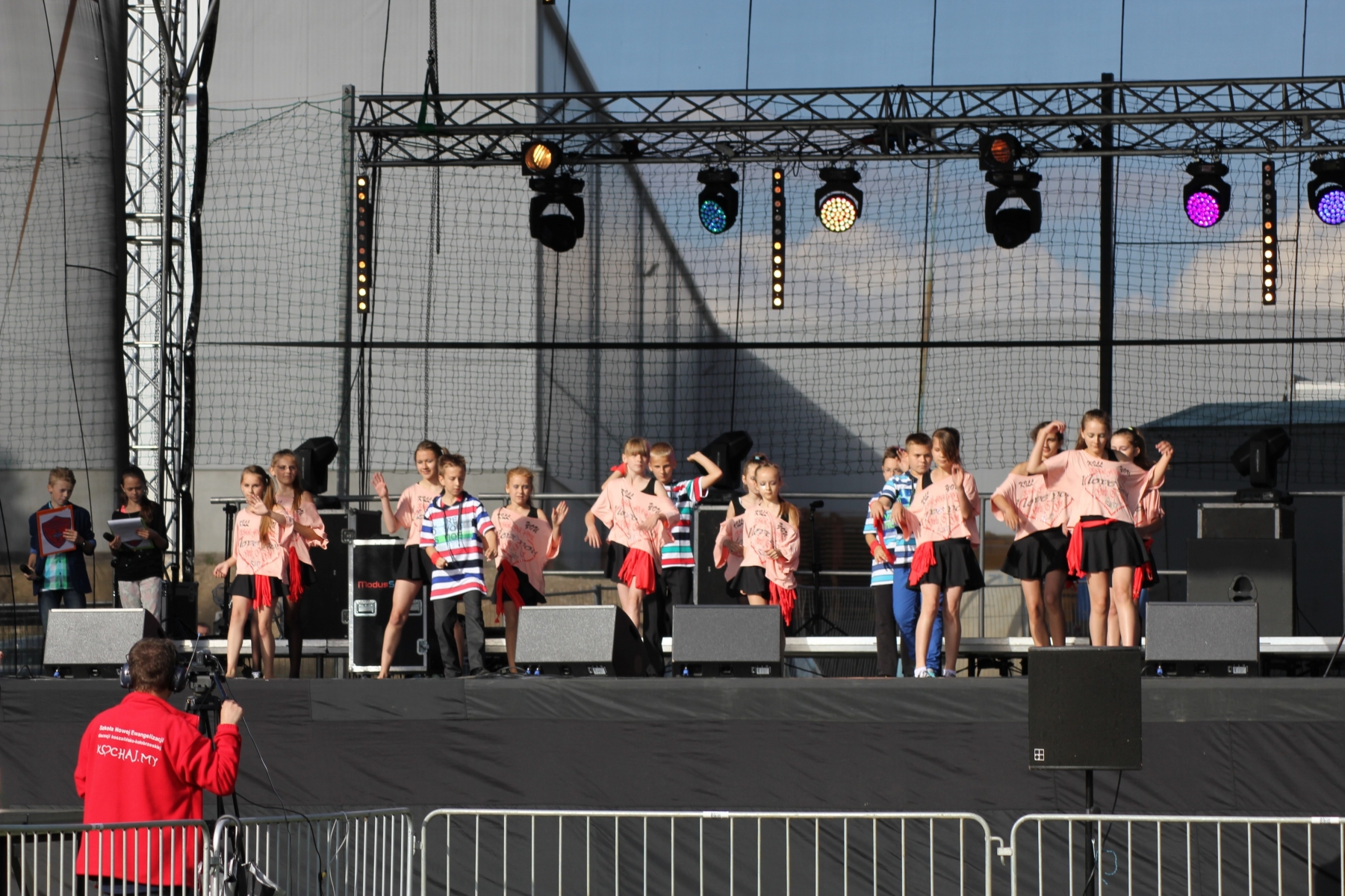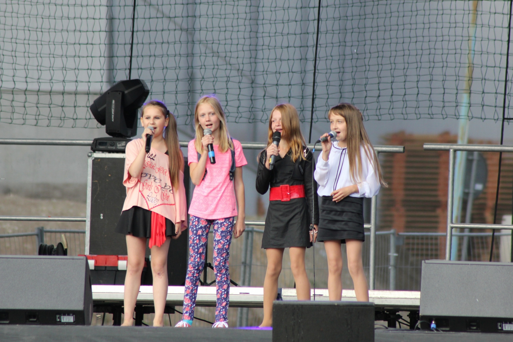 Deszczowe chmury nagromadzone nad sceną ustąpiły miejsca słoneczku, które wyłoniło się, kiedy na scenę wkroczyli młodzi śpiewacy. Kwartet złożony z uczennic klasy czwartej zaśpiewał piosenkę pt.” Żyj do przodu”, najmłodsza uczestniczka naszego występu Maja Grzelka po gwiazdorsku wykonała piosenkę pt. „Śpiewam i tańczę”, nie zabrakło także naszych chłopców z klasy szóstej Jakuba Białasa i Filipa Walczaka, którzy podobnie, jak pozostali śpiewacy zostali przygotowani do występu przez p. Katarzynę Tomczyk.
