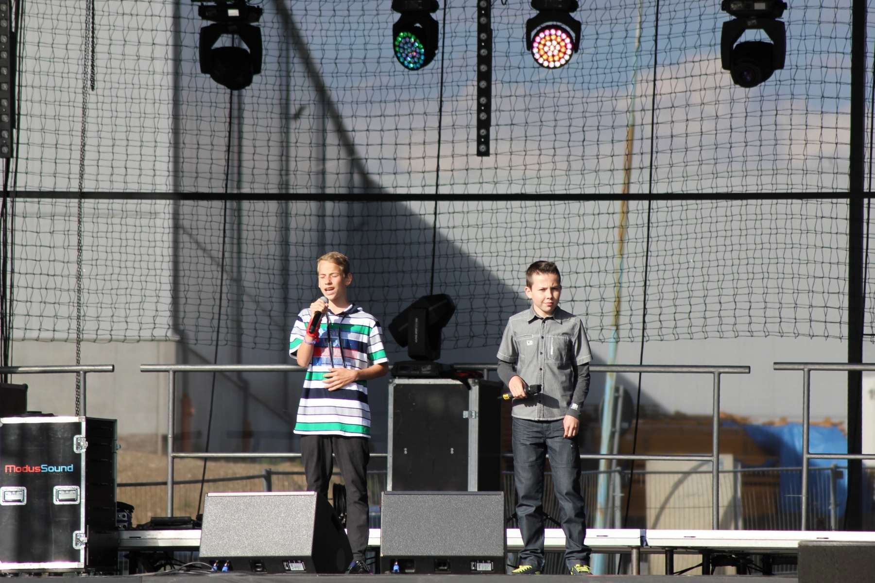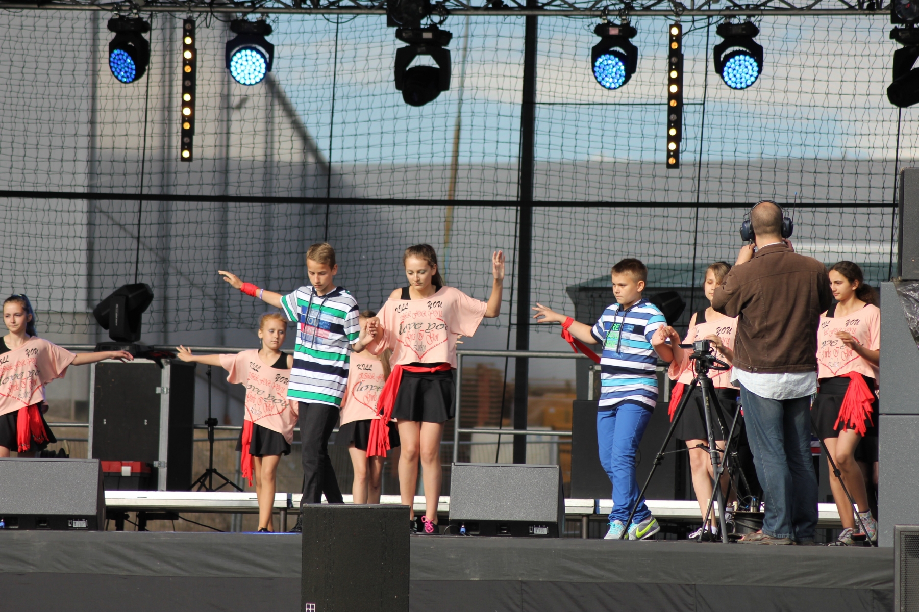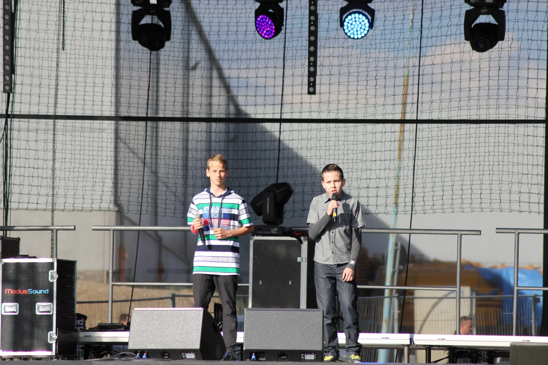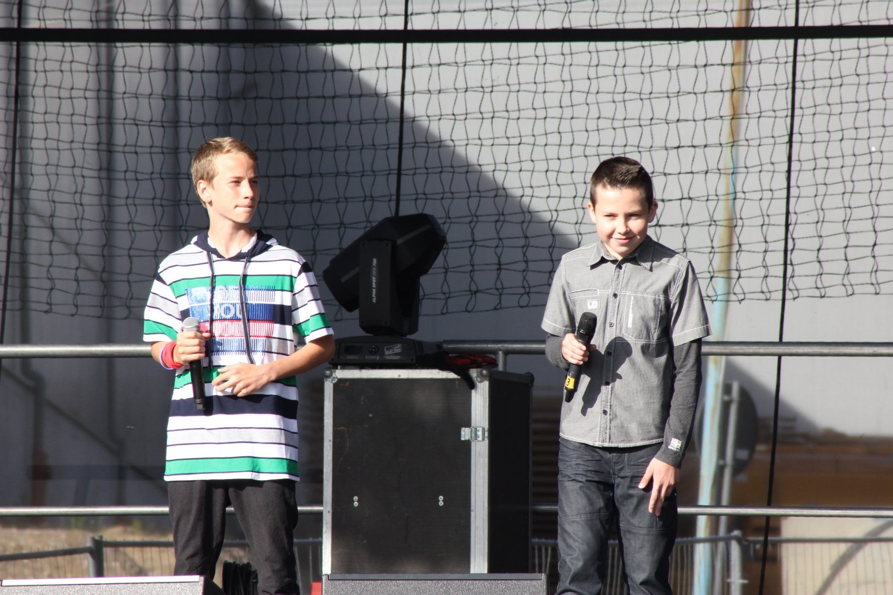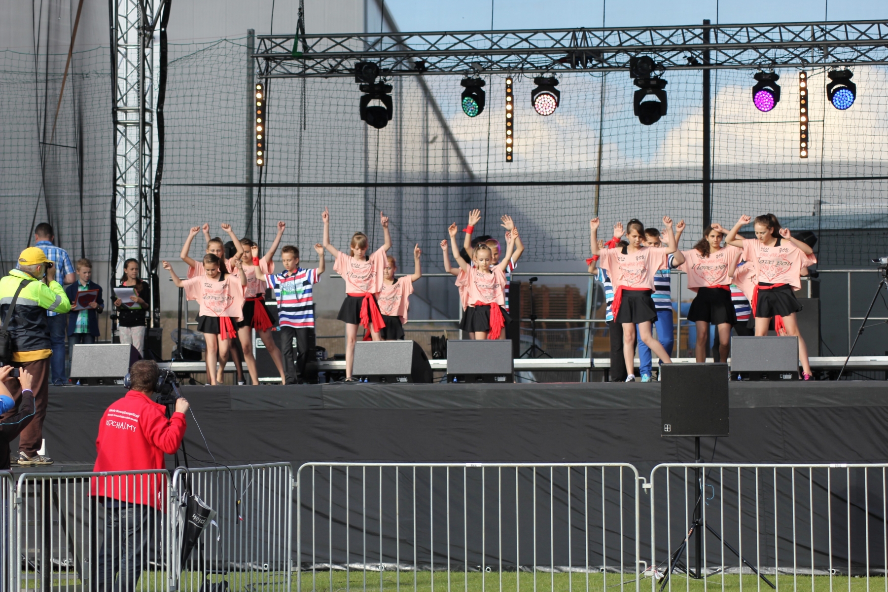 Deszczowe chmury nagromadzone nad sceną ustąpiły miejsca słoneczku, które wyłoniło się, kiedy na scenę wkroczyli młodzi śpiewacy. Kwartet złożony z uczennic klasy czwartej zaśpiewał piosenkę pt.” Żyj do przodu”, najmłodsza uczestniczka naszego występu Maja Grzelka po gwiazdorsku wykonała piosenkę pt. „Śpiewam i tańczę”, nie zabrakło także naszych chłopców z klasy szóstej Jakuba Białasa i Filipa Walczaka, którzy podobnie, jak pozostali śpiewacy zostali przygotowani do występu przez p. Katarzynę Tomczyk.