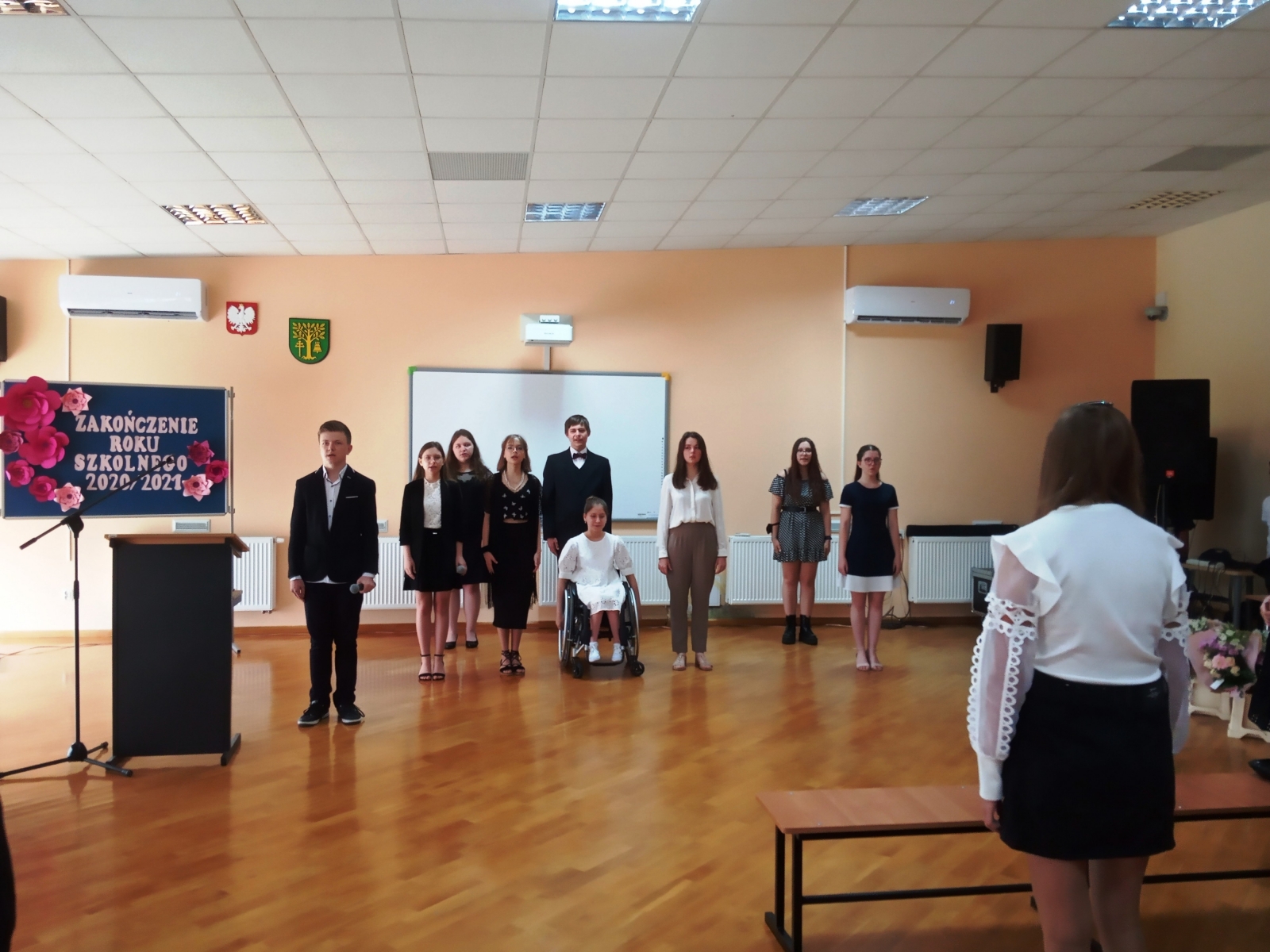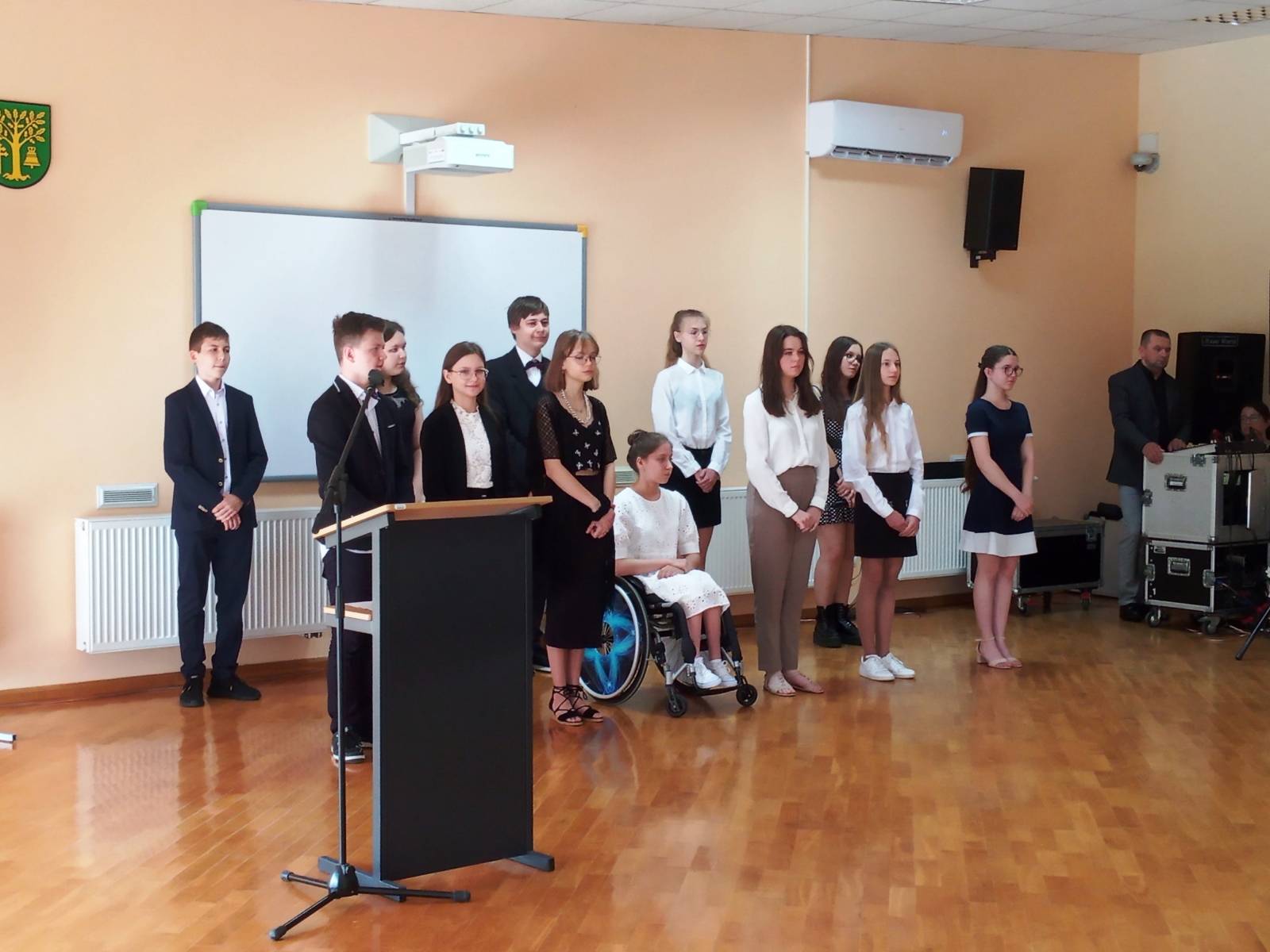Podczas części artystycznej ósmoklasiści przypomnieli sobie przeżyte w szkole chwile, dziękując dyrekcji, nauczycielom oraz rodzicom za przekazaną wiedzę, życzliwość i wsparcie w trudnych momentach uczniowskiego życia.
